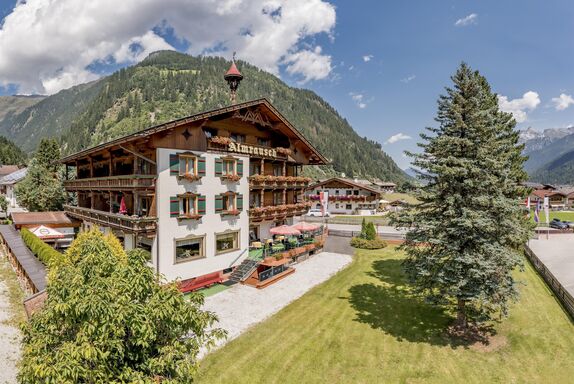 Mitten im kleinen Weiler und unmittelbar neben unserem Hotel Almhof befindet sich unsere gemütliche Familienpension Almrausch im Ortsteil Milders von Neustift im Stubaital.