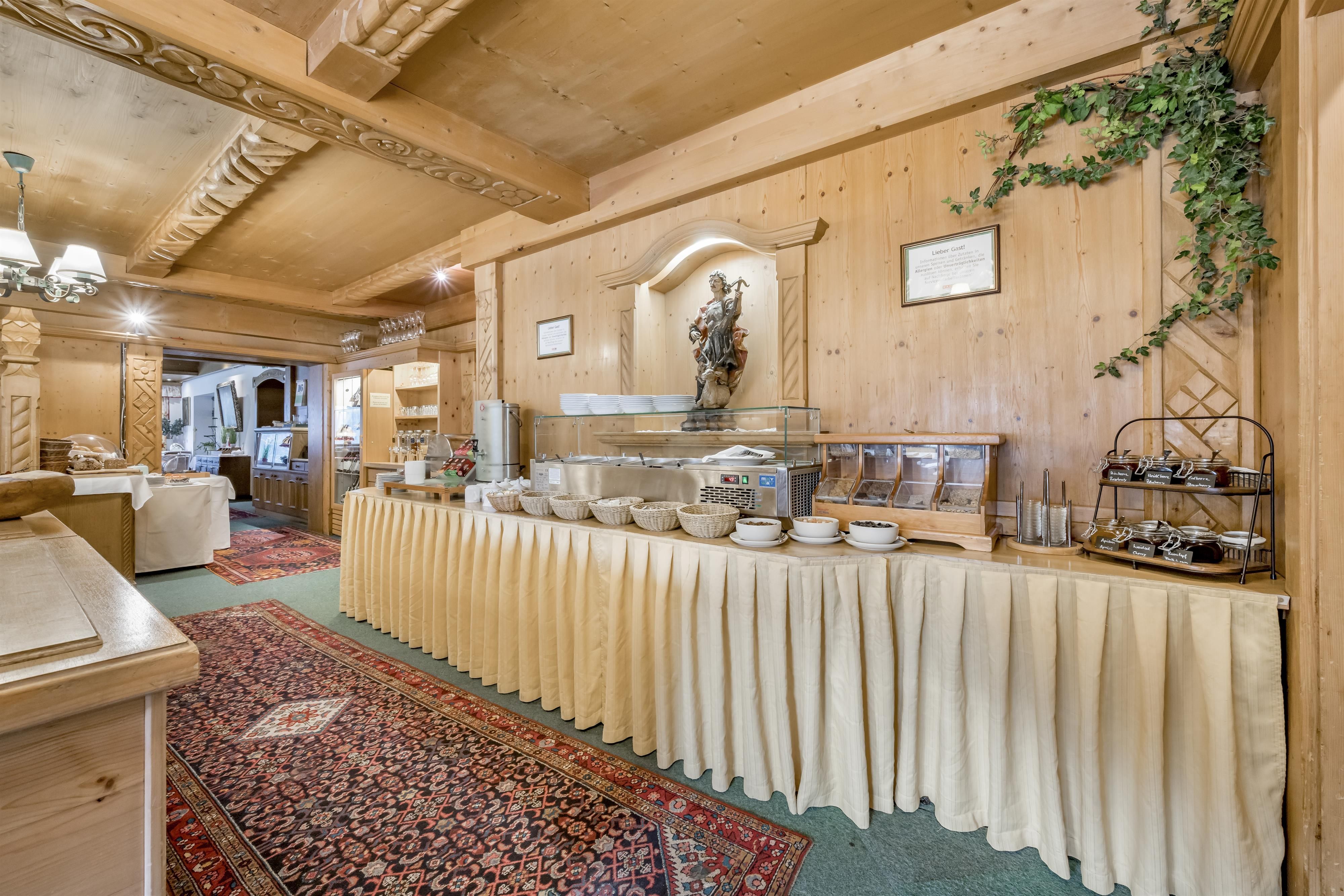 Beginnen Sie Ihren Urlaubstag mit unserem reichhaltigen Frühstücks-Buffet, das Sie gestärkt in einen aktiven Tag starten lässt. Das Abendessen erwartet Sie in unserem benachbarten Hotel Almhof. Hier verwöhnen wir Sie jeden Abend mit einem Viergänge-Wahl-Menü und einem vitaminreichen Salatbuffet.