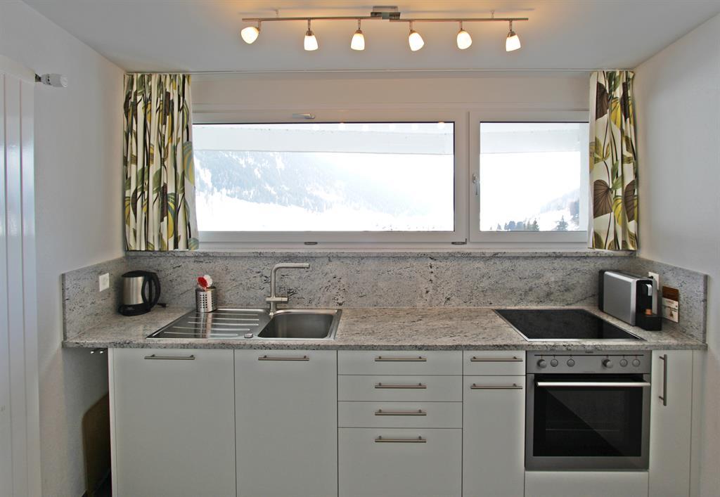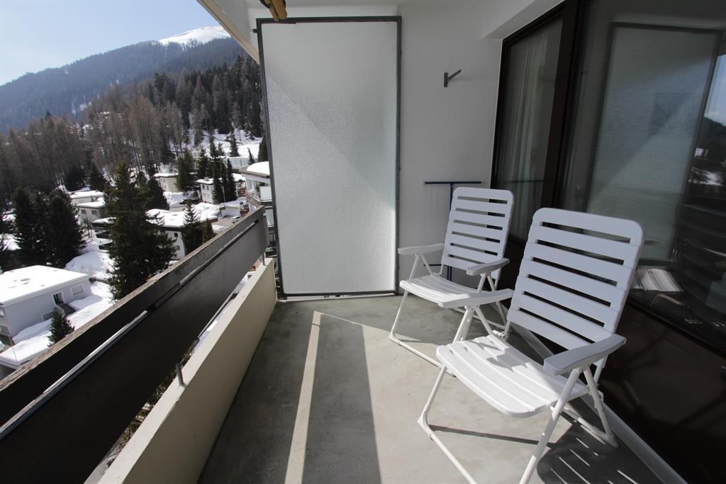 Lichtdurchflutete, sonnige 2,5 Zimmer Wohnung (70qm) Alpenblick, Vier-Sterne Superior-Komfort; super Lage für Winter- und Sommerferien, zum Wandern und Biken und Golfen, 2 Golfplätze 18 Loch in Davos und Klosters. Im obersten 9. Stock eines Ferienhauses (Lift) mit grosszügigem Entrée; zwei südorientierte Balkone mit Rundum-Sicht auf Dorf, Tal und Alpen. Neue elektrische Vertikal-Sonnenstoren. Ideal für 2 und 4 Personen. Ein Schlafzimmer mit Doppelbetten, grosses gut eingerichtetes Wohnzimmer, in der hinteren Hälfte ausziehbare Doppelbetten für 2 Personen. Hochwertiger Laminat-Fussboden, beste Materialien und Textilien in allen Räumen vermitteln ein angenehmes Wohngefühl; TV, Radio, DVD, ipod/iphone docking station, WLAN. Offene moderne Granit-Küche mit Tageslicht; Designer-Badezimmer mit Walk-in Dusche. Komplette Wäsche und Bademäntel. Hallenbad, auf Anfrage Saunabenützung gegen Gebühr. Grosser Velo- und Skiraum, Waschküche, Tumbler, Trockenraum mit Wäscheleinen. Aussen-Parkplatz. Wenige Gehminuten zur Busstation Postplatz mit schnellen Verbindungen zum Kongress-Zentrum, Schatzalpbahn, zur Skiarena und Wandergebiete Parsenn, Rinerhorn; zu Fuss zum Jakobshorn, Loipen und Bolgen in maximal 10 Min. Stresslose und flexible Anreise durch eigenständigen Check-in und Schlüsselempfang mit Code.