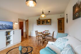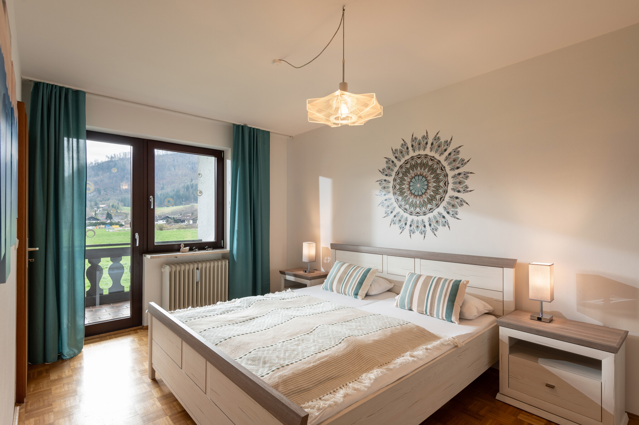 Etwa 48 Quadratmeter, Wohnzimmer mit Flachbild-Fernseher und gemütlicher Essecke, 1 großzügiges Schlafzimmer, 1 Bad mit Dusche, hervorragend ausgestattete Küche mit Kühlschrank, kleinem Gefrierfach und Geschirrspüler, Handtücher und Bettwäsche, Waschmaschine mit Trockner, riesiger Balkon mit sagenhaftem Bergblick, kostenlose Parkmöglichkeit vor der Unterkunft, kostenloses WLAN inklusive.