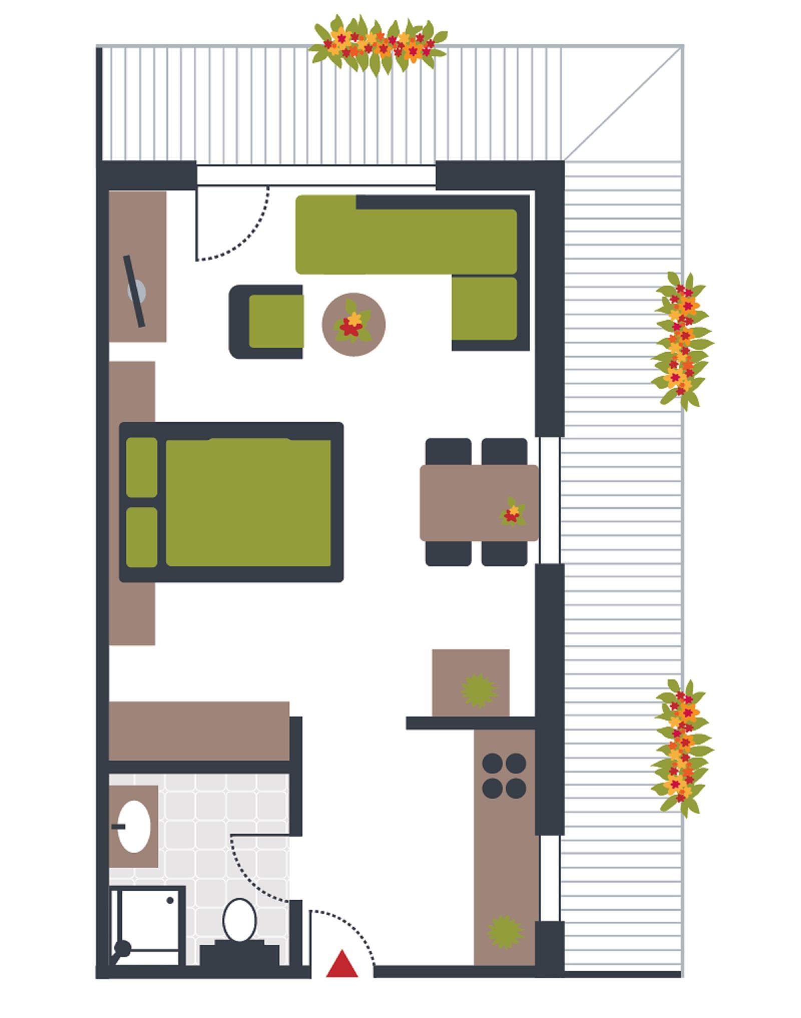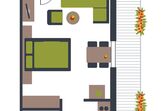 Dieses Apartment ist ca. 35 m² groß und trotzdem ideal für 2 Personen und sehr geräumig ausgestattet, es verfügt über Wohnschlafzimmer, Küche, Dusche, WC, Balkon, Safe, TV, Radio, Telefon, Handtücher, Bettwäsche, Geschirr, usw..