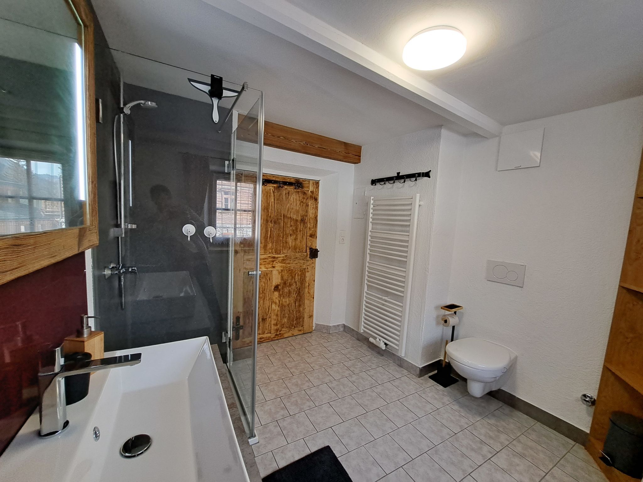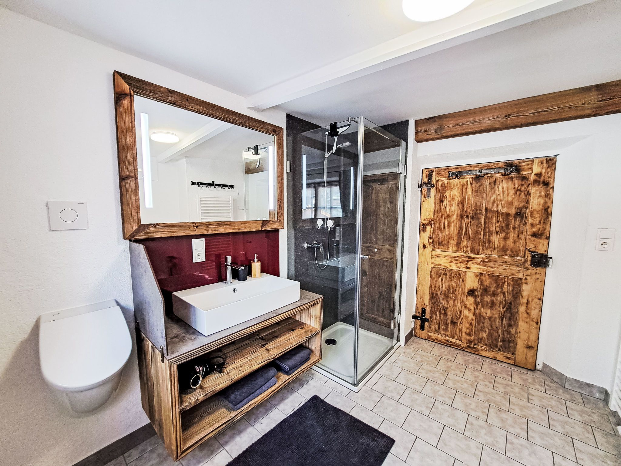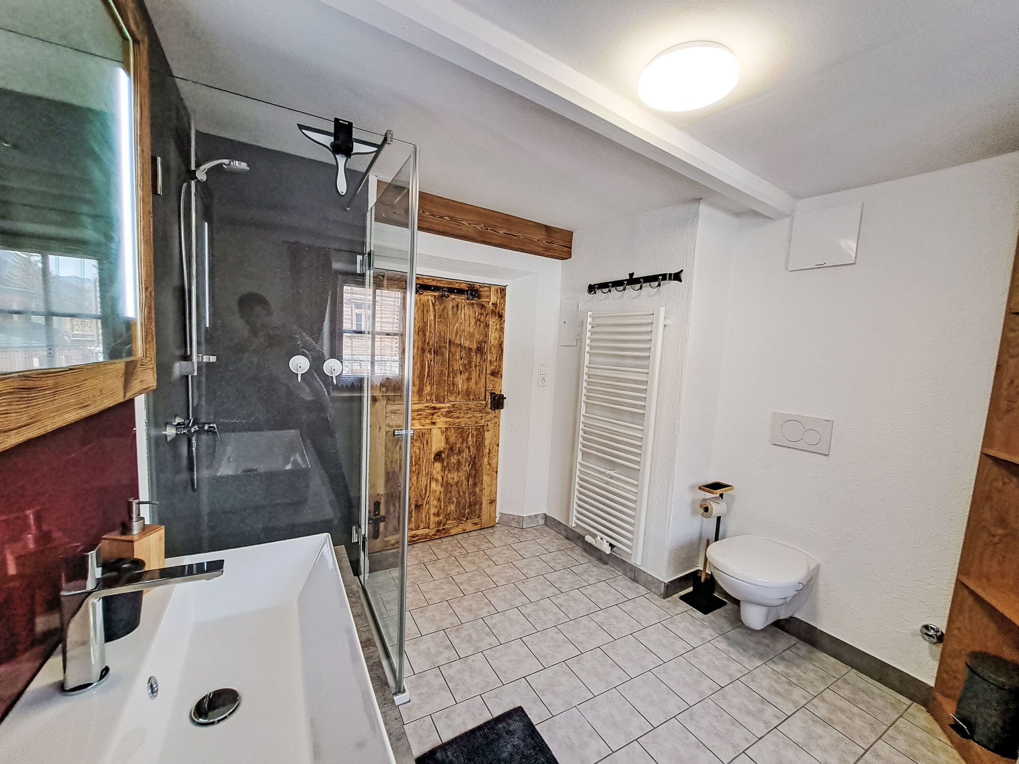 Zur alten Schmiede, 5-Zimmer-Haus. Sehr geschmackvoll und mit viel Holz eingerichtet: Wohn-/Esszimmer mit 1 Ausziehbett, Esstisch und Sat-TV. Wohnzimmer mit Schwedenofen und Sat-TV. Küche (Backofen, Geschirrspüler, 4 Glaskeramikplatten, Toaster, Wasserkocher, Tiefkühler, elektrische Kaffeemaschine). Dusche/WC. Fussbodenheizung. Obergeschoss: 2 Doppelzimmer. 1 Zimmer mit 1 x 2 Etagenbetten. Dusche/WC. Holzdielenboden. Balkon, Terrasse. Terrassenmöbel, Balkonmöbel, Gartengrill. Schöne Sicht auf die Berge. Zur Verfügung: Waschmaschine (extra). Wäschetrockner (extra). Internet (Wireless LAN, gratis). E-Ladestation. Bitte beachten: geeignet für Familien. Nichtraucher-Unterkunft, Nichtraucher-Haus. Eigener Eingang. Bei der elektrischen Kaffemaschine handelt es sich um einen Jura- Kaffeevollautomaten!