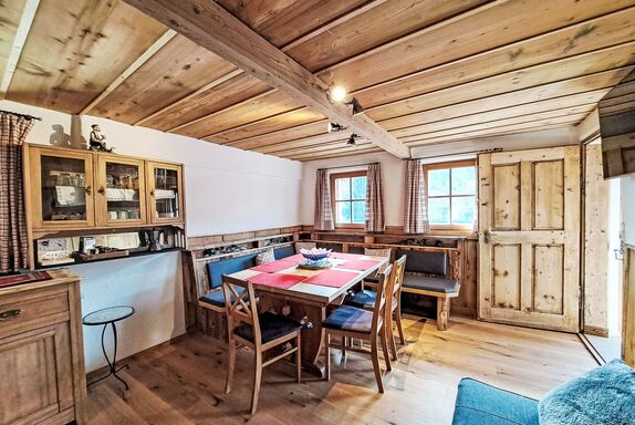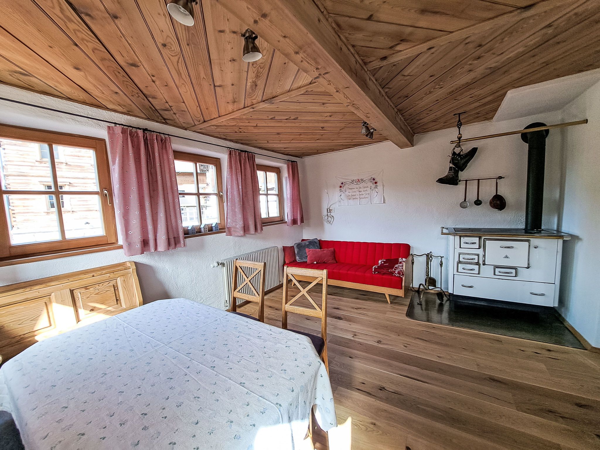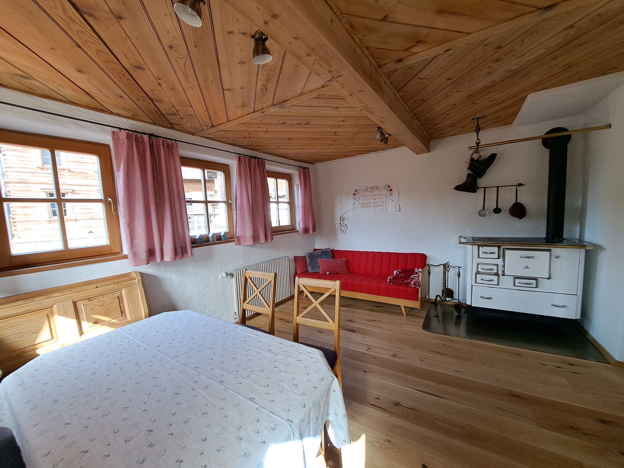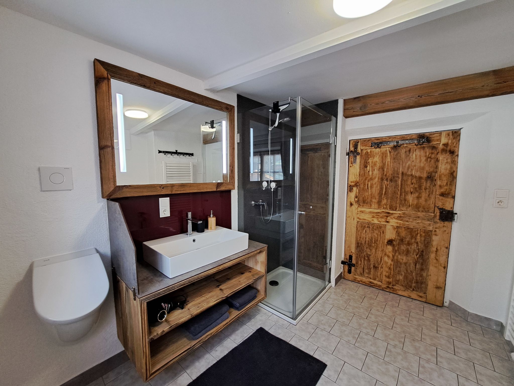 Zur alten Schmiede, 5-Zimmer-Haus. Sehr geschmackvoll und mit viel Holz eingerichtet: Wohn-/Esszimmer mit 1 Ausziehbett, Esstisch und Sat-TV. Wohnzimmer mit Schwedenofen und Sat-TV. Küche (Backofen, Geschirrspüler, 4 Glaskeramikplatten, Toaster, Wasserkocher, Tiefkühler, elektrische Kaffeemaschine). Dusche/WC. Fussbodenheizung. Obergeschoss: 2 Doppelzimmer. 1 Zimmer mit 1 x 2 Etagenbetten. Dusche/WC. Holzdielenboden. Balkon, Terrasse. Terrassenmöbel, Balkonmöbel, Gartengrill. Schöne Sicht auf die Berge. Zur Verfügung: Waschmaschine (extra). Wäschetrockner (extra). Internet (Wireless LAN, gratis). E-Ladestation. Bitte beachten: geeignet für Familien. Nichtraucher-Unterkunft, Nichtraucher-Haus. Eigener Eingang. Bei der elektrischen Kaffemaschine handelt es sich um einen Jura- Kaffeevollautomaten!