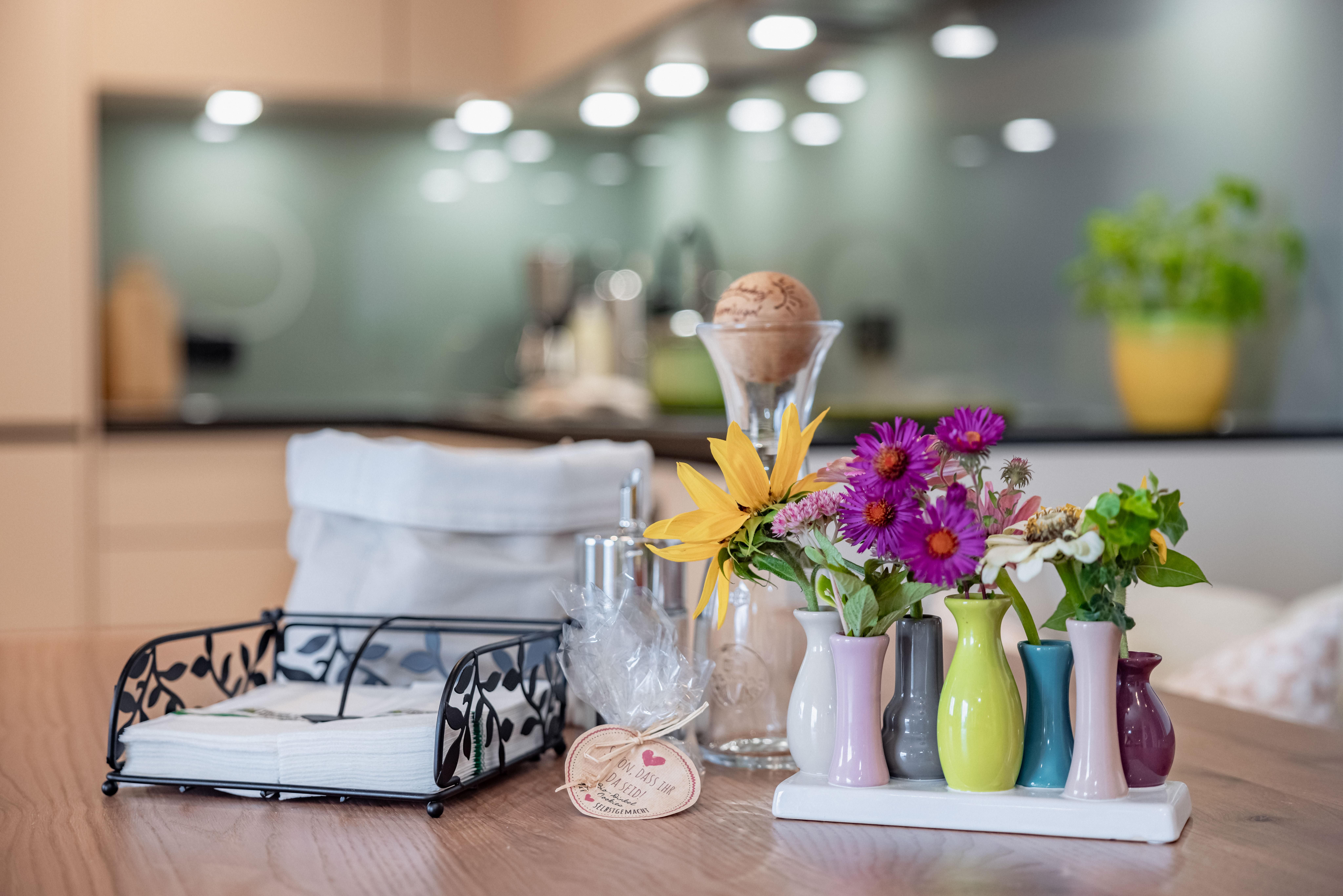 Freuen Sie sich auf eine Auszeit in unserer neuen Berg-See-Suite! Dieses lichtdurchflutete Zweiraumappartement im ersten Stock bietet auf 41m² eine hochwertige Ausstattung mit edlen Vollholzmöbeln und Echtholzböden. Das separate Schlafzimmer mit feiner Leinenbettwäsche und die helle Wohnküche mit zusätzlicher Schlafcouch sorgen für ein großzügiges Raumkonzept. Genießen Sie den atemberaubenden Panoramablick auf den See und die Berge von dem 10m² großen, überdachten, südseitigen Balkon. Zur Ausstattung gehören Sat-TV, ein modernes Badezimmer mit geräumiger Dusche und WLAN. Der Preis beinhaltet die Millstätter-Inclusive-Card, die Ihnen den kostenlosen Zugang zu Strandbädern, Mautstraßen und weiteren Angeboten der Region ermöglicht.