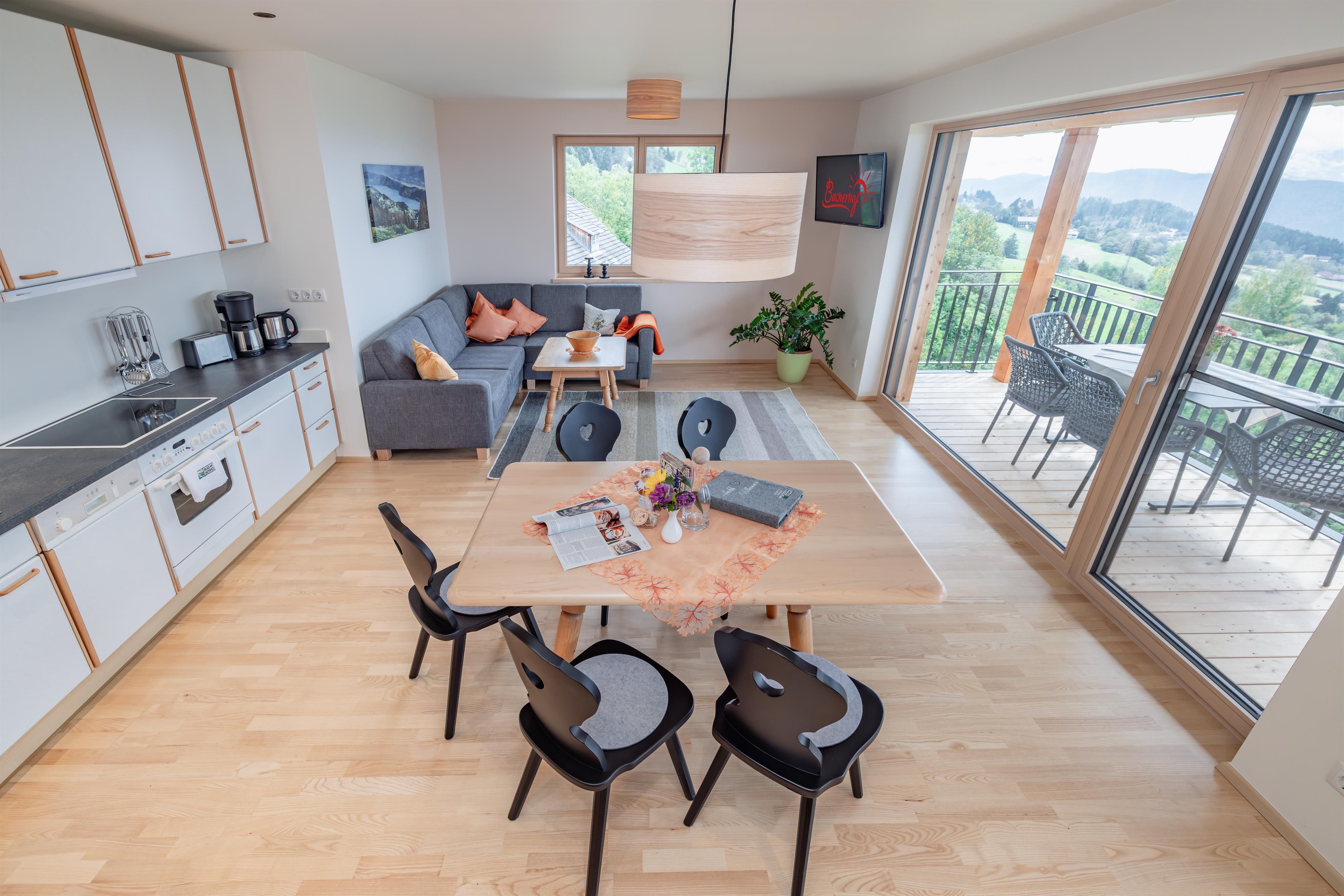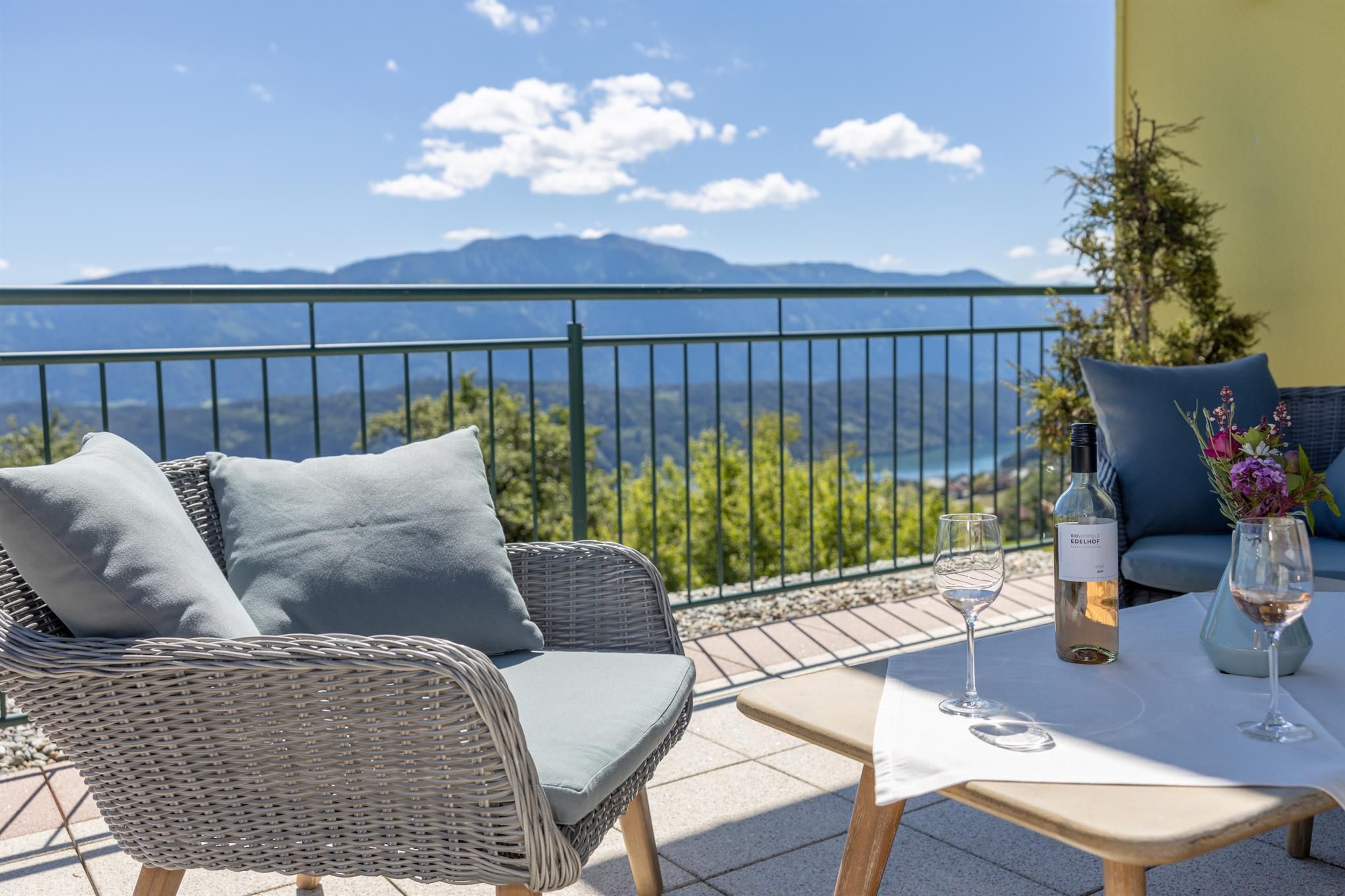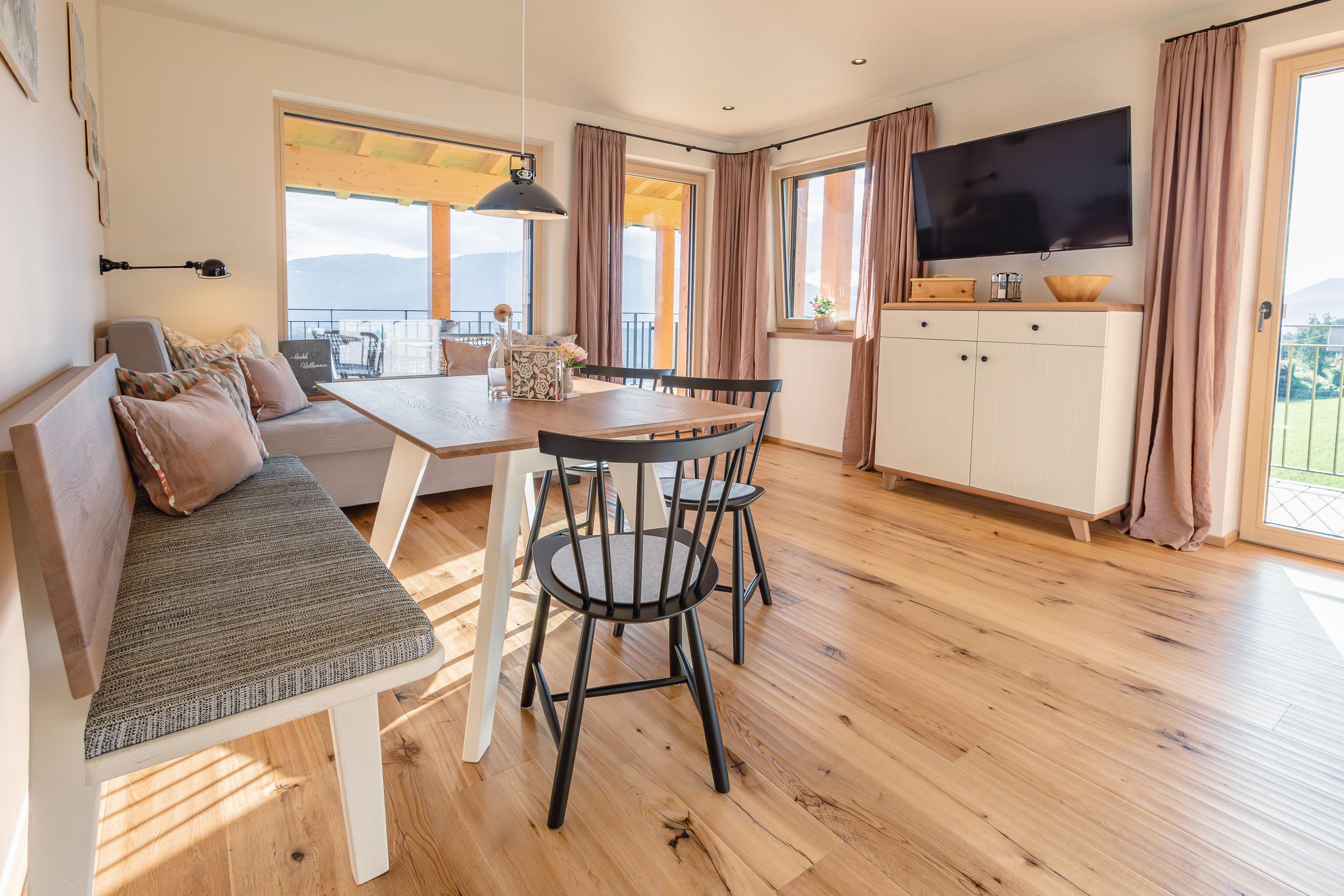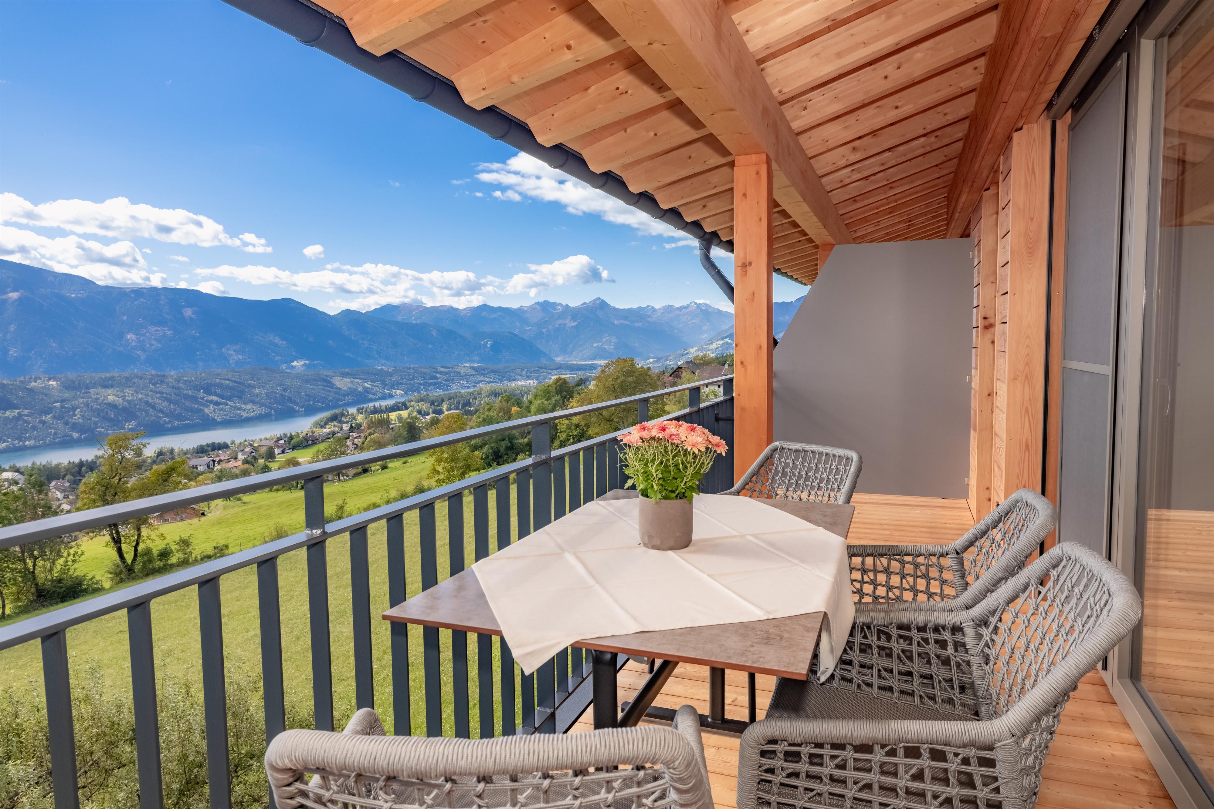Freuen Sie sich auf Ihr Wohnerlebnis in unserer neuen Weitblick-Suite! Dieses stilvolle Zweiraumappartement im ersten Stock bietet auf 43m² eine hochwertige Ausstattung mit edlen Vollholzmöbeln und Echtholzböden. Das separate Schlafzimmer mit feiner Leinenbettwäsche und eigenem westseitigen Balkon sowie eine helle Wohnküche mit zusätzlicher Schlafcouch sorgen für ein großzügiges Raumkonzept. Genießen Sie den atemberaubenden Panoramablick auf den See und die Berge von dem ganz privaten, 10m² großen, überdachten, südseitigen Balkon. Zur Ausstattung gehören Sat-TV, ein modernes Badezimmer mit geräumiger Dusche und WLAN. Der Preis beinhaltet die Millstätter-Inclusive-Card, die Ihnen den kostenlosen Zugang zu Strandbädern, Mautstraßen und weiteren Angeboten der Region ermöglicht.