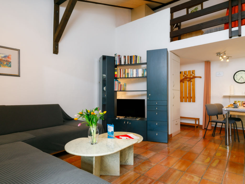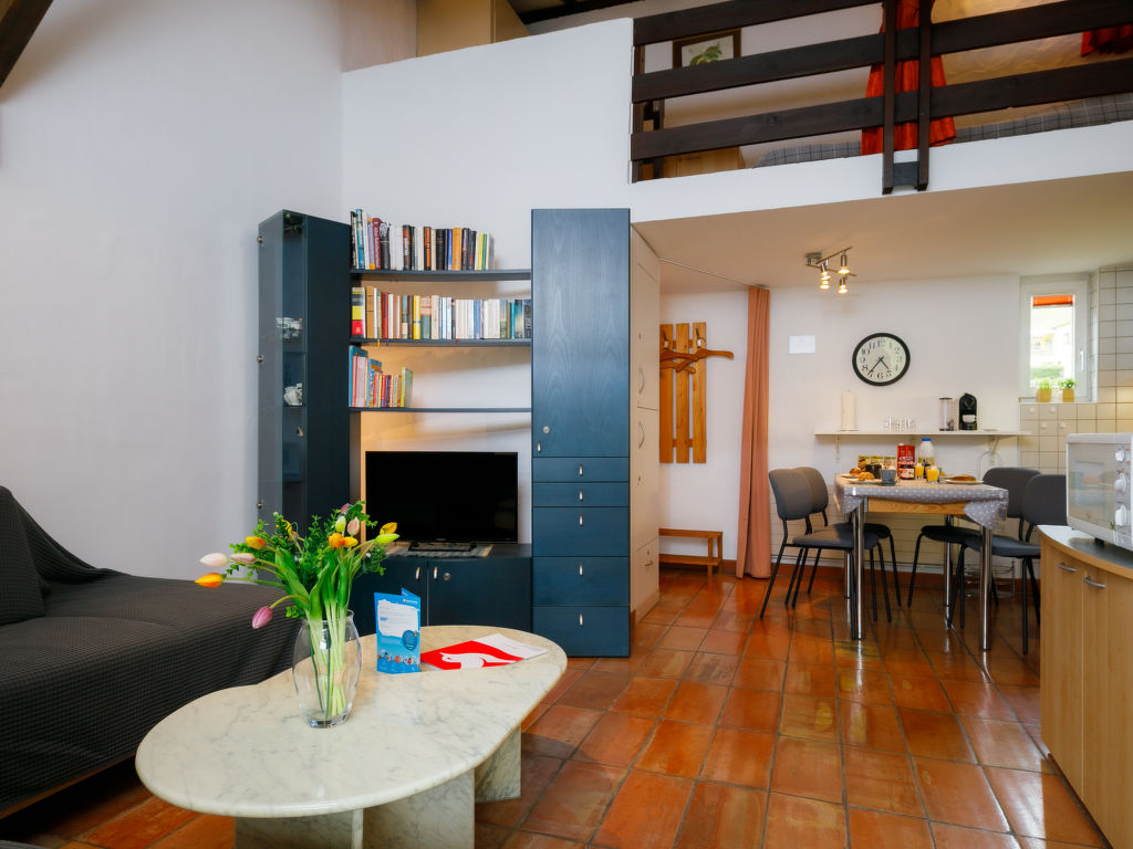 Villaggio Sureggio - App. C1, 2-Zimmer-Wohnung 47 m2 auf 2 Stockwerken. Komfortabel und gemütlich eingerichtet: offenes Wohn-/Esszimmer mit Panoramafenster mit Schwedenofen und Sat-TV. Ausgang zum Balkon. 1 Zimmer mit 2 Betten (90 cm, Länge 200 cm). (Backofen, 4 Glaskeramikplatten, Toaster, Wasserkocher, Mikrowelle, elektrische Kaffeemaschine, Kapseln für die Kaffeemaschine (Nespresso) extra) mit Sat-TV. Ausgang zum Balkon. Dusche/WC. E-Heizung. Obergeschoss: (steile Treppe) Galerie mit 2 Betten (90 cm, Länge 200 cm). Natursteinboden. Balkon. Balkonmöbel. Sehr schöne Sicht auf die Berge und die Landschaft. Zur Verfügung: Bügeleisen, Haartrockner. Internet (WLAN). Parkplatz Nr. 15 (überdacht). Bitte beachten: geeignet für Familien. Nichtraucher-Unterkunft. Eigener Eingang. Die Wohnung liegt direkt gegenüber dem Pool und der Liegewiese und ist sehr geeignet für Familien. Anstelle eines abgeschlossenen Schlafzimmers befinden sich manche Schlafplätze in einem offenen Bereich (Galerie, Nische etc.). NL-
