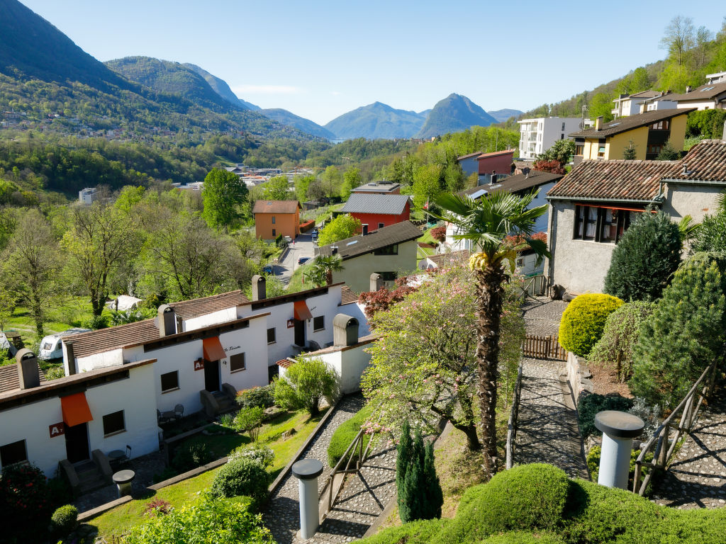 Lugaggia 7 km von Lugano: Grosse, kinderfreundliche Residenz Villaggio Sureggio, 443 m.ü.M., umgeben von Bäumen und Wiesen. 34 Wohnungen in der Residenz. Im Ort Sureggio, ruhige, sonnige Lage am Hang, im Grünen. Zur Mitbenutzung: Grundstück, grosser, schöner Garten, Liegewiese, Schwimmbad eckig (saisonale Verfügbarkeit: 01.Mai. - 30.Sep.) mit Innentreppe und Rollladenabdeckung. Dusche/WC im Poolbereich, Kinderbecken, Pergola, Terrasse, Feuerstelle, Kinderspielplatz. Im Hause: Tischtennis, Tischfussball, Waschmaschine (extra), Wäschetrockner (extra). Zufahrt bis zum Grundstück. Parkplatz (überdacht) auf dem Grundstück. Lebensmittelgeschäft 2 km, Restaurant 2 km, Bushaltestelle ARL 461 Lugano - Tesserete 10 m, Bahnstation Lugano 7 km, Freibad 2 km. Bekannte Seen in der Umgebung sind gut erreichbar: Lago di Lugano, Lago di Origlio. Wandergebiete: Monte Bar, Denti della Vecchia, Croce, San Lucio, Monte Bré, Monte Lema, MountainBike Gebiet Capriasca/ Tesserete. Bitte beachten: autofreie Ferienanlage, kein Fahrstuhl vorhanden. Geeignet für Familien, Babyausstattung auf Anfrage (extra). Der Besitzer akzeptiert keine Jugendgruppen. Alle Häuser/Wohnungen sind individuell eingerichtet. Parkplätze Breite 2.25 m Länge 5.00 m - ausgenommen Parkplatz App. A7 / P8 Breite 2.10 m Länge 5.00 m.
