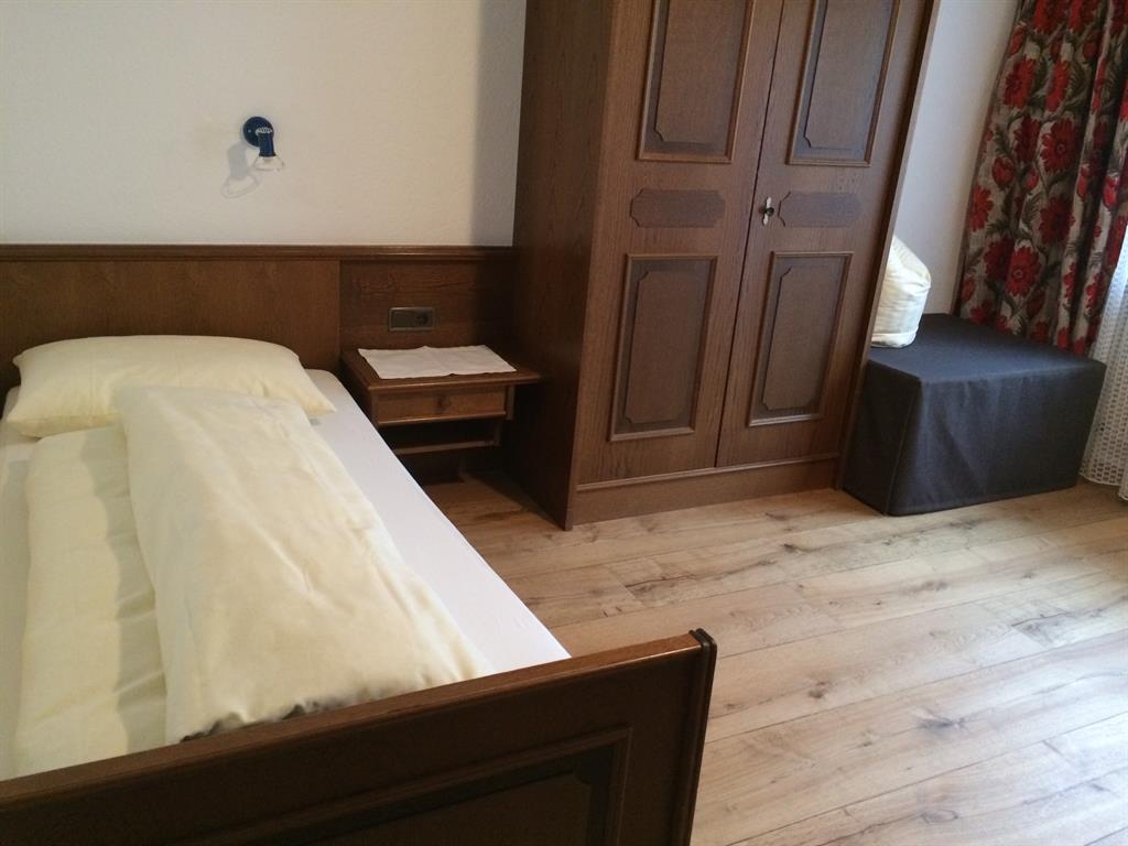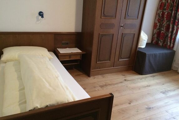 Sehr ruhig zum Süden gelegenes, gemütliches Einzelzimmer mit Badezimmer mit Dusche/WC, Sat-TV, Safe und Balkon; Zustellbett für eine 2. Person möglich.