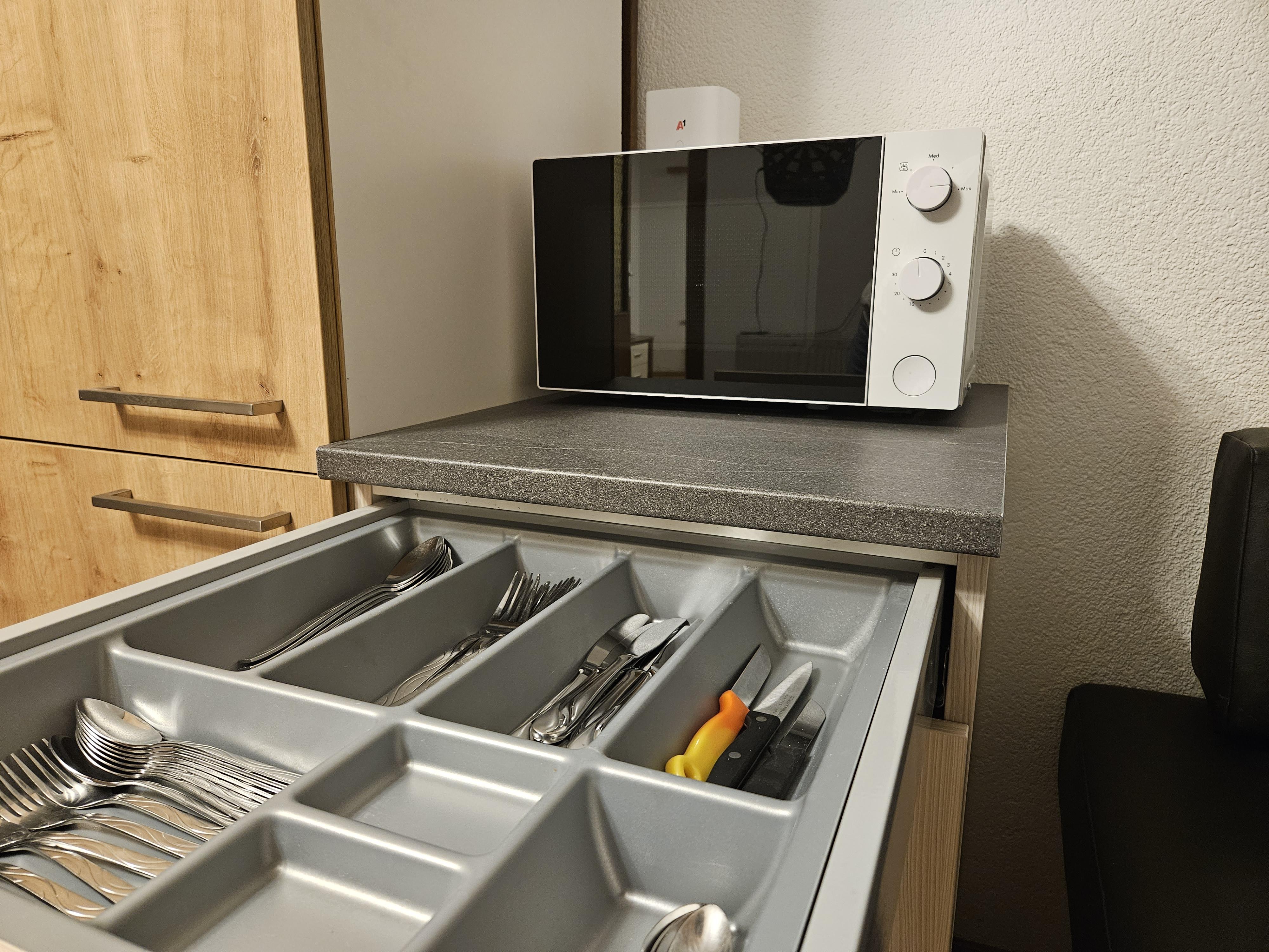 Die Wohnung bietet zwei Schlafzimmer für erholsame Nächte, eine moderne Wohnküche mit Mikrowelle, Backofen, Tiefkühlschrank, Kühlrschrank, Spülmaschine, Kaffeemaschine, Toaster und Wasserkocher für gesellige Mahlzeiten. Das einladende Wohnzimmer lädt zum Entspannen ein, Das Schlafzimmer und die Küche wird durch das Dachfenster natürlich erhellt. Zudem verfügt das großzügige Badezimmer über eine Waschmaschine für zusätzlichen Komfort.