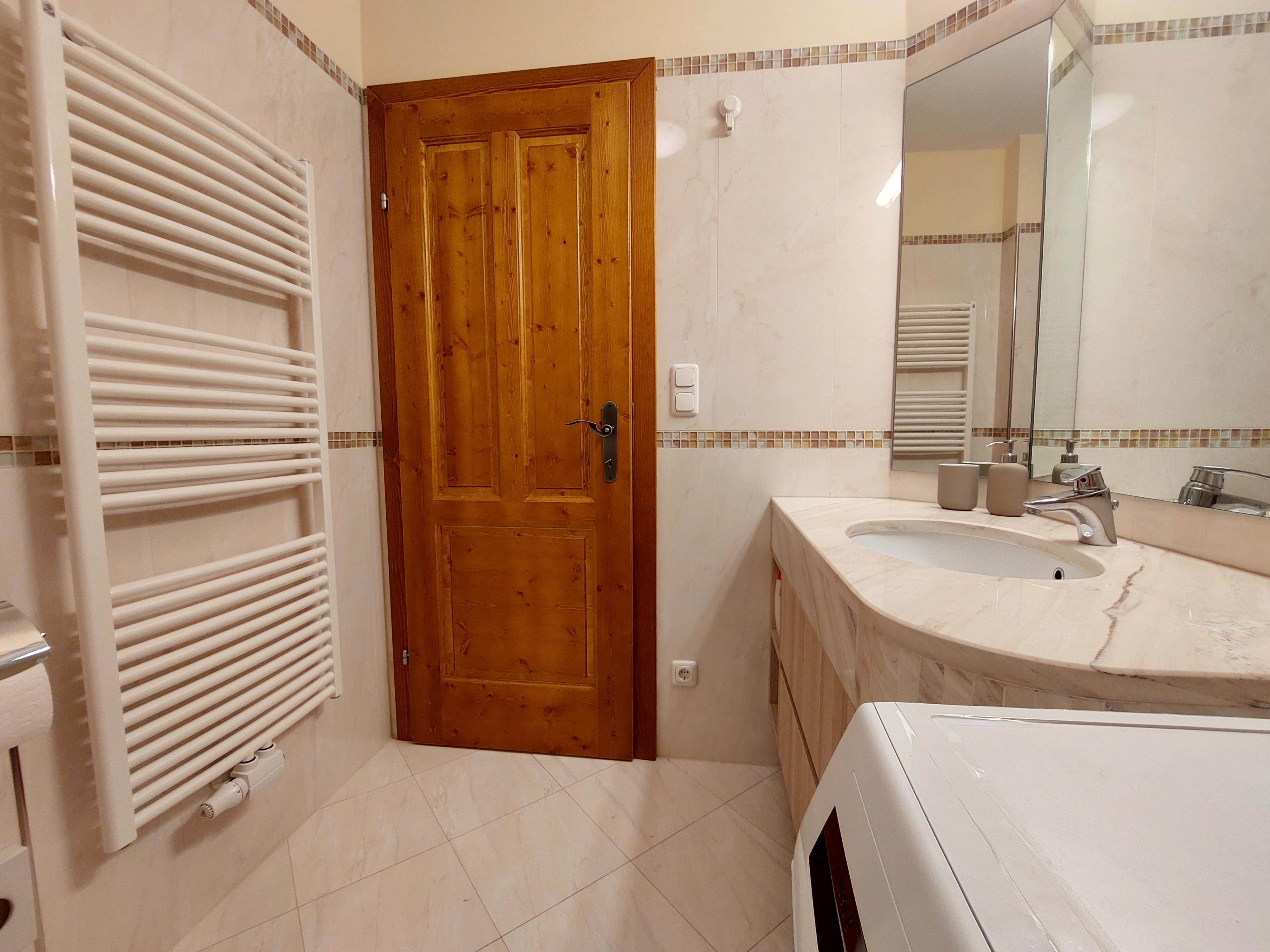 Geräumiges Apartment, strategisch positioniert zwischen Pisten, Therme, Restaurants, Bäckerei, Konditorei. Ein Schlafzimmer mit Doppelbett, eines mit Etagenbett und Einzelbett, zwei Badezimmer (eines mit Badewanne und Waschmaschine und eines mit Dusche), großes und helles Wohnzimmer mit Küchenzeile mit Backofen und Geschirrspüler, Balkon, Flachbildfernseher, WLAN-Anschluss und Schreibtisch für smart arbeiten.