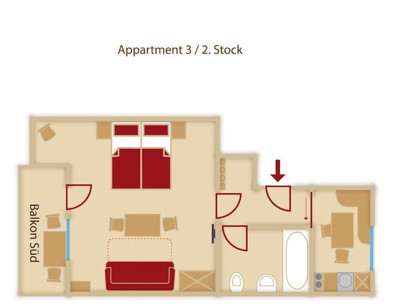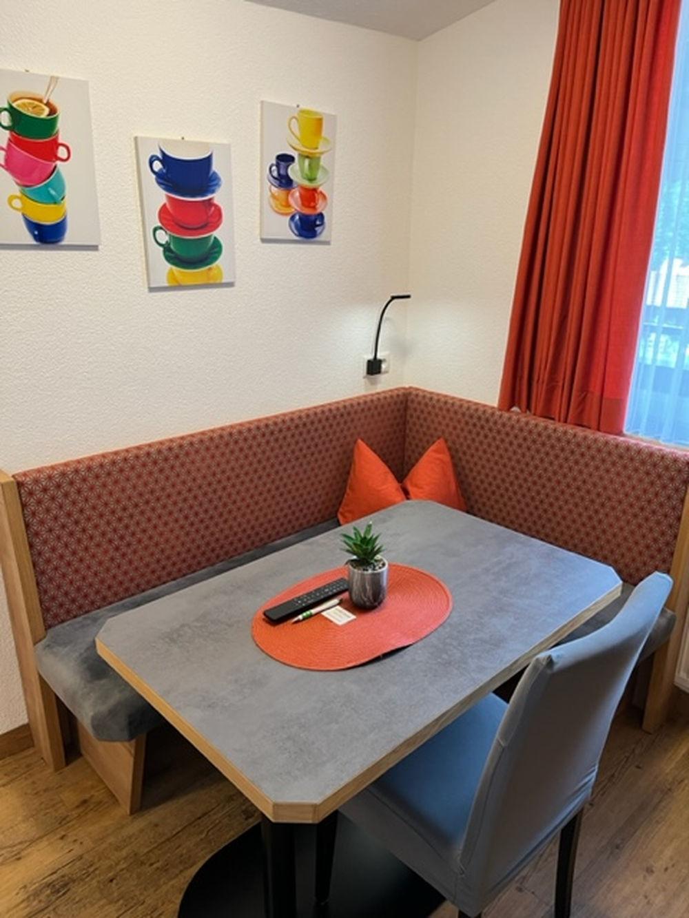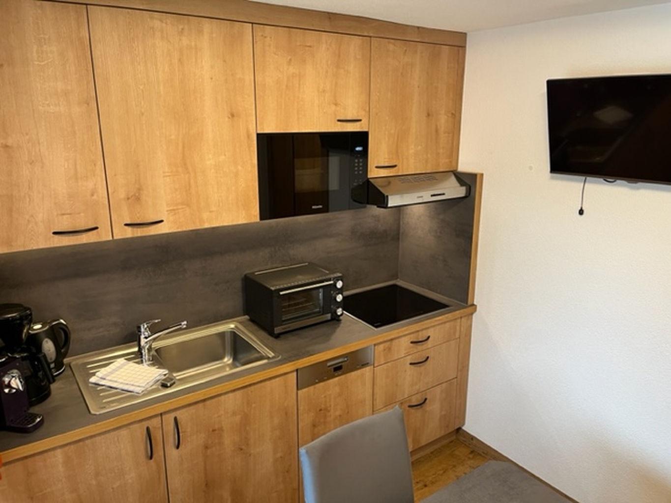 Neues Appartement ca. (40 m²) mit komplett ausgestattetes Wohnküche, Kabel-TV (Herd, Kaffeemaschine, Wasserkocher, Kühlschrank, Mikrowelle, Mixer, Eierkocher und Geschirrspüler...)1 Doppelzimmer mit einem Schlafsofa für 2 weitere Personen, Kabel-TV, Radio, Telefon, Safe. Badezimmer mit Dusche/WC, Haartrockner. Süd-Balkon
