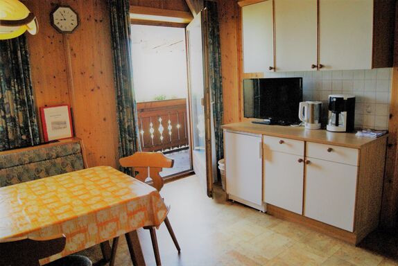 voll ausgestattete Wohnküche (Kühlschrank, Gefrierabteil, Herd, Backrohr, Wasserkocher, Kaffeemaschine), TV, WLAN, 2 Schlafzimmer (mit jeweils Doppelbett und Einzelbett), Dusche/WC und Balkon.