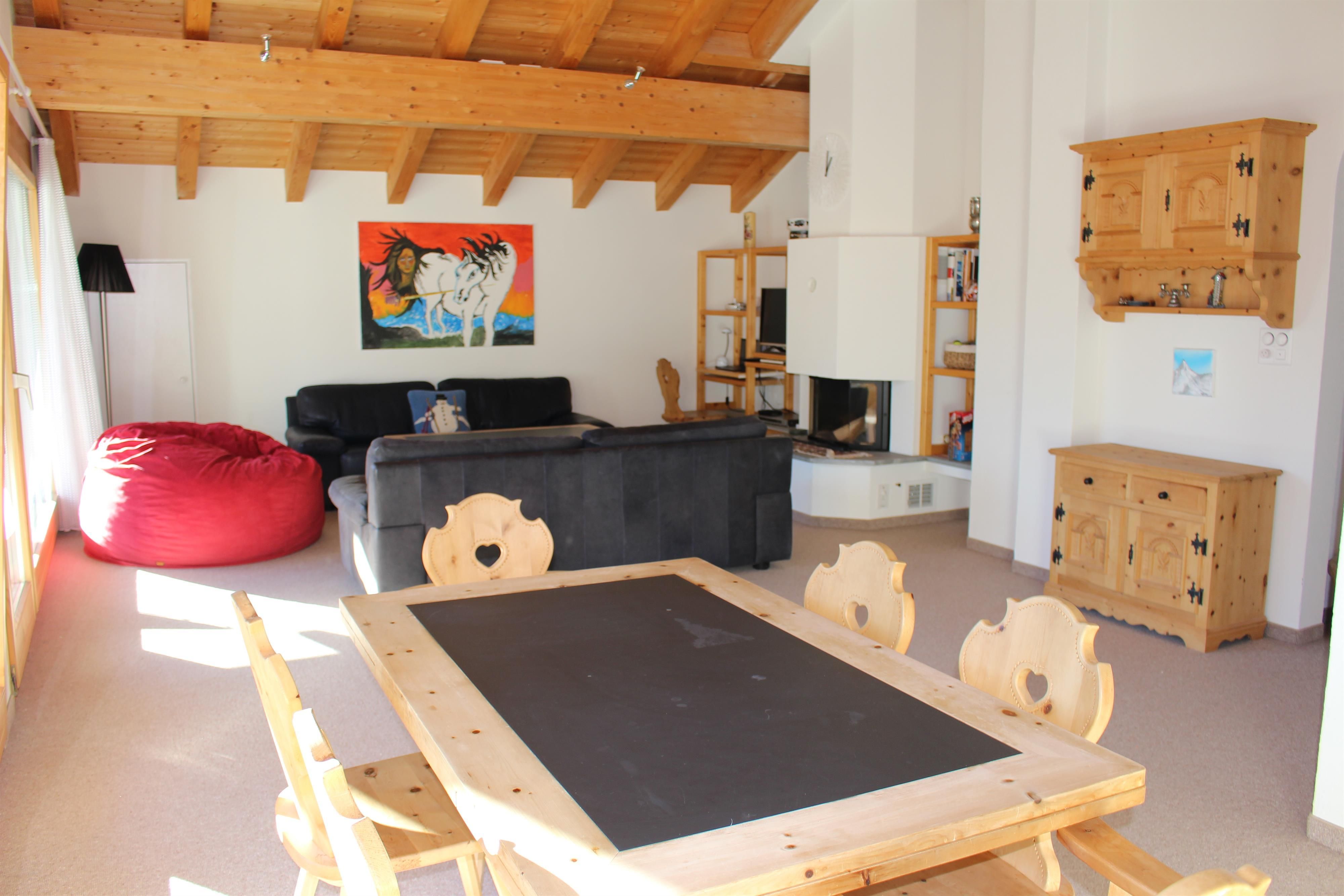 Grosszügige Wohnung mit schönem Blick Richtung Süden. 3 Schlafzimmer, Küche, Wohn-/Essraum mit Cheminée, Balkon. Lift und Parkplatz in der Tiefgarage.