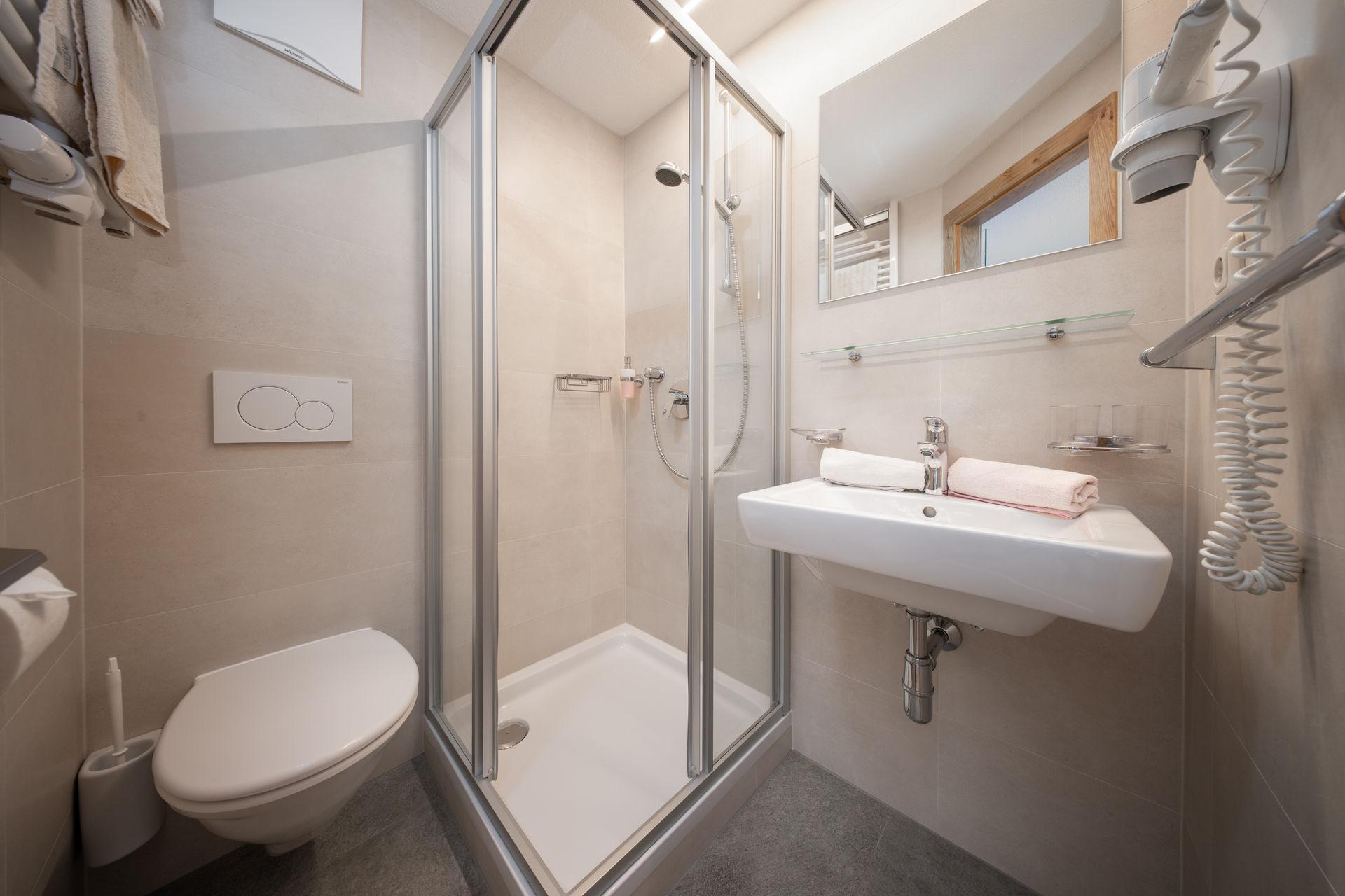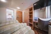 Modernes Dreibettzimmer mit Doppelbett und Schlafsofa für die 3. Person, Badezimmer mit Dusche/WC und Haarföhn, Safe und Kabel-TV. Teilweise verfügen unsere Zimmer über einen Balkon. Die Zimmer sind zum Teil neu eingerichtet. Größe ca. 23 m²