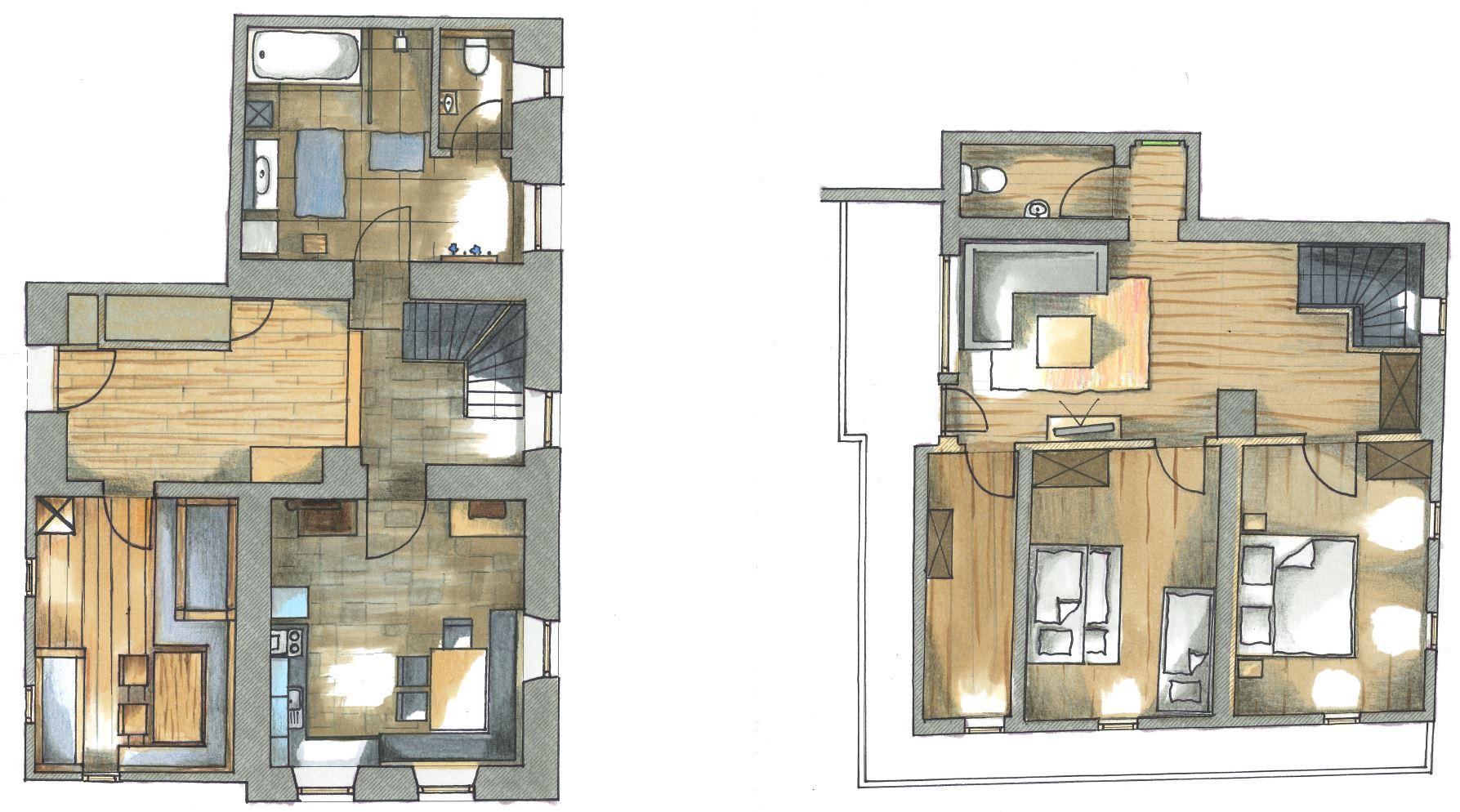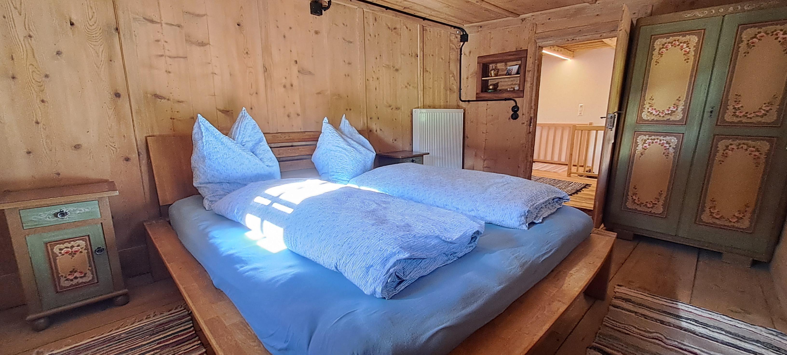 Gemütliches Ferienhaus mit komplett ausgestatteter Küche inkl. Holzherd. Weiters eine originale/rustikale Stube, 2 WC´s und großem Bad mit Badewanne und Dusche. Das Bauernhaus verfügt über 2 Schlafzimmer… Zimmer 1 mit einem klassischen Doppelbett, sowie Zimmer 2 mit 1x Einzelbett und Stockbett (Einzelbett und Doppelbett (140cm breit) in denen die uralte Holzvertäfelung sanfte Wärme vermittelt. In einer geräumigen Lounge befindet sich u.a. eine Couch mit Fernseher und lädt zum Entspannen ein.