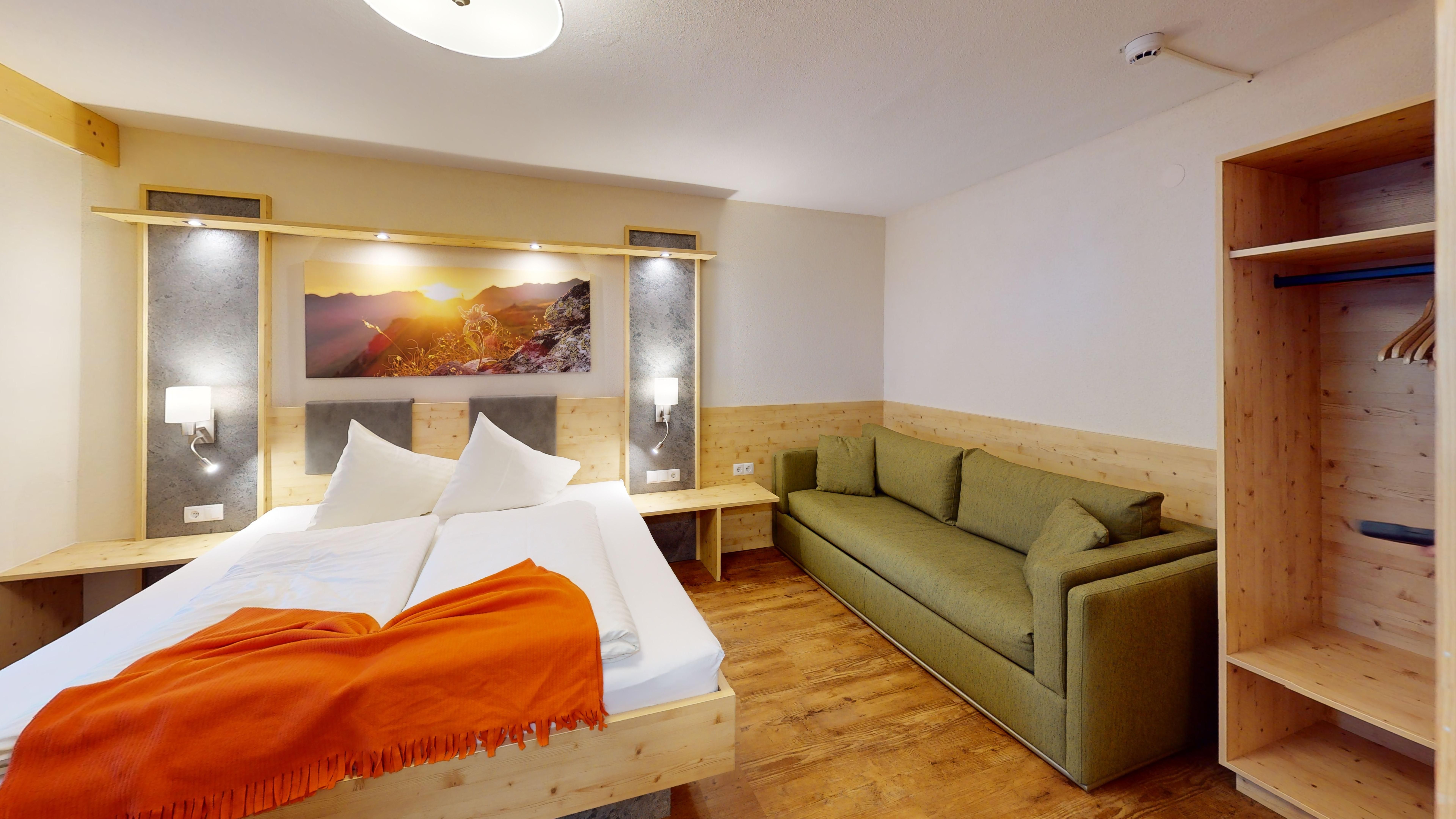 Suite-Zimmer für 2 - 3 Personen ca 30 m² mit Dusche, getrenntes WC, Kabel TV mit großer Auswahl an Programmen, Safe ,Teppichboden Balkon , gemütliches Sofa im abgetennten Raum