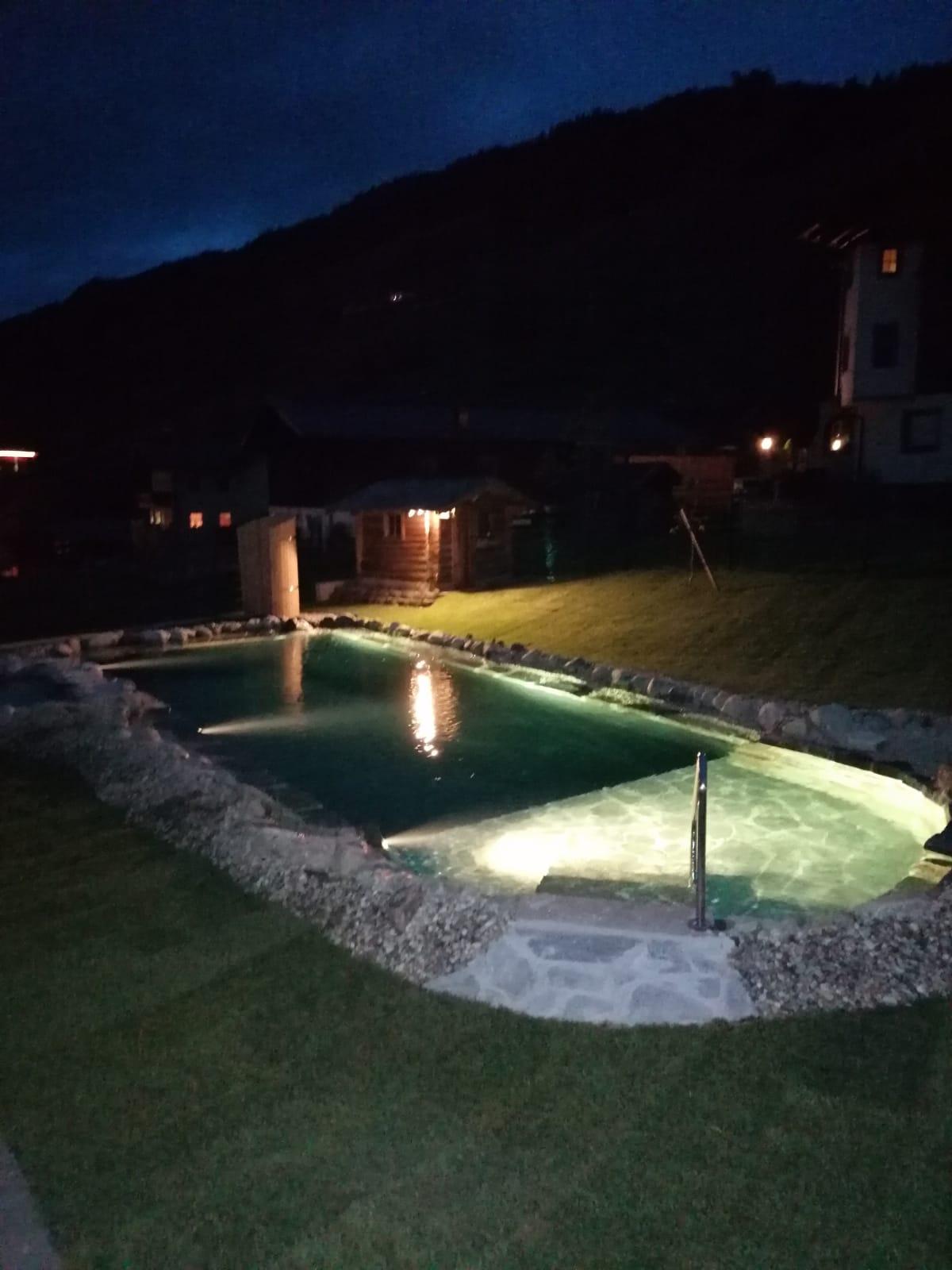 Unsere Saunalandschaft (Sauna, Infrarotkabine und Ruheraum) steht unseren Gästen im Winter kostenlos zur Verfügung. Im Sommer bietet unser Naturbadeteich eine sommerliche Erfrischung nach einem erlebnisreichen Tag in den Bergen.