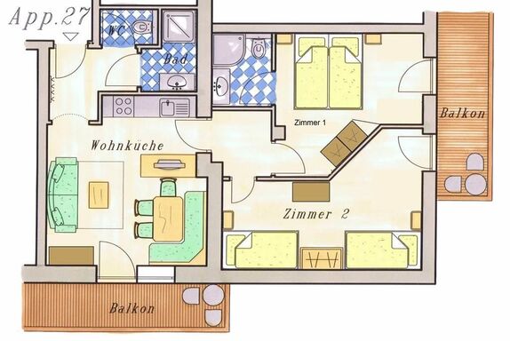 Appartement, 58 m², 2 getrennte Schlafzimmer, 2 Duschen, Balkon, Kabel-TV, Radio, Safe, Telefon, Geschirr, Bettwäsche, Handtücher, Kaffeemaschine, Wasserkocher, Mikrowelle, Backrohr, separates WC, Geschirrspüler