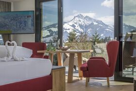 Unsere Penthousesuite ist 40 m² groß und verfügt 1 Schlafzimmer mit Eichenholzboden, Dusche und separetes WC, SAT-TV, Kochnische mit Kühlschrank, Haarföhn, Safe, Telefon, gemütliche Sitzecke, Balkon, einzigartigen Rundumblick auf die gesamte Bergwelt.