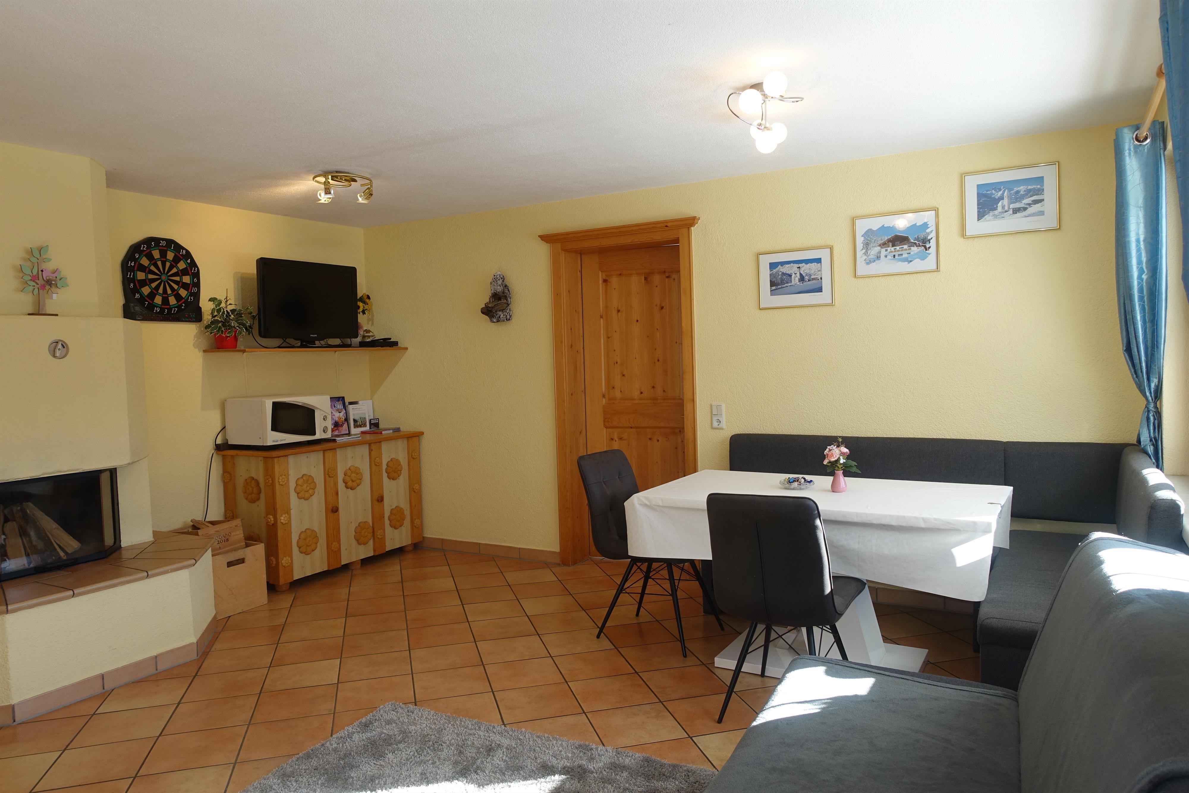 Wohnzimmer (TV (Satellit), offener Kamin), offene Küche (Backofen, Mikrowelle), 2 Schlafzimmer (Einzelbett, Doppelbett), Badezimmer (Dusche), Abstellraum. Fussbodenheizung, Terrasse, Kinderbett, Hochstuhl, Ski-Raum.