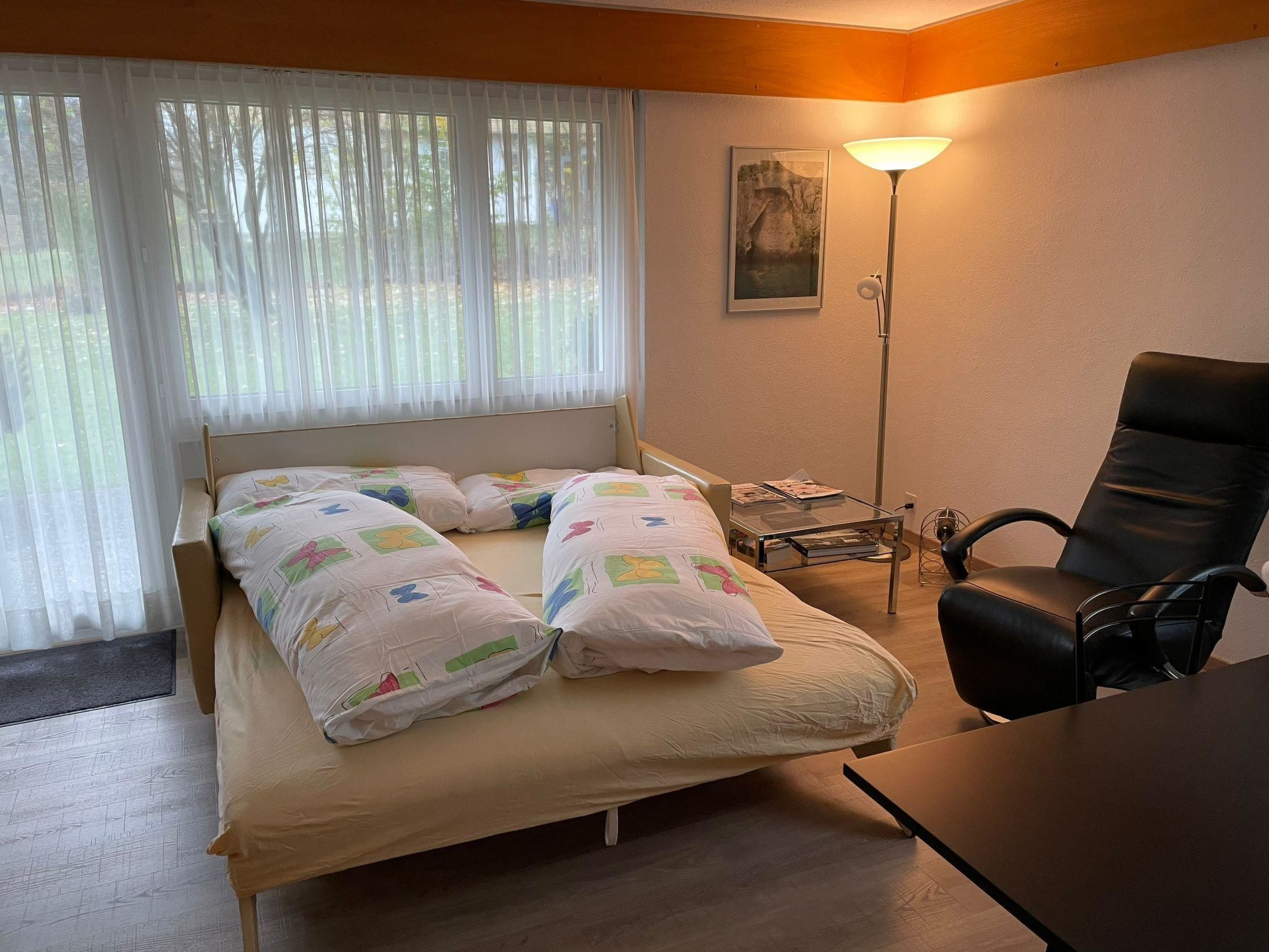 50 m2. Weitere Angaben des Anbieters: Renovierte 2.5 Zimmerwohnung, sehr zentral gelegen, im Erdgeschoss mit eigener Terasse/Grill und Zugang zum Garten. 5 Minuten zu Fuss zum Wallbach Bad und zur Walleg Skistation, 10 Minuten zu Fuss zum Dorfzentrum. Direkt an der Bushaltestelle welche gratis zu Bahnhof oder Skistationen führt. Die Wohnung besticht durch ihre ruhige und gleichzeitig zentrale Lage. Sie ist ideal für Paare oder Familien mit 2 Kindern. Schöne Ferienwohnung mit hellem Wohn- und Esszimmer, Esstisch für 6 Personen, Sifa und Sessel, TV, Radio und DVD. Küche und Bad sind neu renoviert. Die Küche verfügt über Abwaschmaschine, Kaffemaschine, Wasserkocher, Backofen, Herd und Kühlschrank. Das Bad besticht durch seinen Natursteinboden und seine Rainbox-Dusche. Grill auf der Terassel inkl. Gas darf benutzt werden. Gartentisch für 6 Personen. Direkter Zugang zum Garten. Auf der Terasse darf geraucht werden, nicht aber in der Wohnung. Einstellhallenplatz für ein Auto; weitere Parkplätze ausserhalb der Garage. 2 Fahrräder zur freien Verfügung. ÖV inklusive im Simmental und Saanenland mit der SIMMENTAL CARD: Übernachtungsgäste in der Ferienregion Lenk-Simmental fahren mit einer gültigen Gästekarte kostenlos mit dem öffentlichen Verkehr für Ausflüge. Der Preis versteht sich inklusive Bettwäsche, Küchenwäsche, Frottewäsche, Elektrizität, Heizung, Garagen-Einstellhallenplatz, Grill mit Gas, TV und DVD.