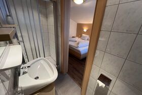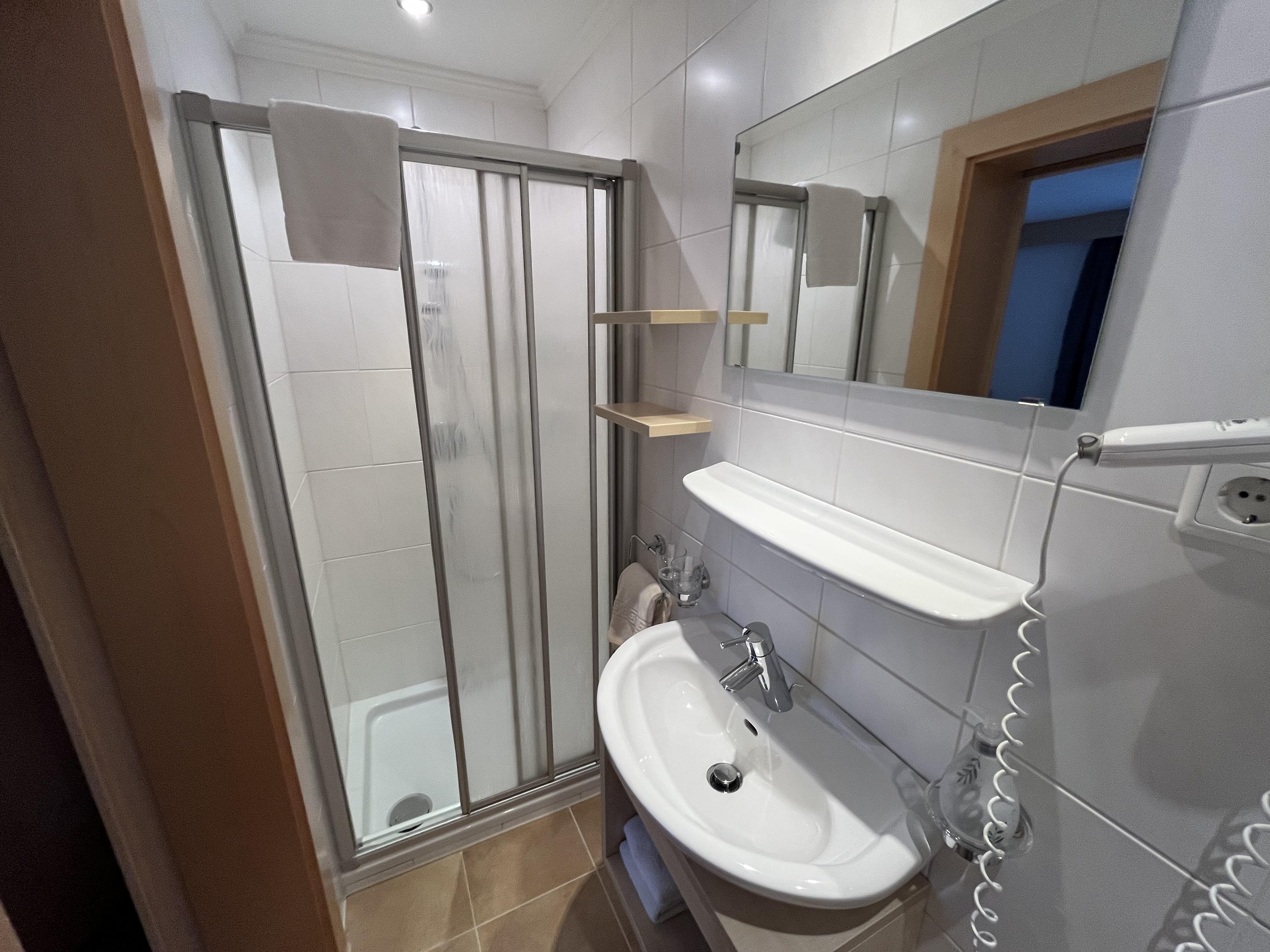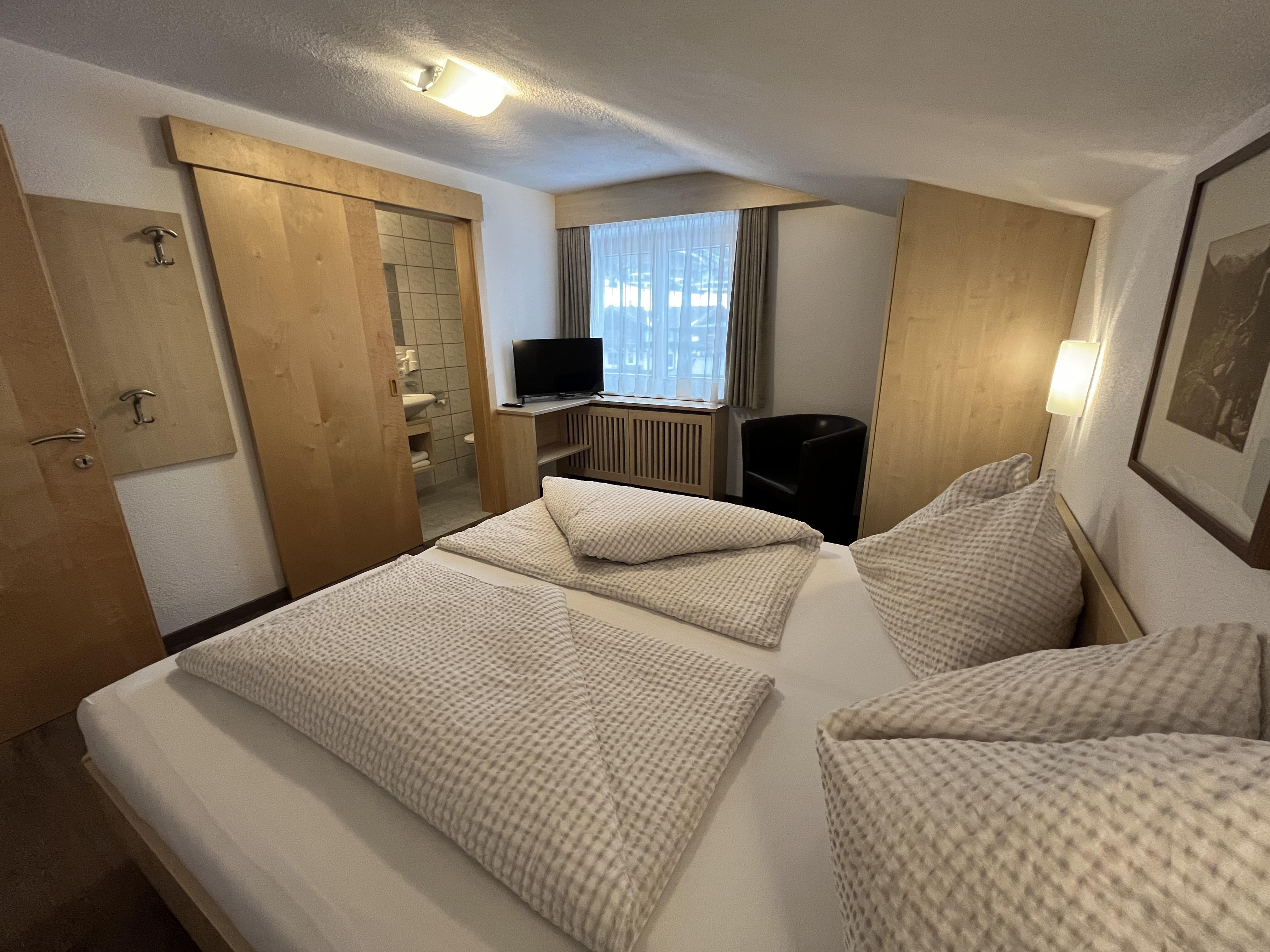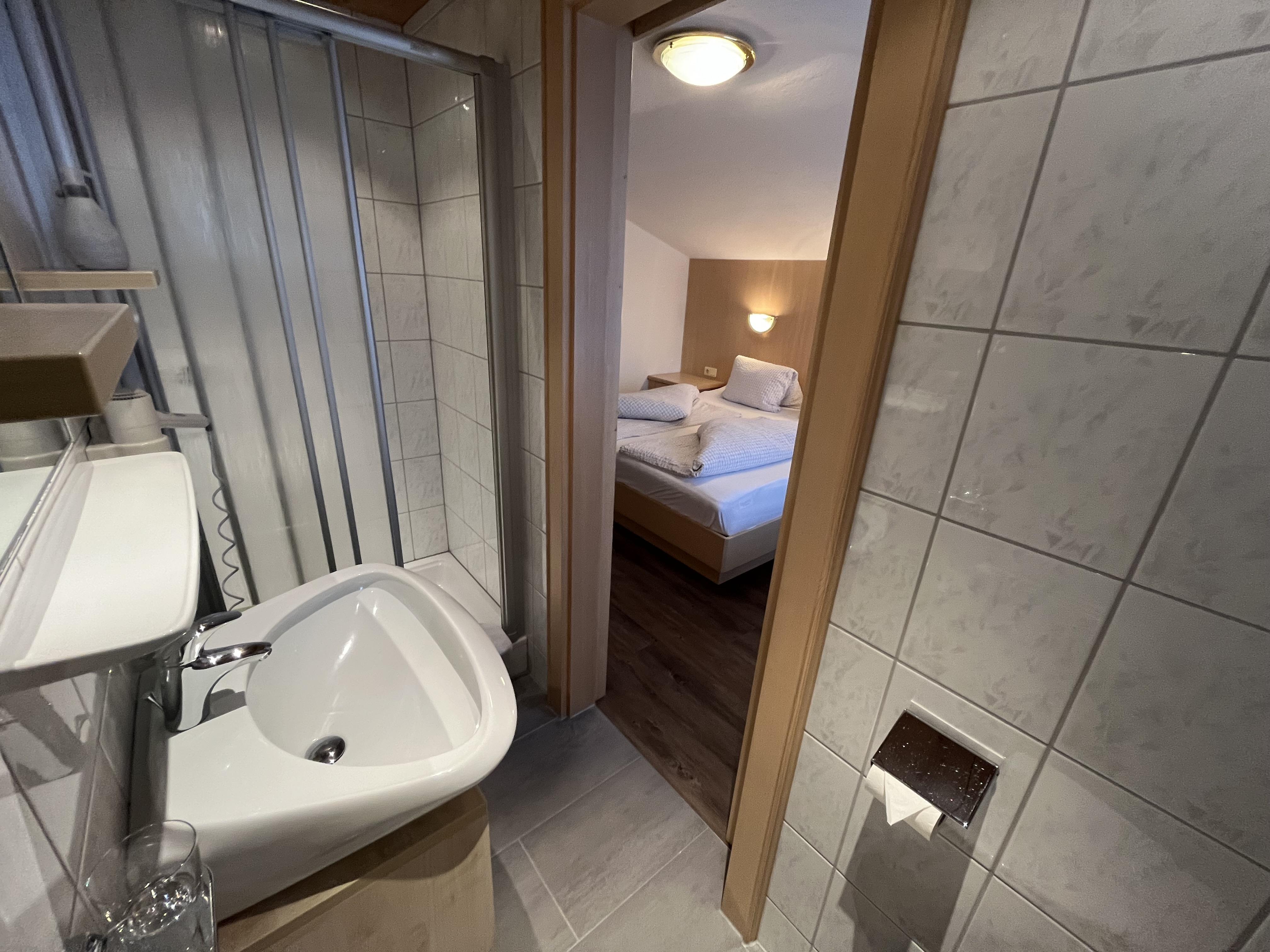 Gemütliches Doppelzimmer (ca. 17 m²) mit Badezimmer (Dusche/WC), Haartrockner und Flat-TV.