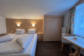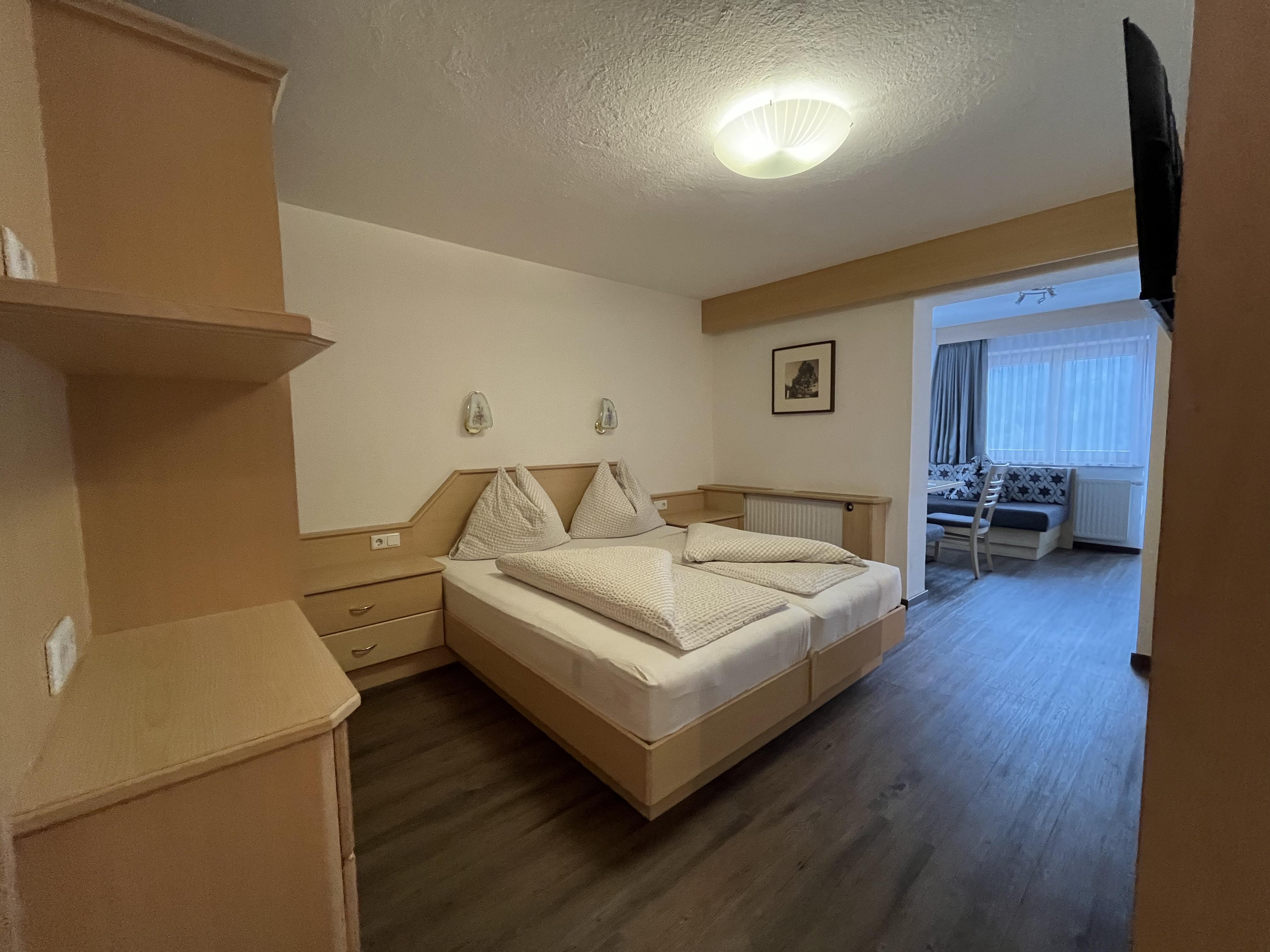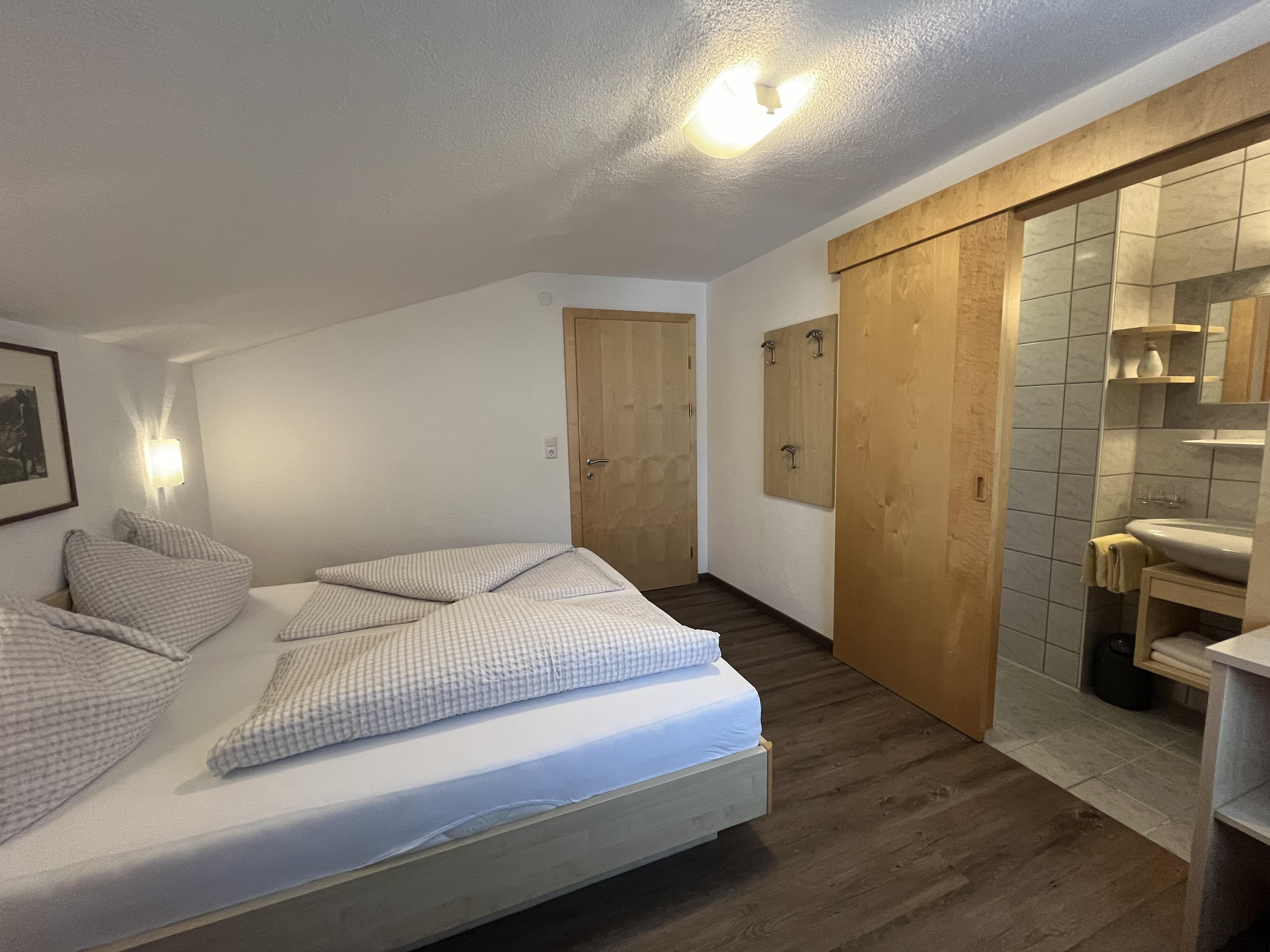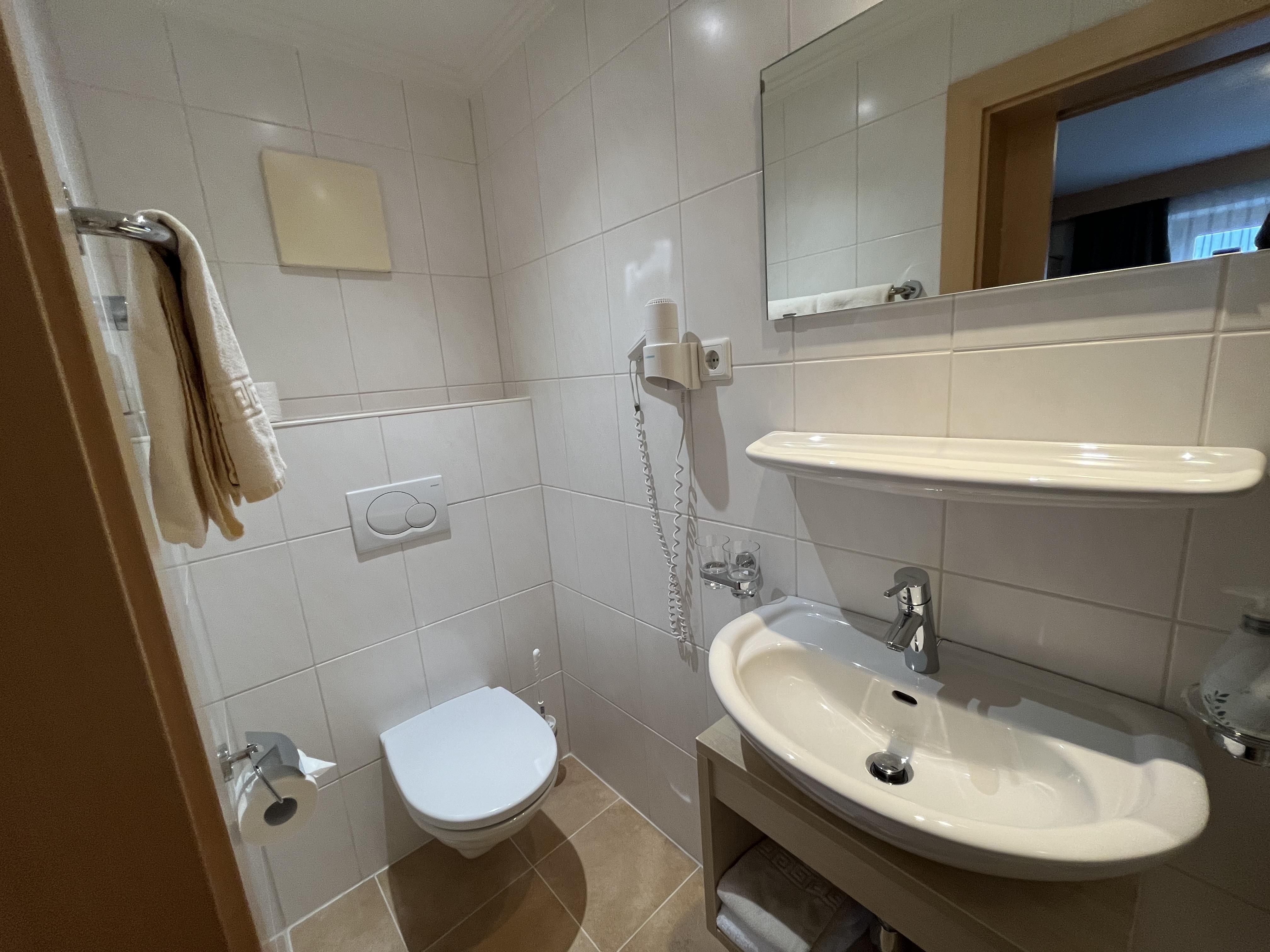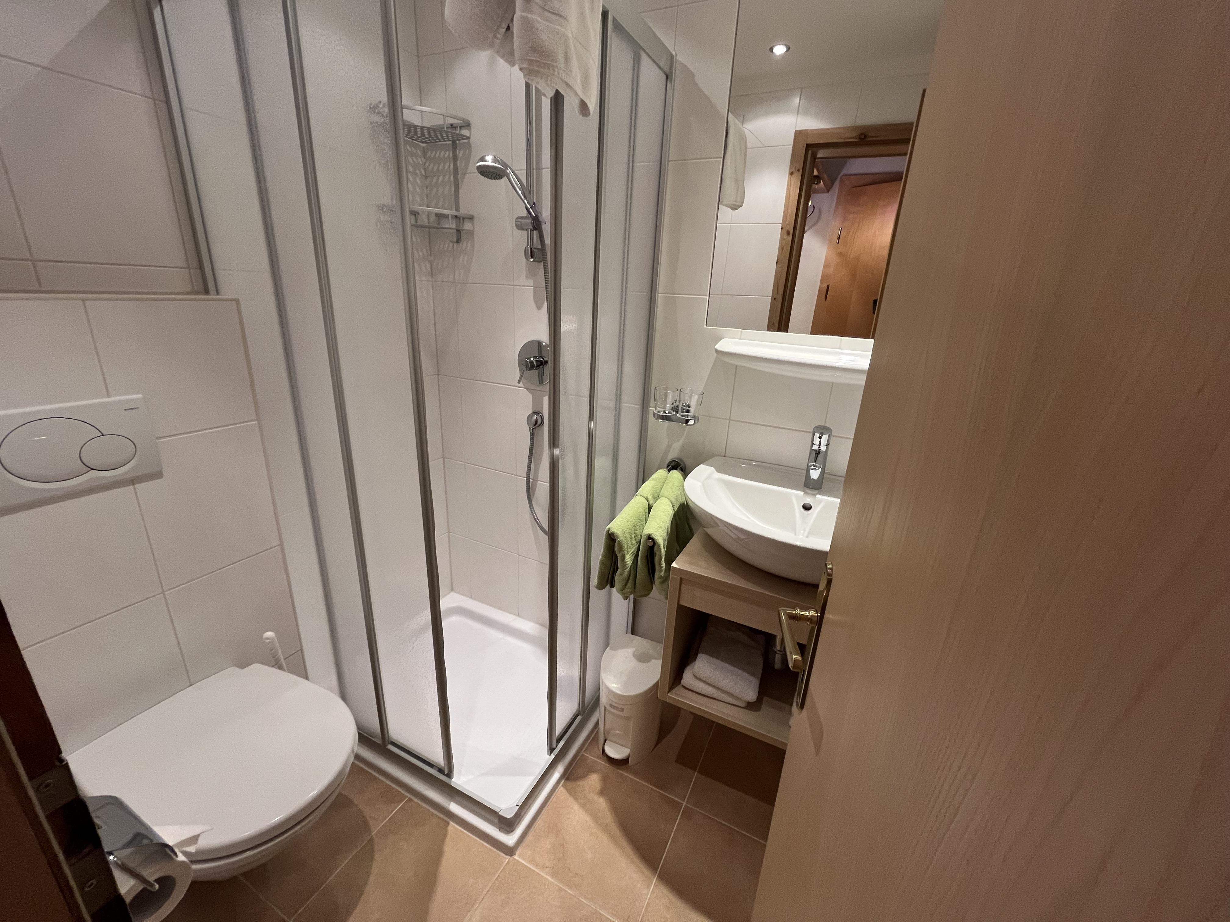 Gemütliches Doppelzimmer (ca. 17 m²) mit Badezimmer (Dusche/WC), Haartrockner und Flat-TV.