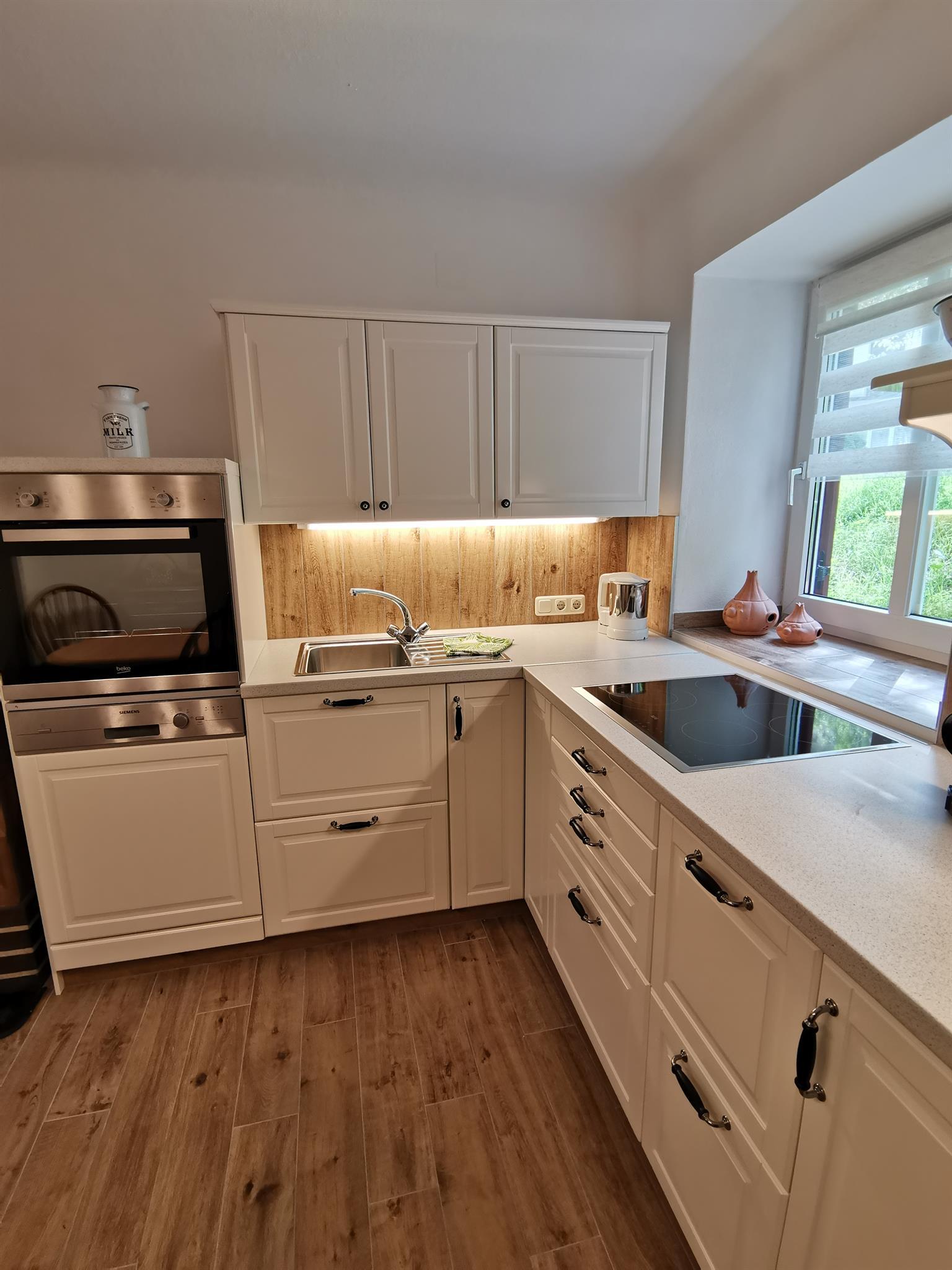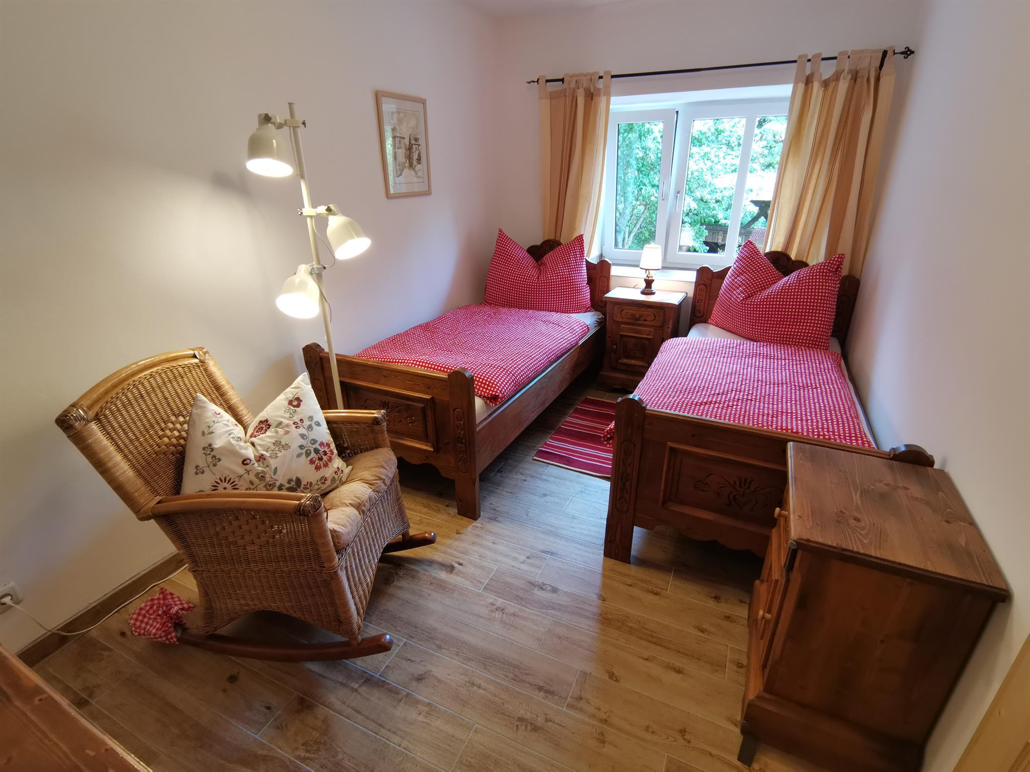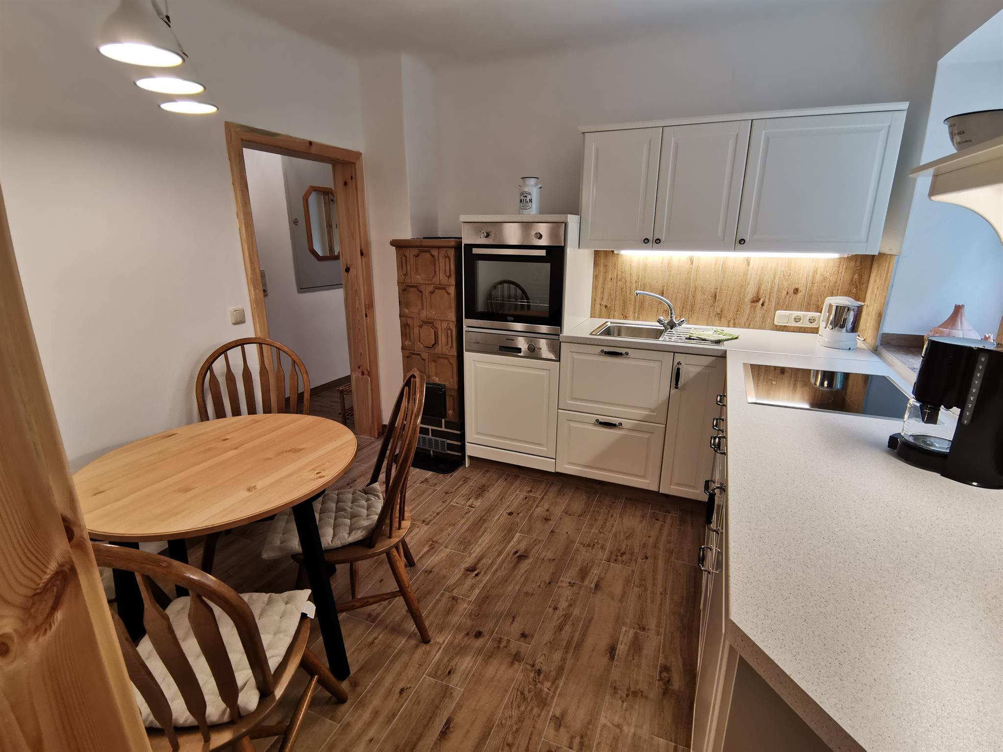 Liebevoll renoviert bietet die Wohnung im urigen Landhausstil einen Ort, an dem man sich wohlfühlen und entspannen kann. Mit 2 Schlafzimmern, einem Bad mit Dusche und eigener Waschmaschine, getrenntem WC sowie einer voll ausgestatteten Küche bietet die Wohnung genügend Platz für 2 bis 4 Personen. 2 Kachelöfen sorgen für wohlige Wärme (Brennholz steht genügend zur Verfügung). Die eigene Terrasse mit Sitzgarnitur ist ebenfalls mit dabei.
