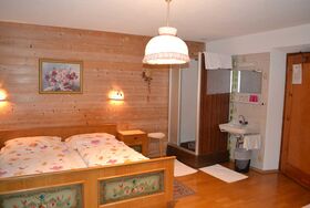 Großzügiges Gästezimmer für bis zu 4 Personen, ca. 25m². Im Zimmer befindet sich ein Doppelbett sowie eine Schlafcouch, Gitterbett möglich. Sat-TV und Dusche im Zimmer vorhanden. Das WC befindet sich am Gang.