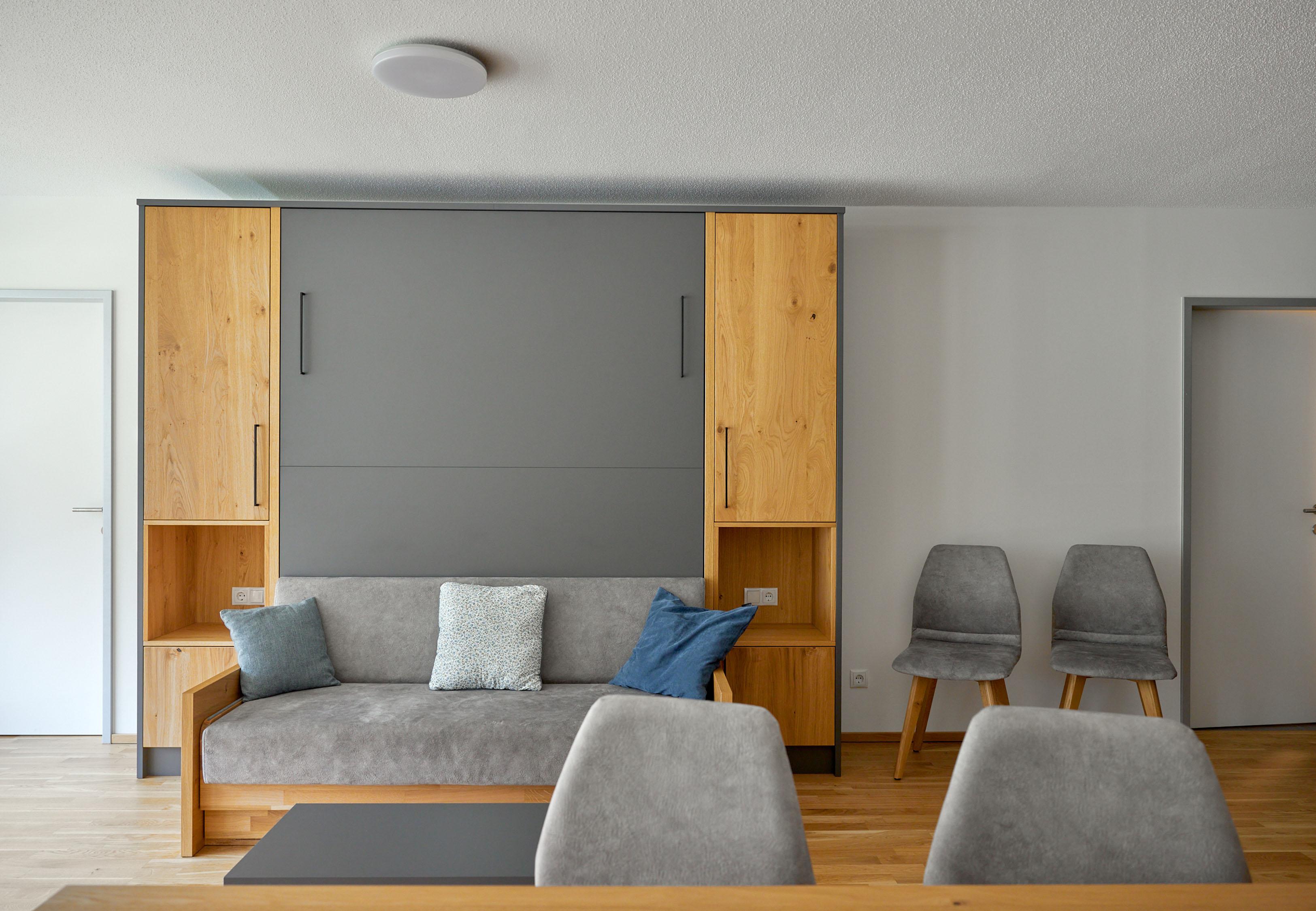 Willkommen im Zapfig Living Apartment 33, Deinem perfekten Rückzugsort für einen erholsamen Aufenthalt. Die 80 m² Unterkunft im 2.Stock bietet ein gemütliches Wohnzimmer inkl. ausziehbaren Kingsizebett mit Smart-TV, 2 Schlafzimmer (Kingsizebett+ausziehbares Einzelbett+Smart-TV) sowie eine voll ausgestattete Küche. Die 2 Badezimmer verfügen über Dusche und WC. Genieße den Komfort einer eigenen Unterkunft+entspanne in alpiner Umgebung. Vom Balkon mit Liegenstühlen besteht Bergblick.