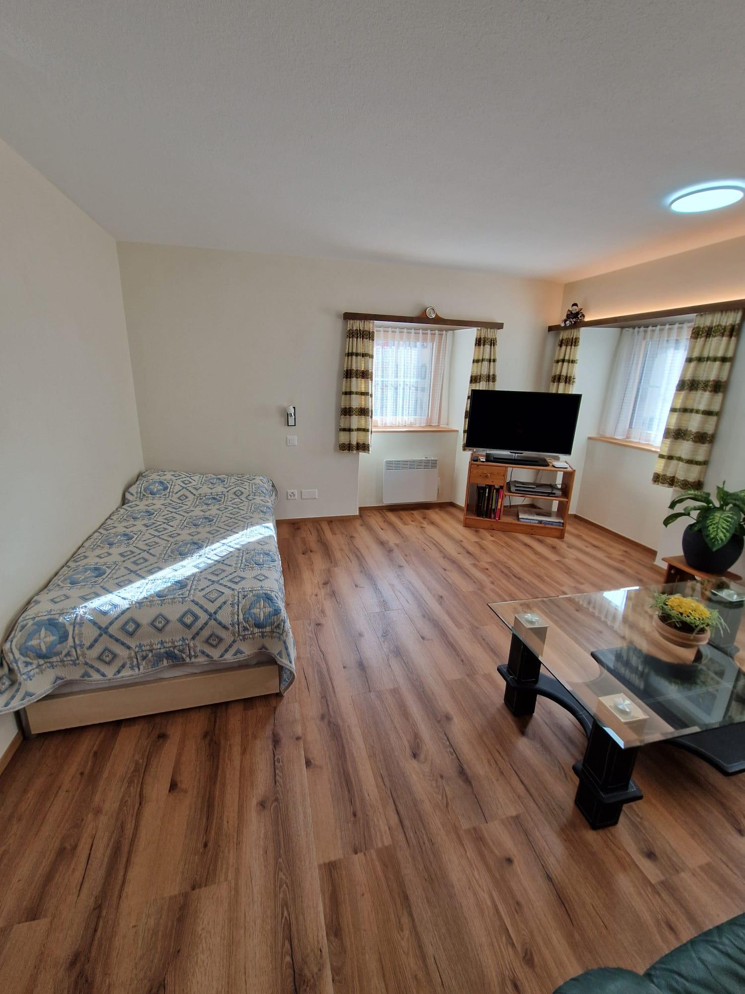 2 1/2 Zimmerwohnung ca. 45m2 in Mehrfamilienhaus. 1 Schlafzimmer mit 2 Einzelbetten. 1 Schlafgelegenheit mit 1 Bettsofa, insgesamt 4 Betten. Bettwäsche und Küchentücher vorhanden. Küche im Wohnzimmer integriert mit Backofen, Kühlschrank und Kaffeemaschine. Küchenutensilien. Raclette-, Fondueset und Toaster. Dusche und WC. Föhn. Haustiere nicht erlaubt. Nichtraucherwohnung. TV. Gratis WLAN vorhanden.