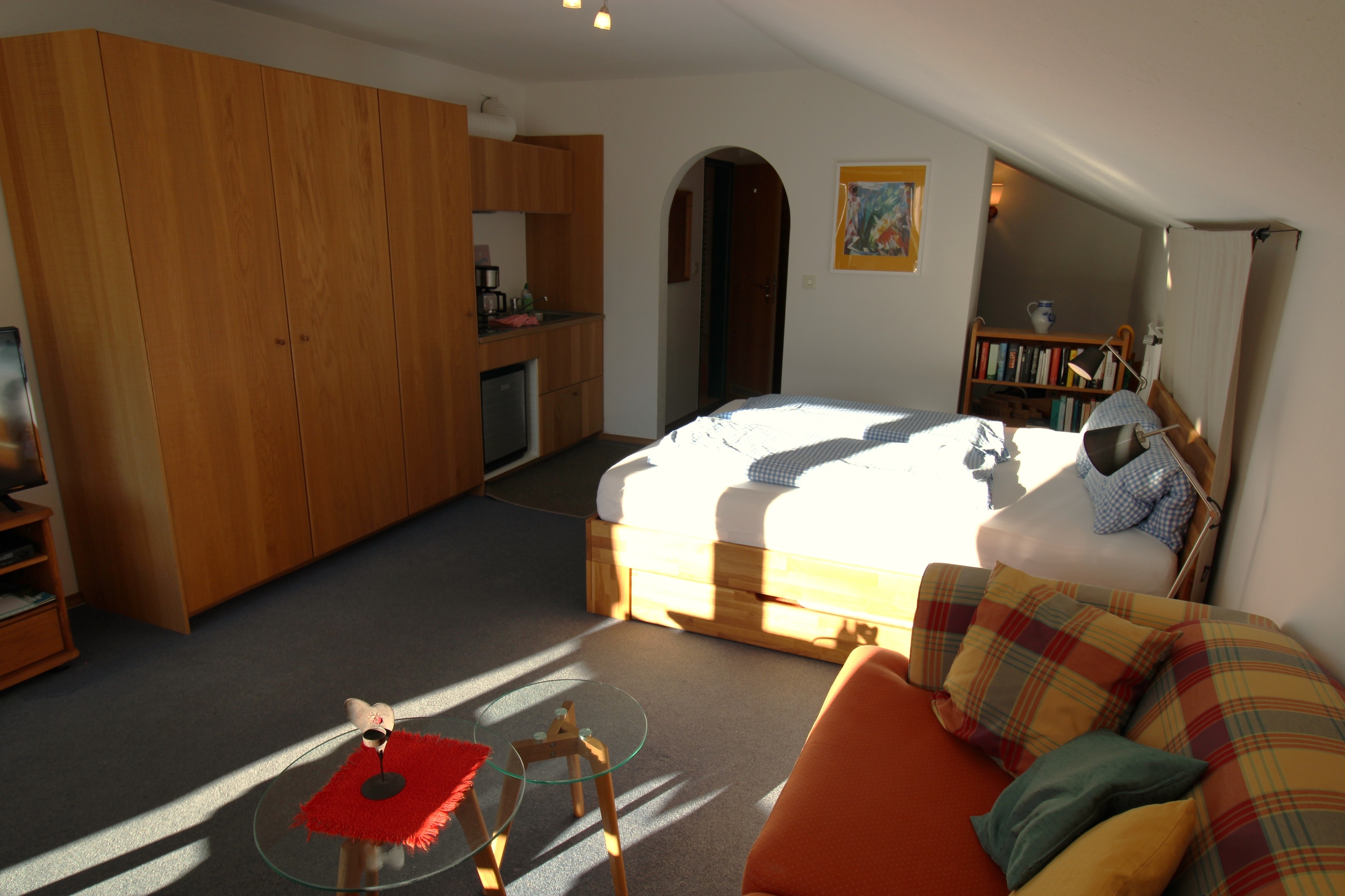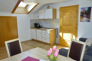 Die Ferienwohnung Blüm ist Ihr gemütlicher Ausgangspunkt in Mittenwald und für alle Unternehmungen geeignet. Das Appartement ist mit kombiniertem Wohn-/Schlafraum gemütlich eingerichtet und in der Kitchenette können Sie ihr Frühstück und kleinere Speisen selbst zubereiten. Eine DU/WC, sowie ein offener Vorraum komplettieren das Angebot. Highlights sind die zentrumsnahe Lage, wodurch Sie in der Lage sind, die täglichen Einkäufe zu Fuss zu erledigen und der Südbalkon mit herrlichem Blick auf das Karwendel- und Wettersteingebirge. Ein PKW-Stellplatz befindet sich am Haus.