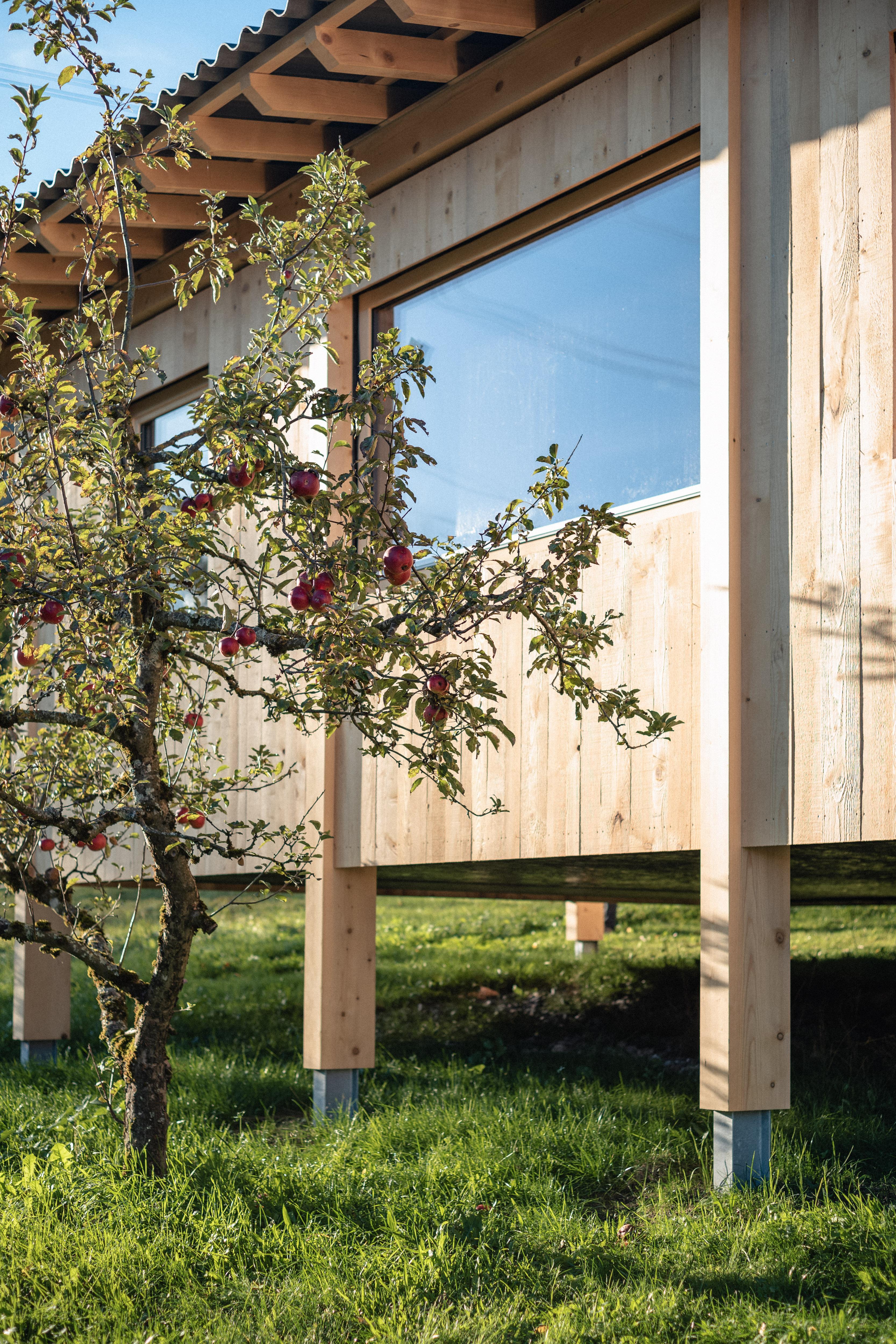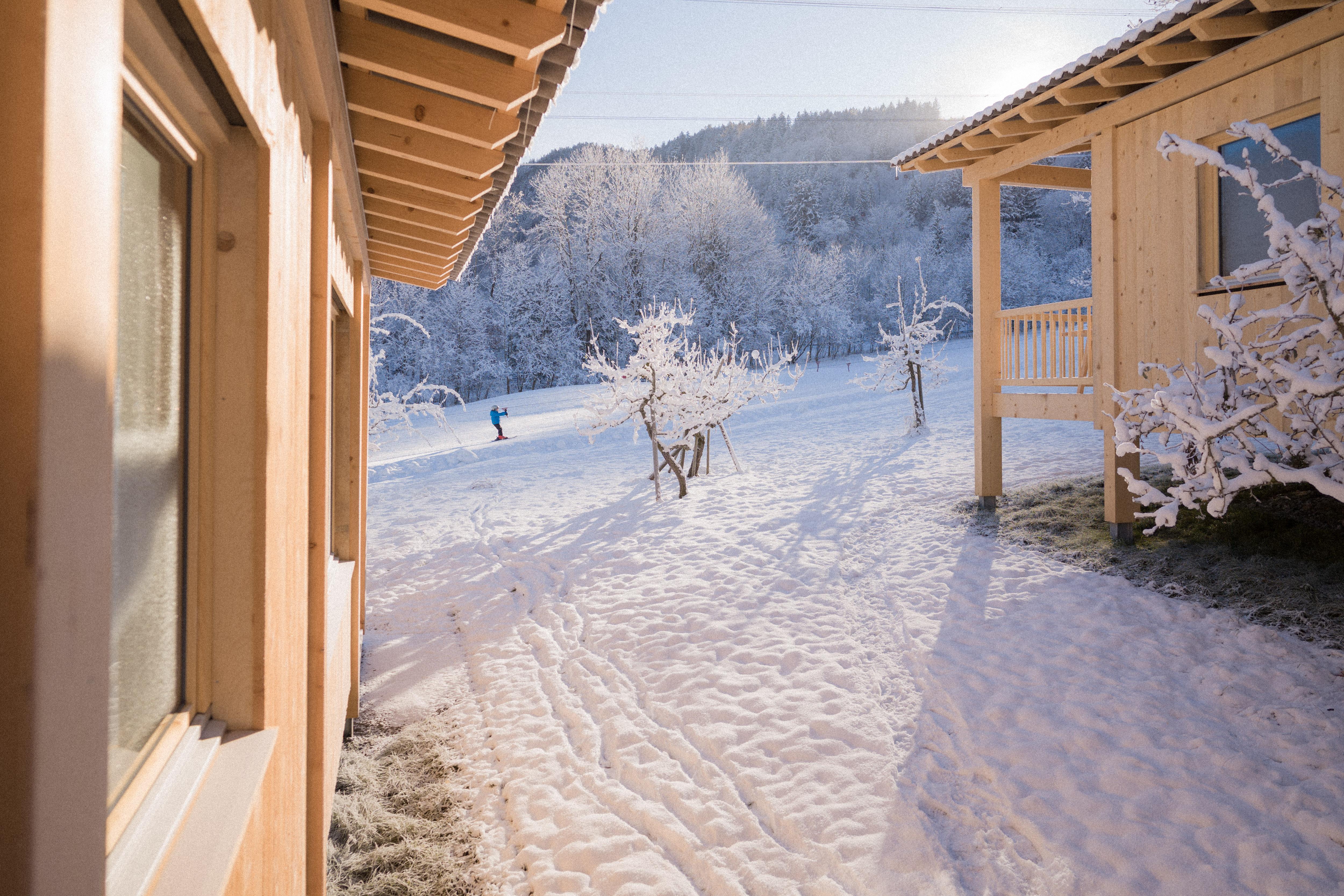 Chalets inmitten unserer alten Obstbäume. In jedem Chalet fließen Nachhaltigkeit, Regionalität und Ferienkomfort stimmig ineinander. Das Bauholz stammt aus unserem eigenen Wald. Strom produzieren wir umweltfreundlich mit unserem Kleinwasserkraftwerk.