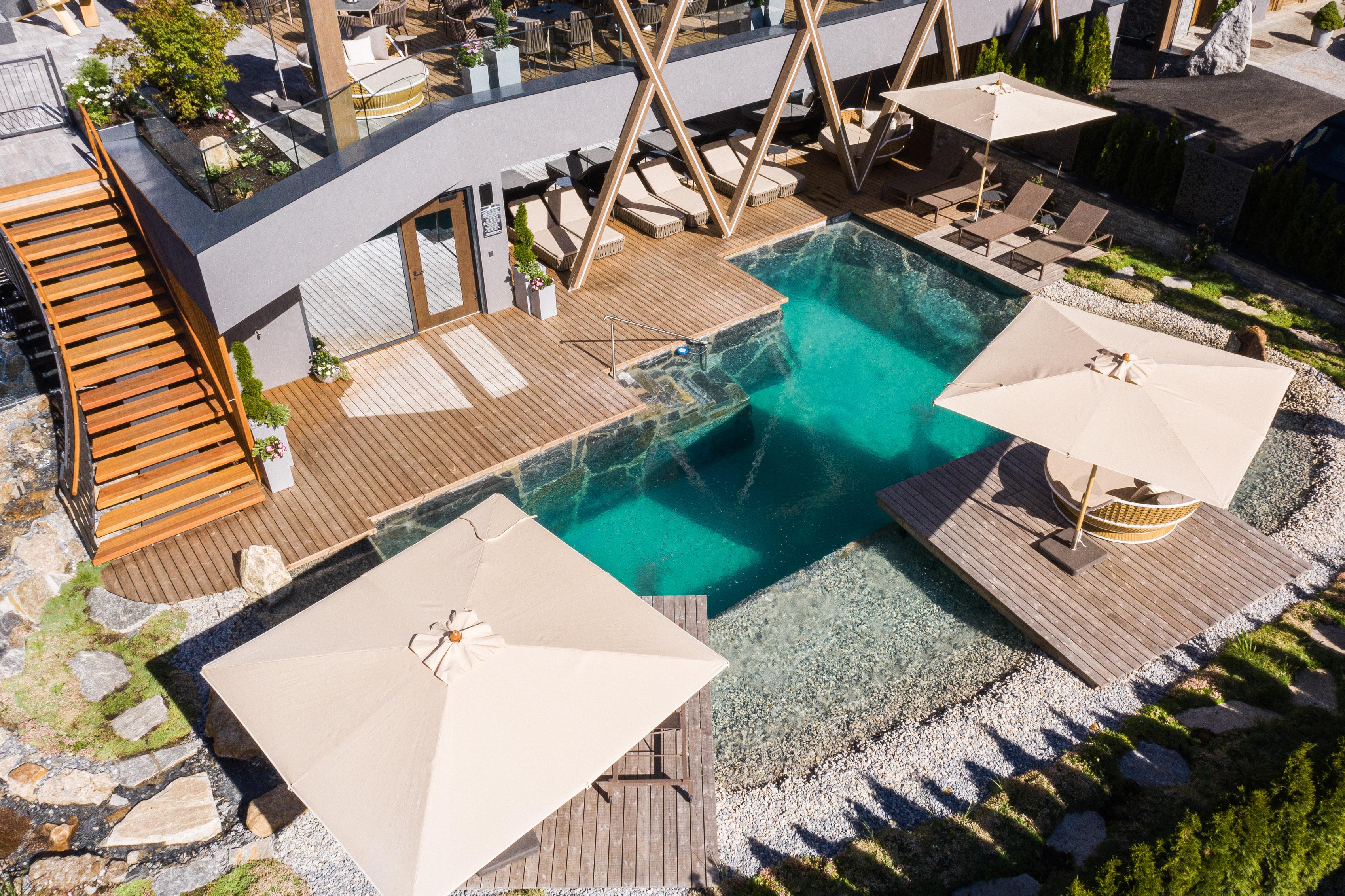 1200 m² Crystal-Spa mit Farblichthallenbad, Natur-Außenpool, 7 Saunen, Ruheraum Bergblick, Infratot-Wärmeliegen, Familien-Ruheraum mit Wasserbetten, Familien-Dress-on-Sauna, Massage,.. das Wohnzimmer im Wintergarten für gemütliche Stunden, Hotelbar mit Loungebereich, großer Speisesaal, Gaststube, Parkplätze mit Aufladestation für E-Autos (kostenpflichtig), Gemütliche Zimmer: Doppelzimmer, Wohlfühlzimmer, Studios und Suiten! Highlight: Das Baumhaus – dein Urlaubsnest im Forest 147m²