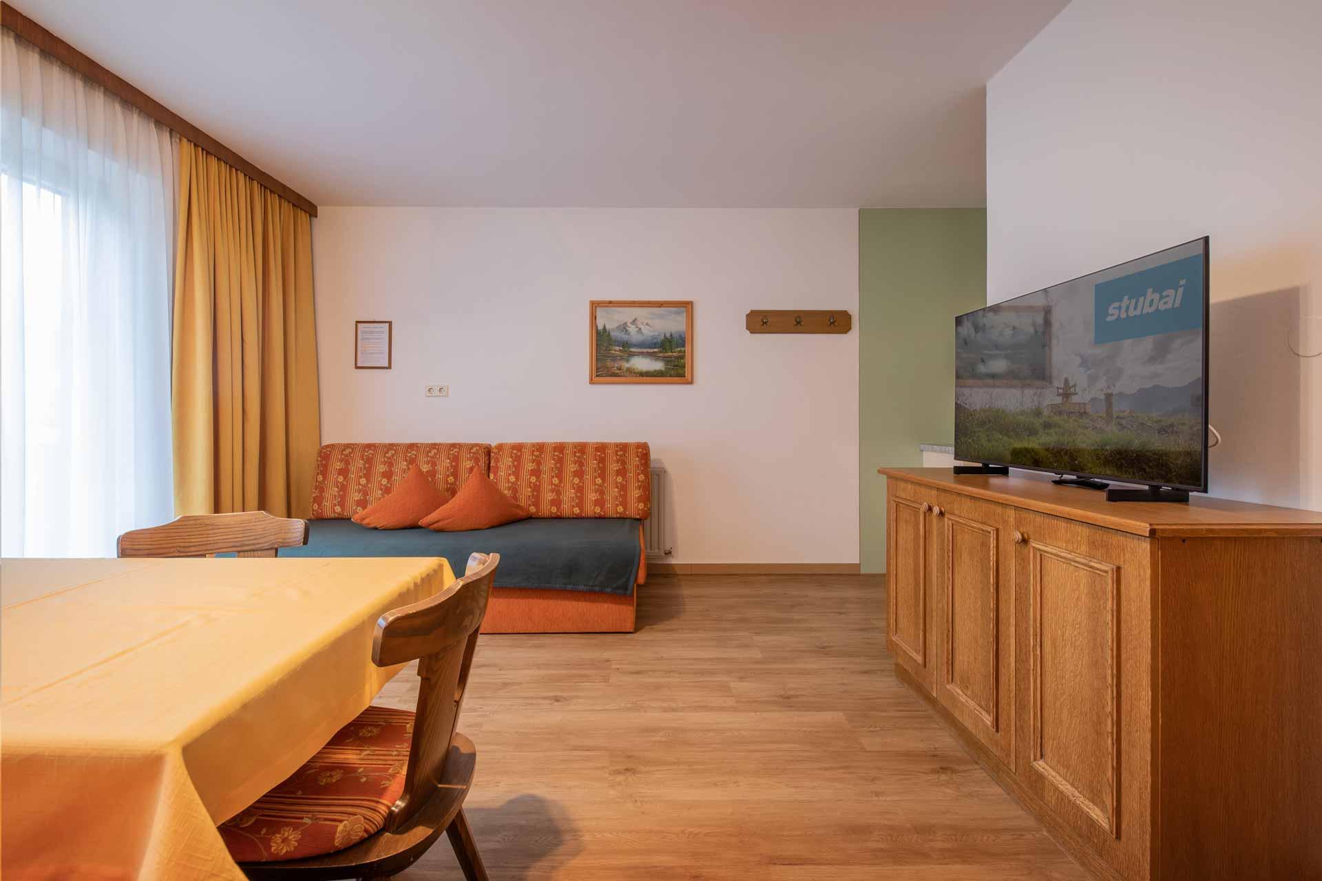 Unsere liebevoll eingerichtete Ferienwohnung 1 im ersten Stock bietet Ihnen einen gemütlichen Rückzugsort für entspannte Urlaubstage im Stubaital. Die Wohnung ist ideal für 2–3 Personen und verfügt über zwei Räume, die ein heimeliges Ambiente schaffen.