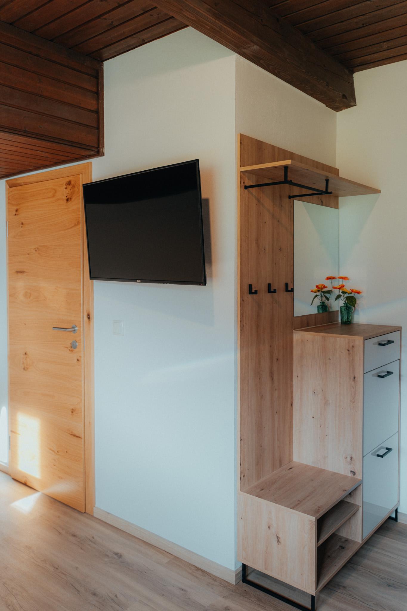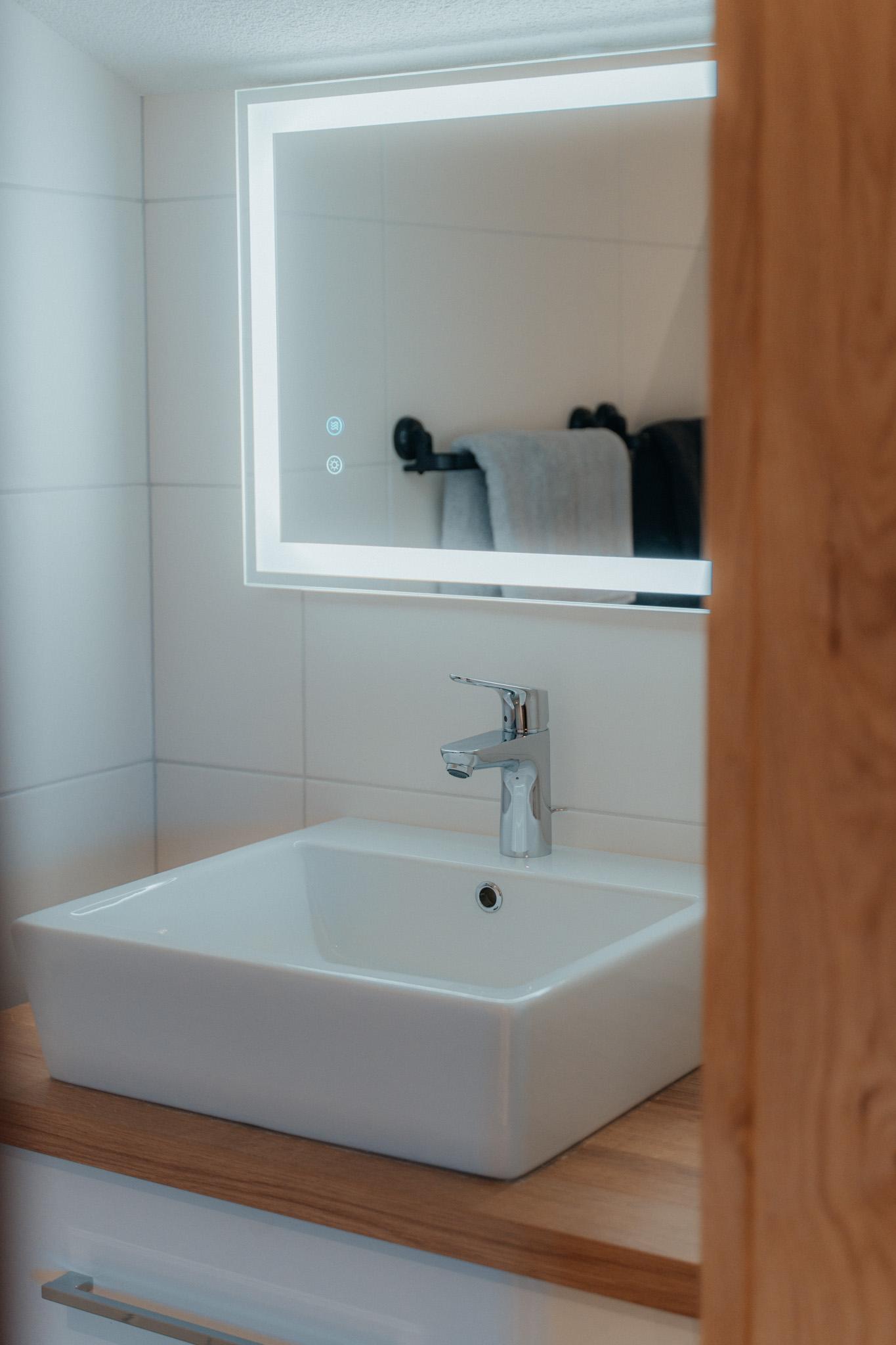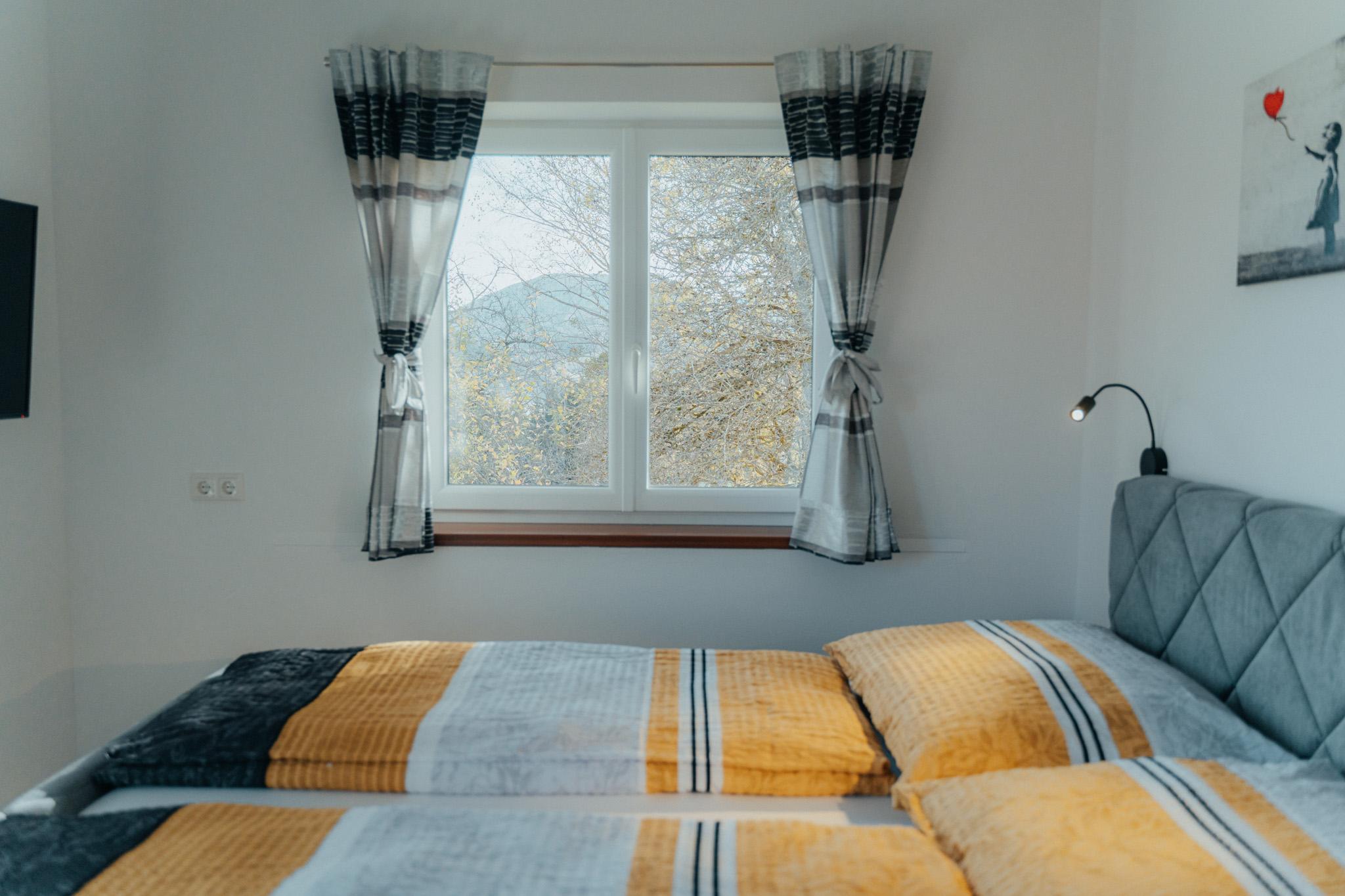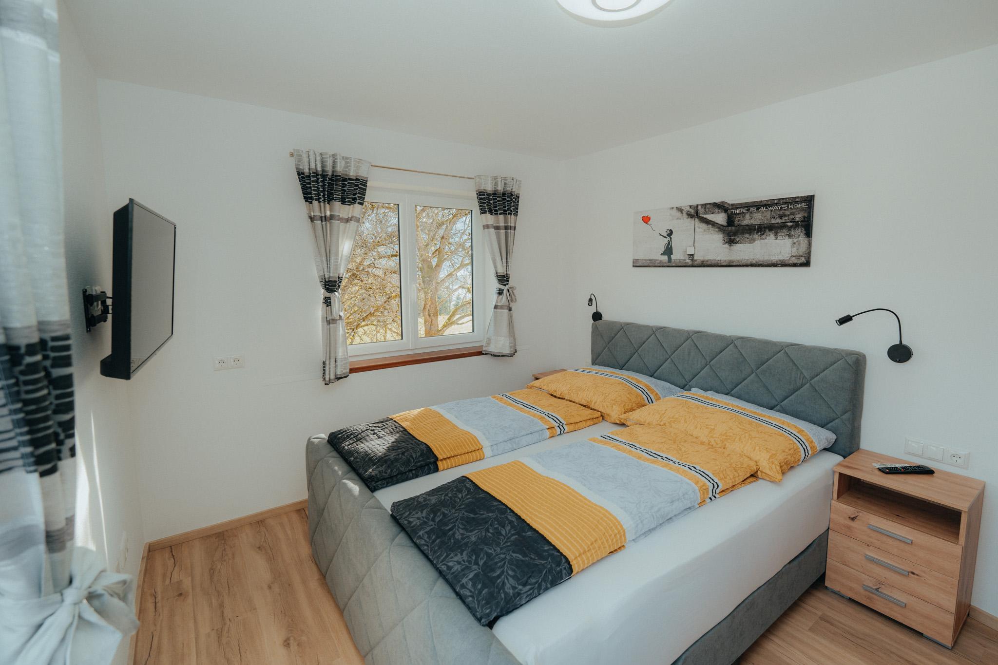 Die Wohnung hat eine Gesamtfläche von 58m² und ist in zwei Schlafzimmer mit Boxspringbetten und Kasten aufgeteilt. Es gibt auch eine Wohnküche mit einer Couch und einem Fernseher sowie einer Sitzgruppe für 4 Personen. Die Küche ist voll ausgestattet mit einem Kühlschrank, Geschirrspüler, E-Herd, Dunstabzug und anderen Geräten. Eine Garderobe ist ebenfalls vorhanden. Die gesamte Wohnung verfügt über eine Fußbodenheizung und einen großen Balkon mit Sitzmöglichkeiten. Das Badezimmer ist mit einer Dusche, einem WC und einem Handtuchtrockner ausgestattet.