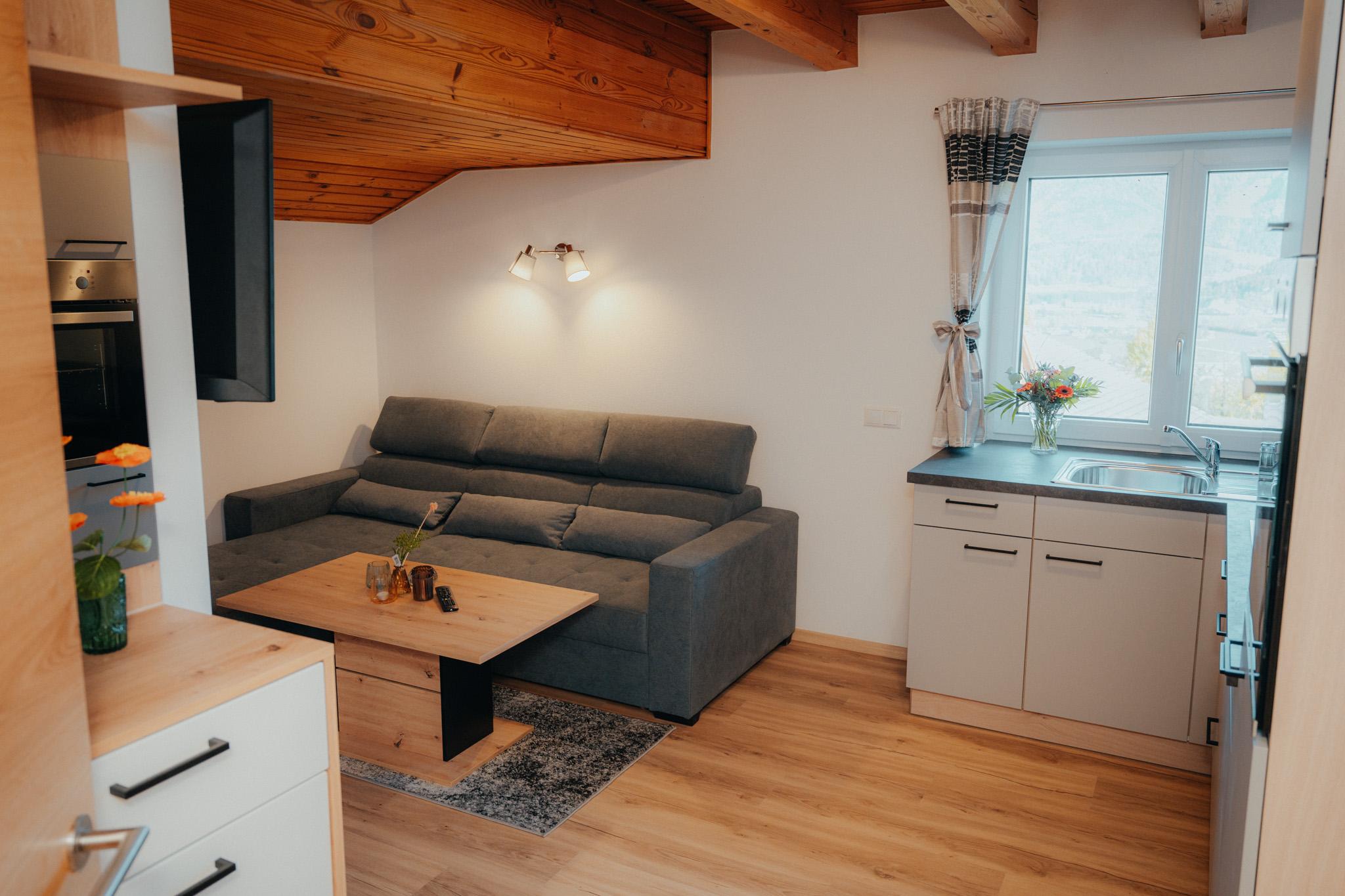 Eine wunderschöne 40m²-Wohnung, die in eine gemütliche Wohnküche und ein Schlafzimmer mit einem komfortablen Boxspringbett und einem geräumigen Kleiderschrank aufgeteilt ist. Das Badezimmer und die Toilette sind separat, was für zusätzliche Bequemlichkeit sorgt. Die Wohnküche ist vollständig ausgestattet und verfügt über einen E-Herd, einen Kühlschrank, einen Dunstabzug und sogar einen Geschirrspüler, um das Kochen und Aufräumen zum Kinderspiel zu machen. Entspannen Sie sich auf der bequemen Couch und genießen Sie Ihre Lieblingssendungen auf dem Satellitenfernseher. Von der Wohnung aus bietet sich ein atemberaubender Ausblick auf das majestätische Sengsengebirge und insbesondere auf den beeindruckenden Hagler.