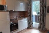 ~ 30 m2 für max. 3 Personen. Eine große Wohnung mit einer Wohnküche mit Küchenzeile mit Ceran Kochfeld, Mikrowelle, Kühlschrank und Kaffeemaschine. Esstisch mit 4 Stühlen und einer Auszieh-Couch, Sat-TV in der Wohnküche, ein Zweibettschlafzimmer, Bad mit Dusche, Waschbecken und WC. Wohnung hat einen eigenen Balkonzugang.