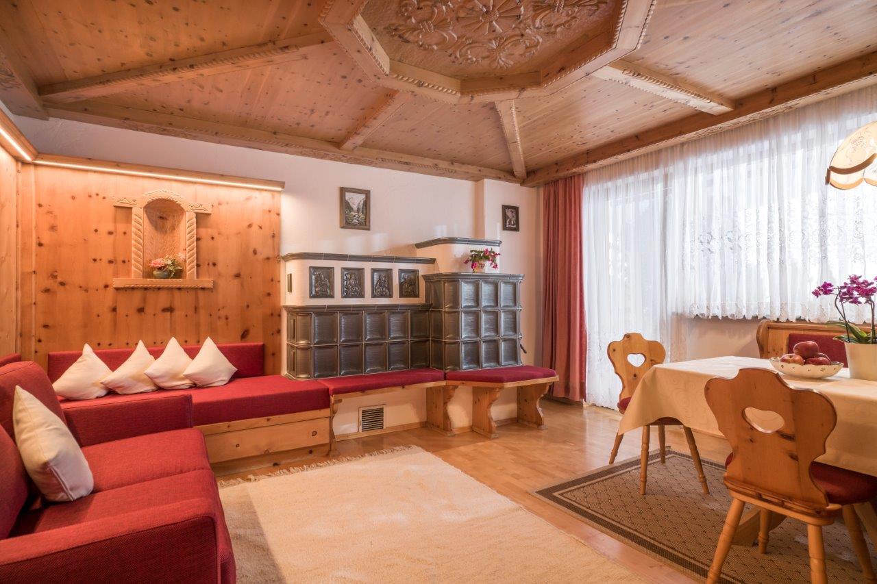 Für romantische Urlaubszeiten stehen Ihnen ab sofort die Türen der Kaiersuite im Appartementhaus Fischbacher offen. Die Kaisersuite befindet sich im Parterre des Hauses und besteht aus zwei getrennten Schlafzimmern, Küche mit Essecke, echte Tiroler Zirbenholzstube mit Kachelofen, Bad mit Wellnessdusche und WC sowie eigener Terrasse. Bettwäsche, Geschirrtücher, Badetücher und Handtücher gehören selbstverständlich zur Wohnungsausstattung. Der Kachelofen in der Zirbenstube wärmt Euch nach einem kalten Schitag. Wasserkocher, Hochstuhl, Kinderbettchen, Babybadewanne und Wickelauflage für unsere Kleinsten stellen wir gerne zur Verfügung.