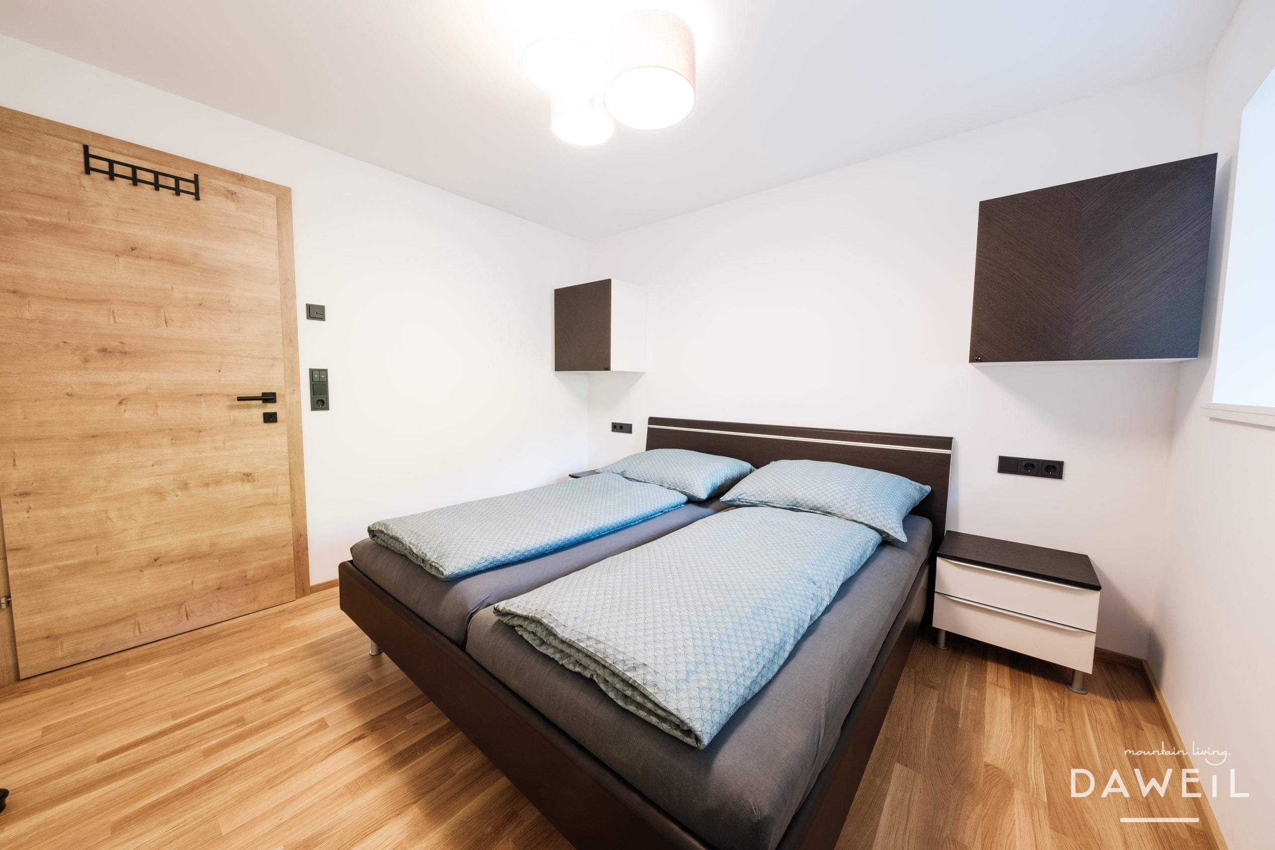 Im Schlafzimmer befindet sich ein Doppelbett mit Bettwäsche. Außerdem gibt es eine ausziehbare Couch im Wohnzimmer. Auf Anfrage werden Babybett und Babyhochstuhl zur Verfügung gestellt.