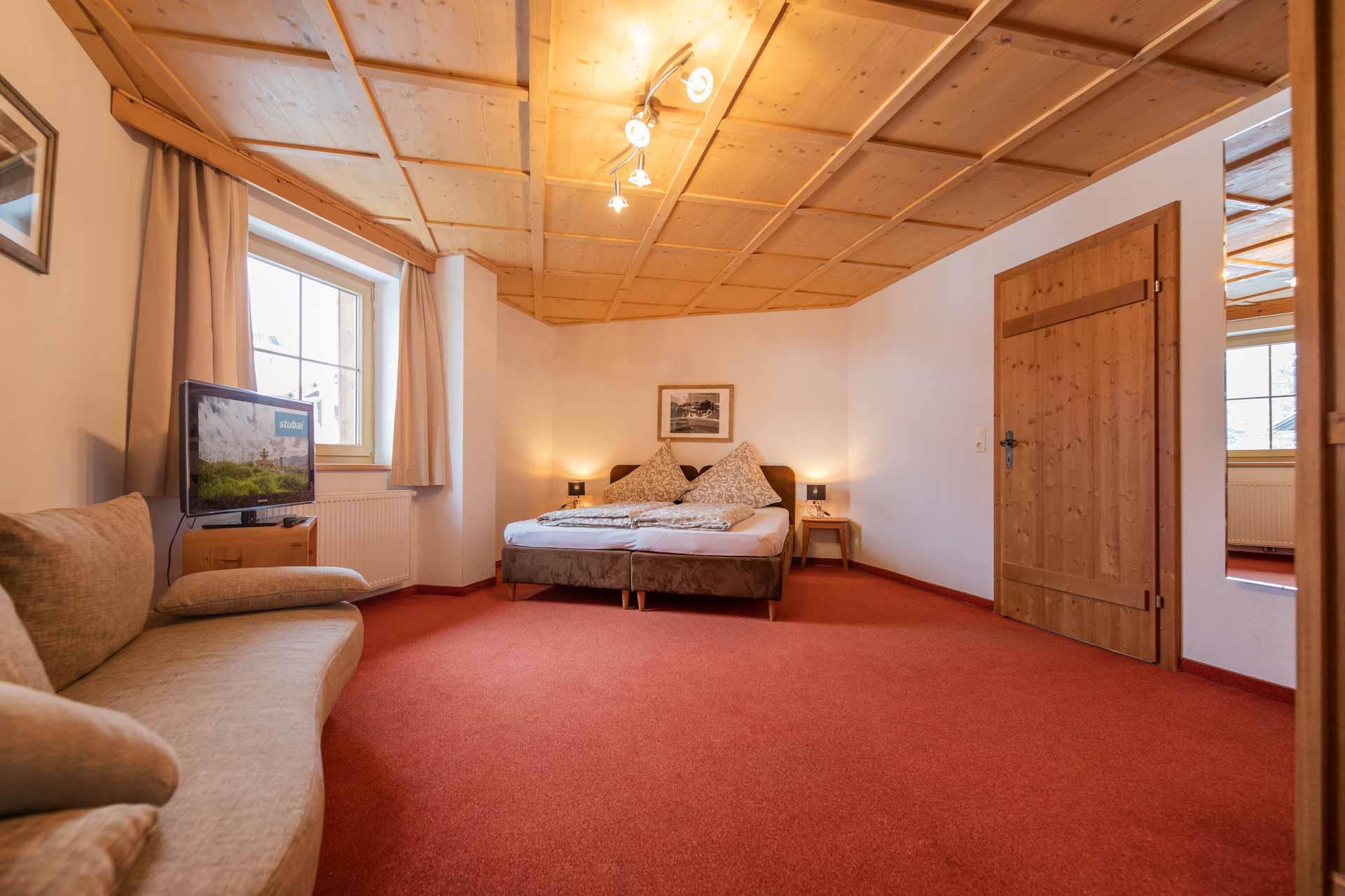 komplett ausgestattete Wohnküche, Fernseher in Wohnküche und Schlafzimmern, Blick zum Gletscher, Kinderbett und Kinderstuhl, freier Eintritt im Freizeitzentrum Neustift, Schiraum mit Schischutrockner, Hunde erlaubt