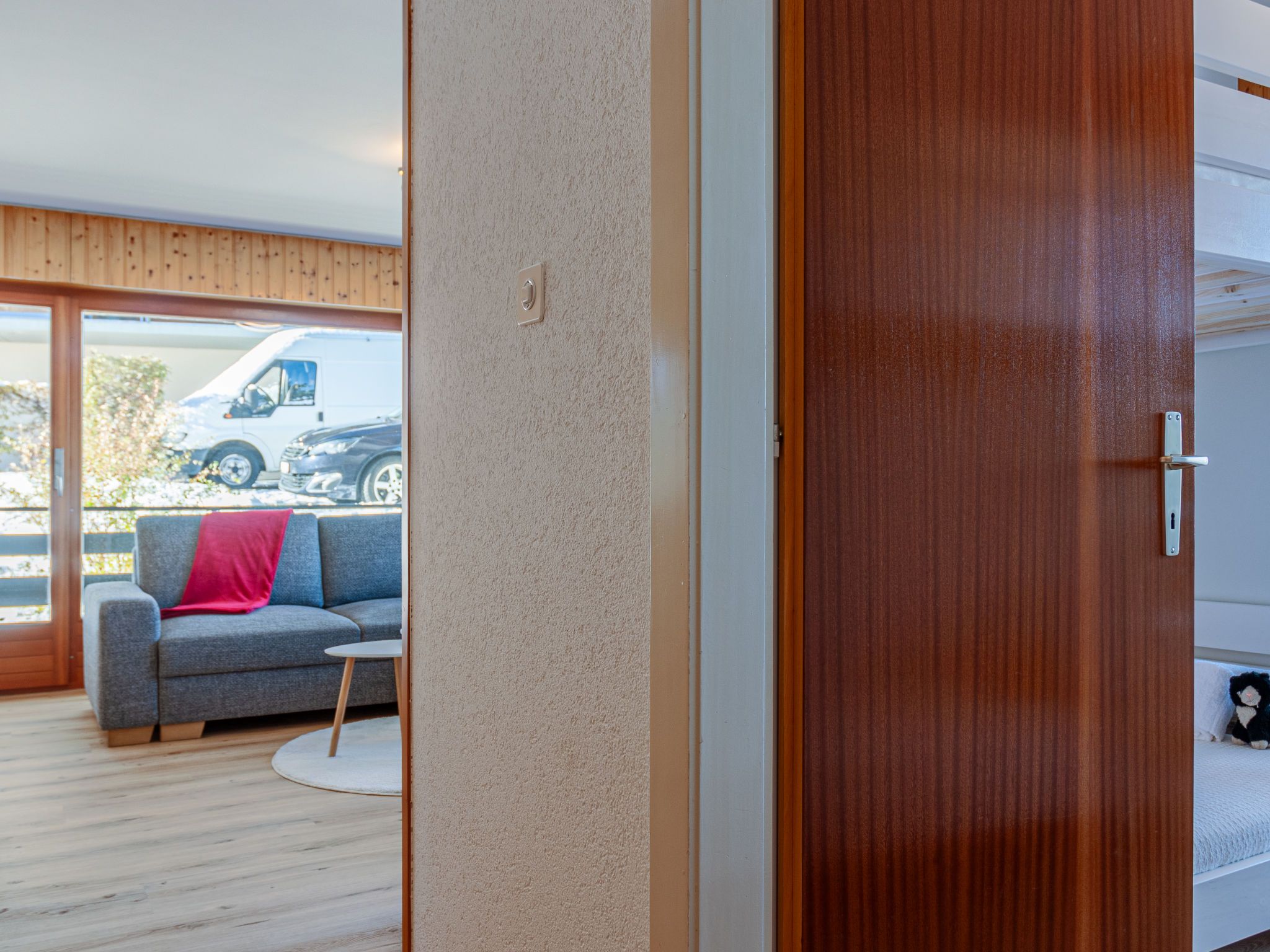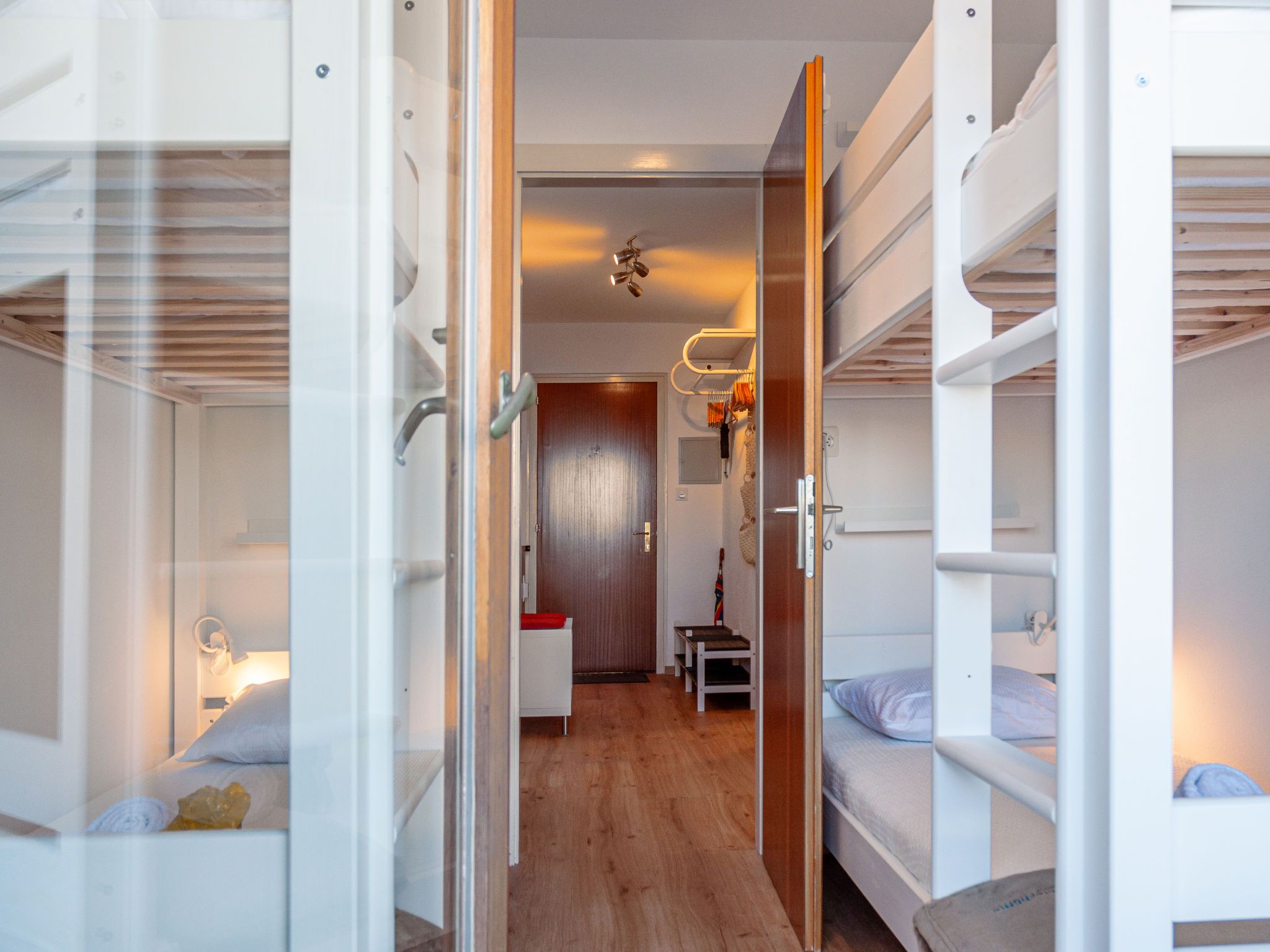 Aiglon J2, 3-Zimmer-Wohnung 75 m2 im 2. Stock. Objekt geeignet für 2 Erwachsene + 4 Kinder. Teilweise renoviert im Jahre 2023, schön und gemütlich eingerichtet: Eingang. Wohn-/Esszimmer mit Kabel-TV. Ausgang zum Balkon. 1 Zimmer mit 1 franz. Bett (160 cm, Länge 190 cm). 1 kleines Kinderzimmer 9 m2 mit 2 x 2 Etagenbetten (80 cm, Länge 190 cm). Küche (Backofen, Geschirrspüler, 4 Glaskeramikplatten, Toaster, Wasserkocher, Mikrowelle, elektrische Kaffeemaschine, Kapseln für die Kaffeemaschine (Delizio) extra, Racletteofen, Fondue Set (Chinoise, Käse)). Bad/WC, sep. WC. Grosser Balkon, Nordostlage und Südlage. Balkonmöbel, Gartengrill. Sicht auf die Berge. Zur Verfügung: Haartrockner. Internet (Wireless LAN, gratis). Bitte beachten: Nichtraucher-Unterkunft.