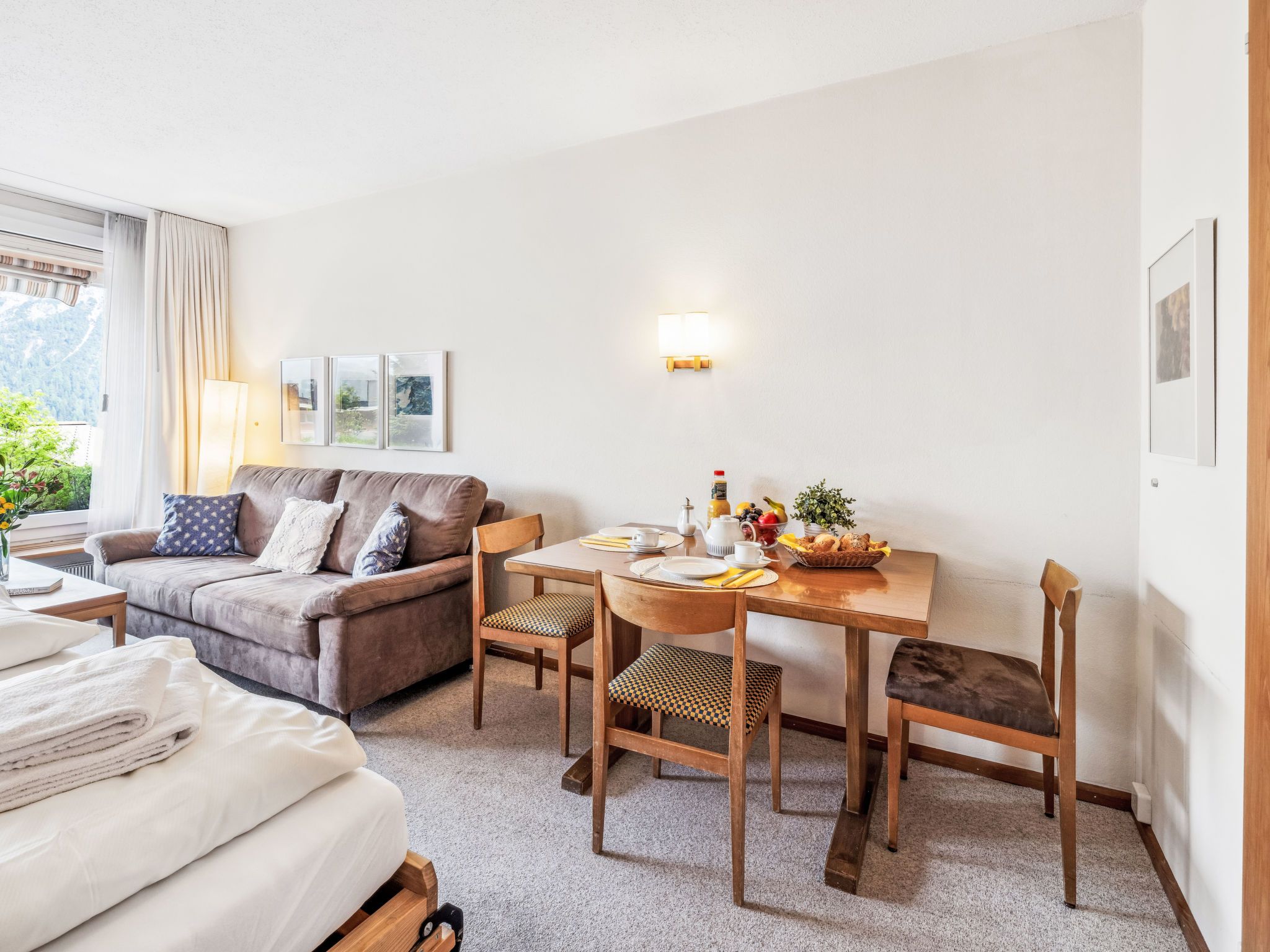 1-Zimmer-Wohnung 28 m2, im Erdgeschoss, Ostlage. Gemütlich eingerichtet: Wohn-/Esszimmer mit 2 Wandschrankbetten und Sat-TV (Flachbildschirm). Ausgang zum Gartensitzplatz. Kochnische (3 Kochplatten, Backofen). Dusche/WC. Gartensitzplatz. Terrassenmöbel. Schöne Sicht auf die Berge, die Landschaft und die Ortschaft. Zur Verfügung: Internet (Wireless LAN, gratis). Bitte beachten: Nichtraucher-Unterkunft.