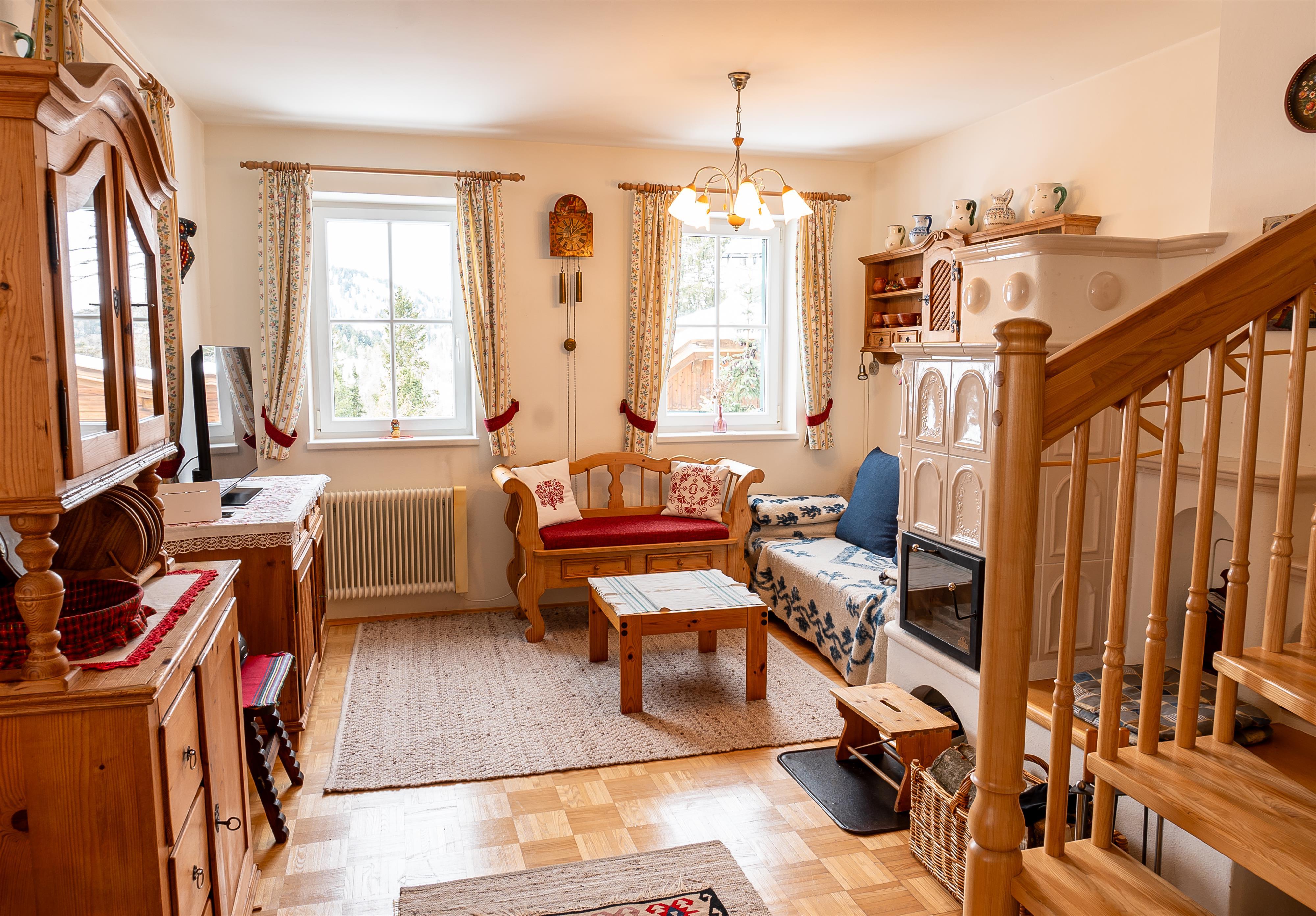 Die Ferienwohnung, eine Haushälfte mit eigenem Eingang und auf 2 Etagen verteilt, bietet Platz für bis zu 6 Personen. Sie liegt auf der Turracherhöhe in 1800 Meter Seehöhe in optimaler, ruhiger Lage. Vom weitläufigen Pistennetz der schneesicheren Turracherhöhe ist die Unterkunft 80m entfernt, sprich die Piste kann fußläufig in 3-4 Minuten erreicht werden. Bei ausreichend Schnee können Sie mit den Schi von der Haustüre zur Piste fahren. Von dort ist dann die Verbindung in das sehr große Schikarussell der Turracherhöhe gegeben. Das weitläufige Wandernetz, z.B. rund um die 3 zauberhaften Bergseen, liegt vor der Haustüre. Eine urige Gastwirtschaft, die Mei Zeit-Hütte, mit guter Küche und herrlichem Ausblick liegt an der vorgenannten Piste, also ebenfalls in unmittelbarer Nähe. Die Ferienwohnung in dieser Toplage eignet sich in gleicher Weise für Winter- und Sommersportler, Wanderer, Erholungsuchende und Familien.