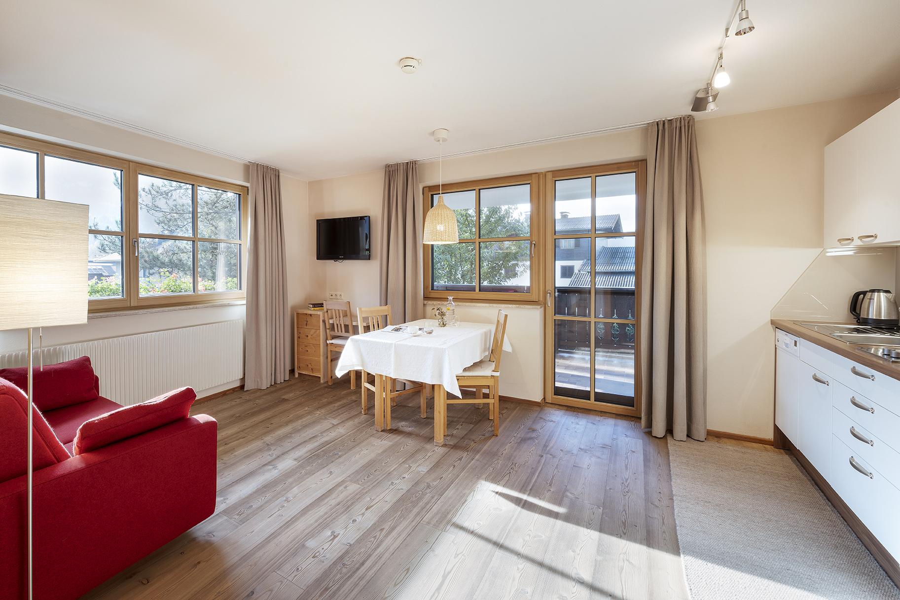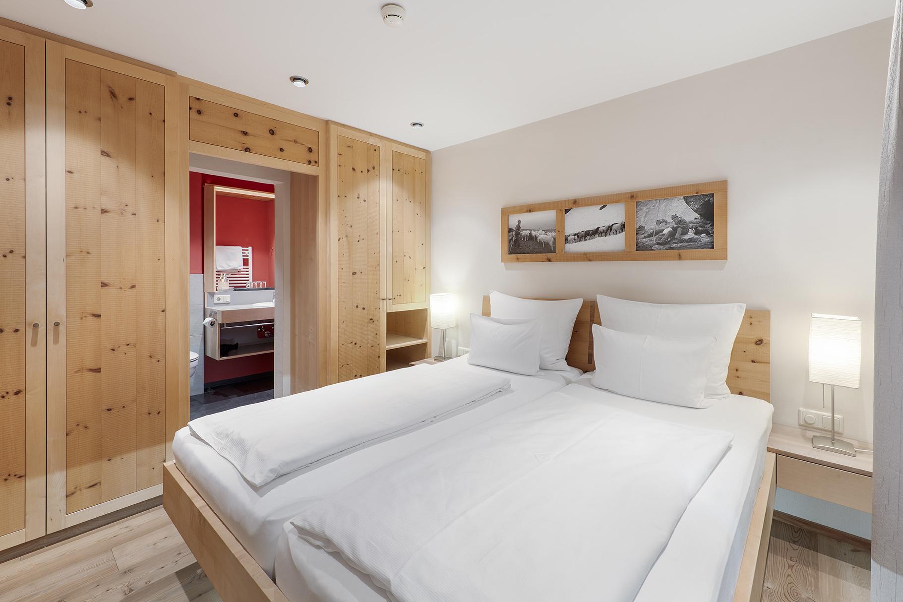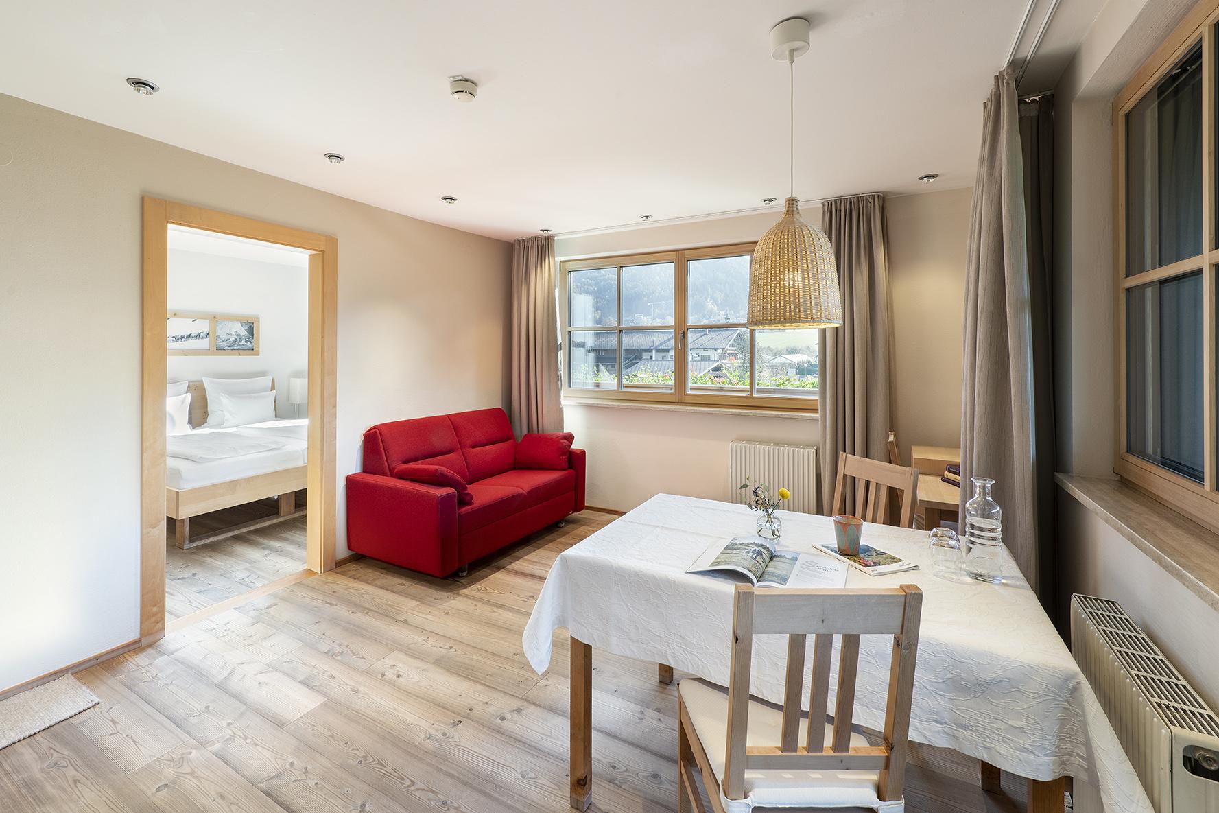 3 hochwertig renovierte Ferienwohnungen für 2-4 Personen von 33-37 m². Die Ferienwohnungen sind mit unbehandelten Vollholzmöbeln und Holzböden ausgestattet und bestehen aus einem Wohnzimmer mit vollausgestatteter Küchenzeile inkl. Geschirrspülmaschine, Essecke aus Naturholz und Doppelcouch zum Ausziehen, einem Schlafzimmer mit Doppelbett und Flatscreen TV, DU/WC und möbliertem Balkon. Flatscreen TV, gratis WLAN, Safe und Telefon.
