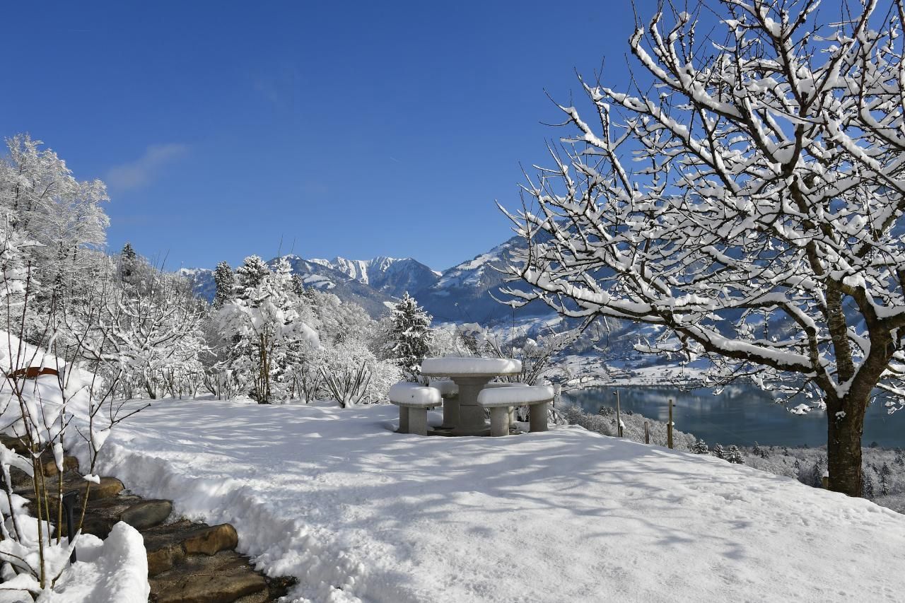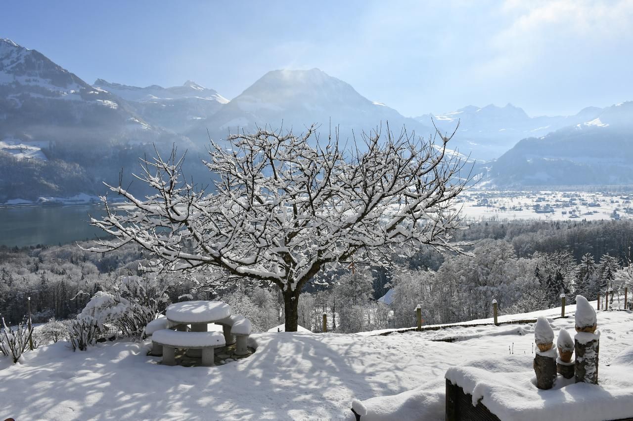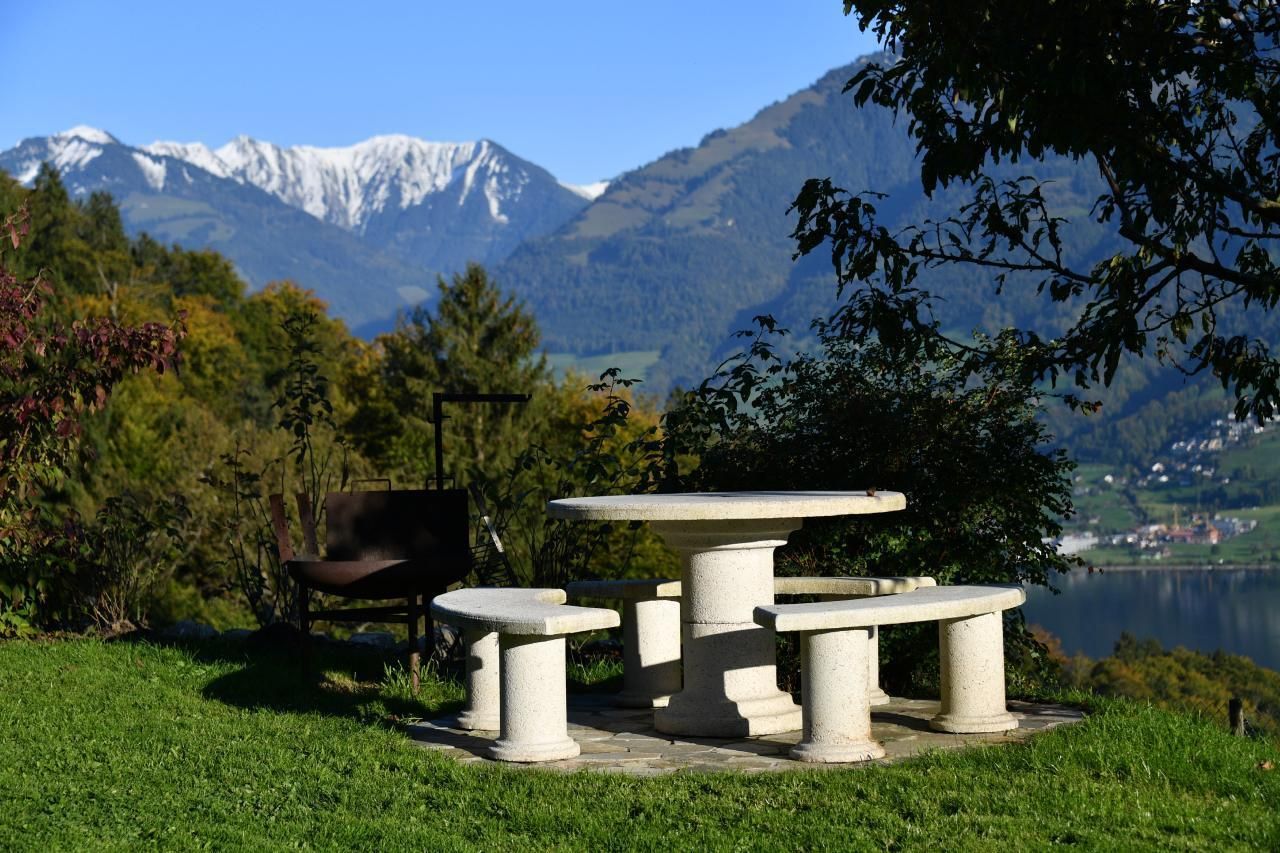 Der Außenbereich unseres Ferienhauses ist ein wahres Paradies für Naturliebhaber. Ob Sie auf dem Balkon die Ruhe genießen oder im Gartensitzplatz die spektakuläre Aussicht auf See und Berge bestaunen – Sie finden hier den perfekten Ort zur Entspannung. Der großzügige Garten lädt zu geselligen Stunden im Freien ein und bietet eine einmalige Kulisse für Erinnerungsfotos mit unserer Lamaherde.