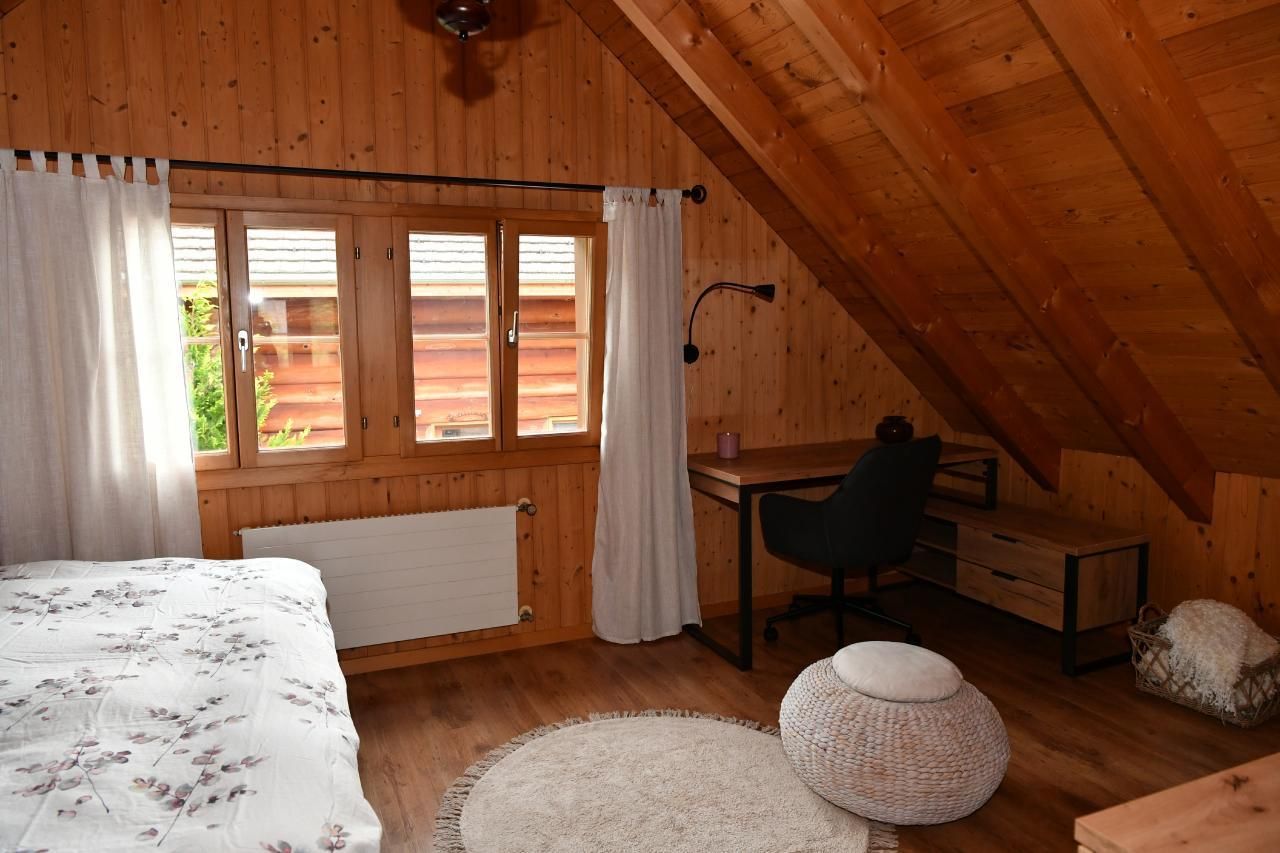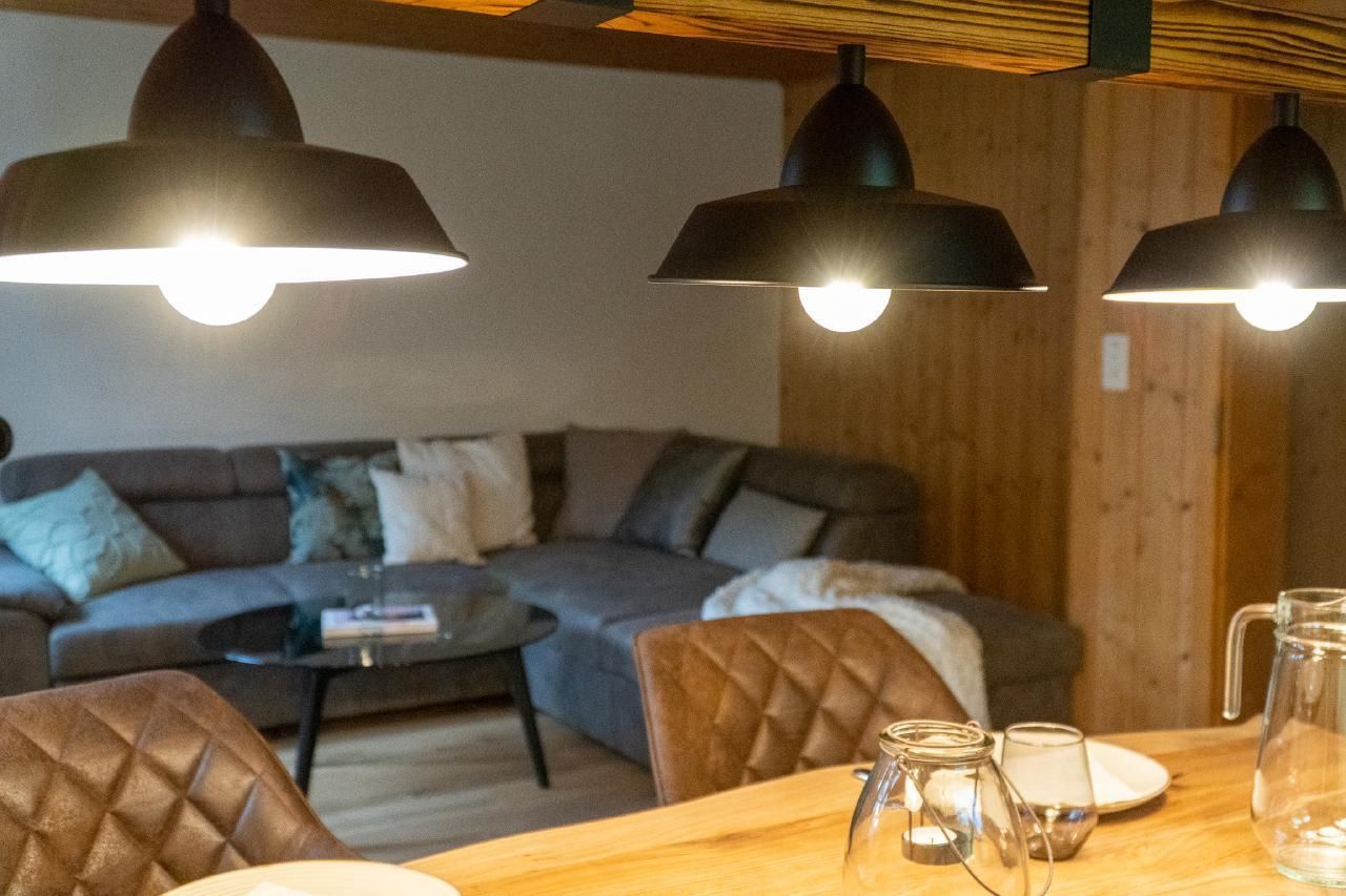 Im Inneren erwartet Sie eine komplett neu eingerichtete Ausstattung, die keine Wünsche offenlässt. Die voll ausgestattete Küche bietet direkten Zugang zum Balkon und ermöglicht es Ihnen, beim Kochen einen Blick auf unsere zutrauliche Lamaherde zu werfen. Komfort bietet der gemütliche Wohnbereich mit direktem Zugang zum großen Gartensitzplatz, ausgestattet mit einer Außenlounge, die zum Entspannen einlädt. Für Ihren Komfort stehen zwei Schlafzimmer mit je einem 180 x 200 cm großen Doppelbett und Schreibtisch bereit, ergänzt durch inklusive Bettwäsche und Handtücher.
