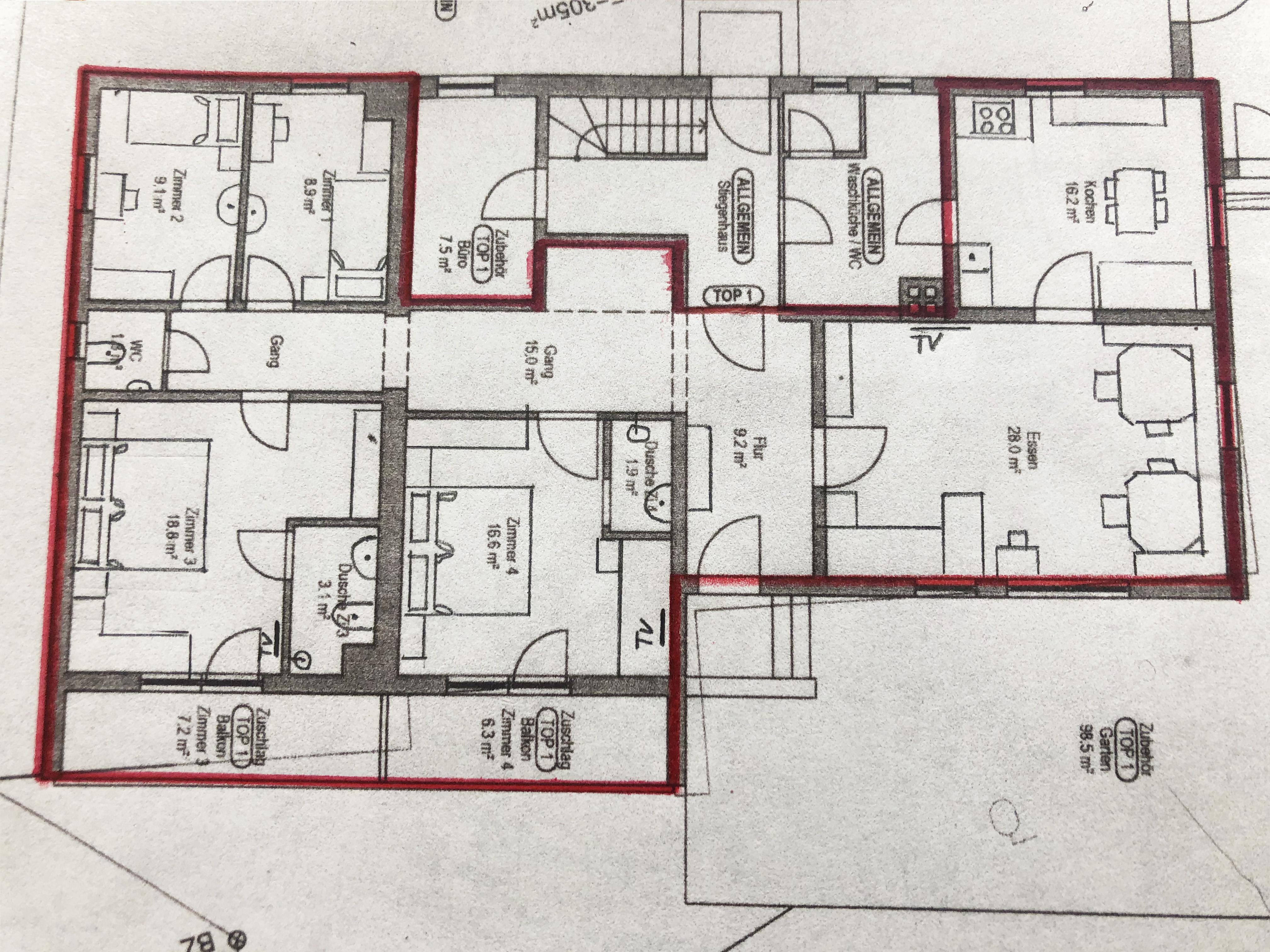 Der Schlafbereich der Wohnung ist mit insgesamt 4 Schlafzimmern (2 Doppelzimmer inkl. Bäder, 2 Einzelzimmer inkl. Waschbecken, 2 WC) ausgestattet.