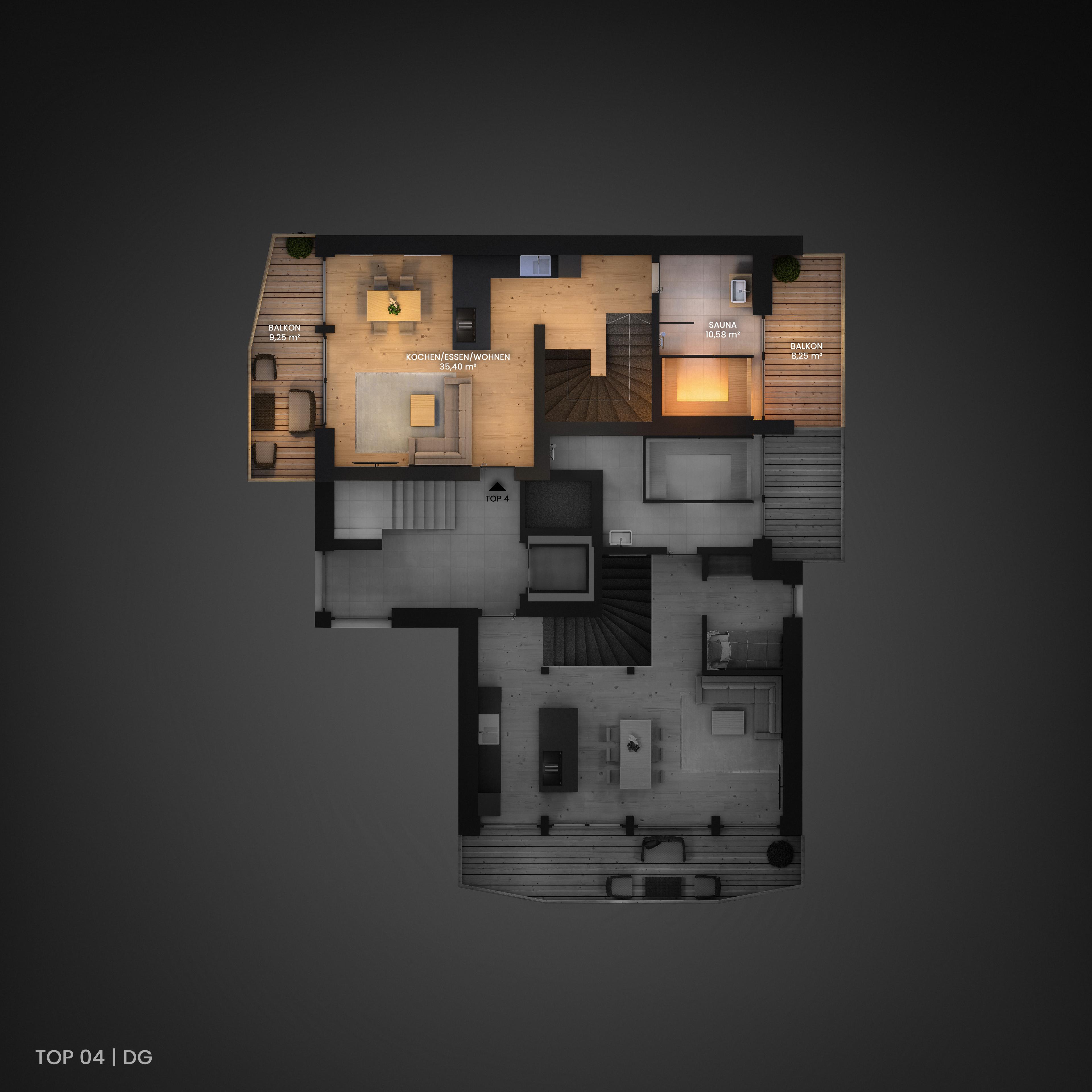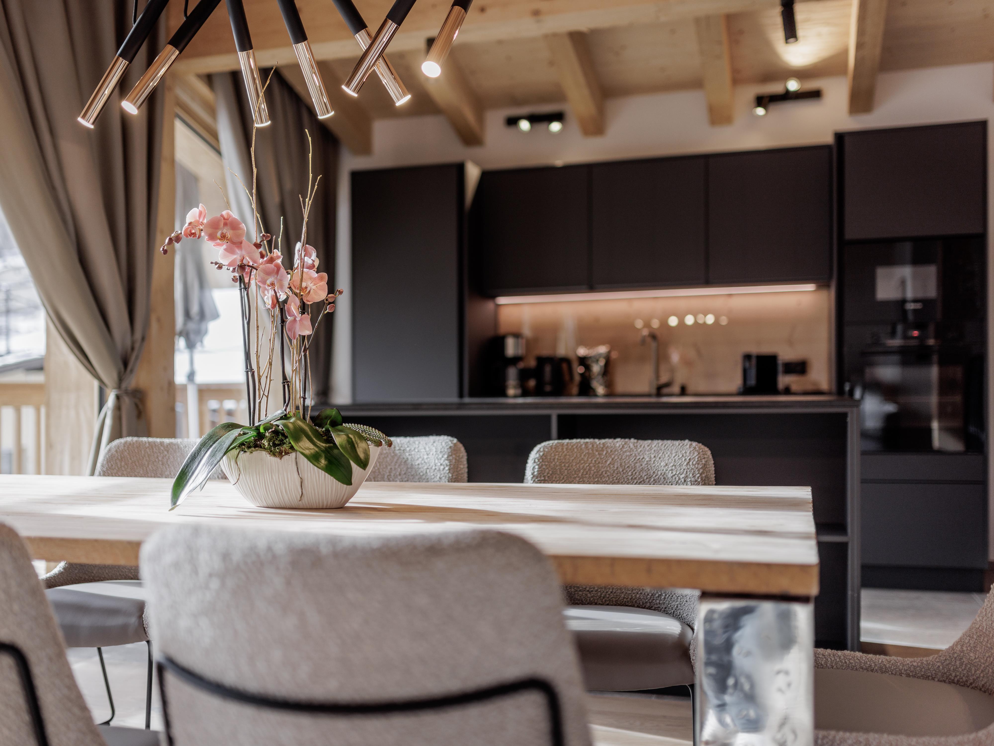 Jedes Lodge-Apartment verfügt über geräumige Wohnbereiche, gemütliche Kamine, private Terrassen mit Panoramablick und stilvolle Schlafzimmer, die für erholsame Nächte sorgen.