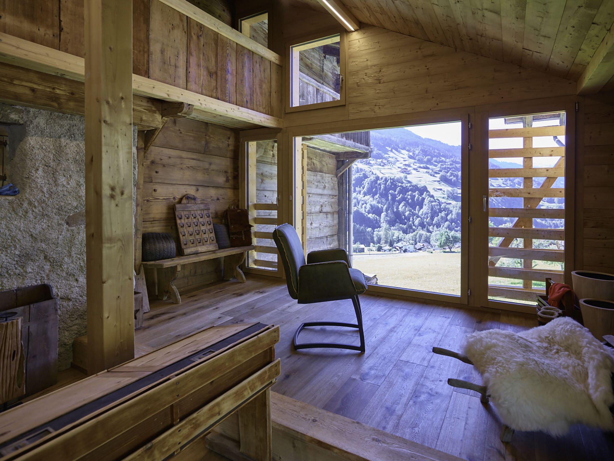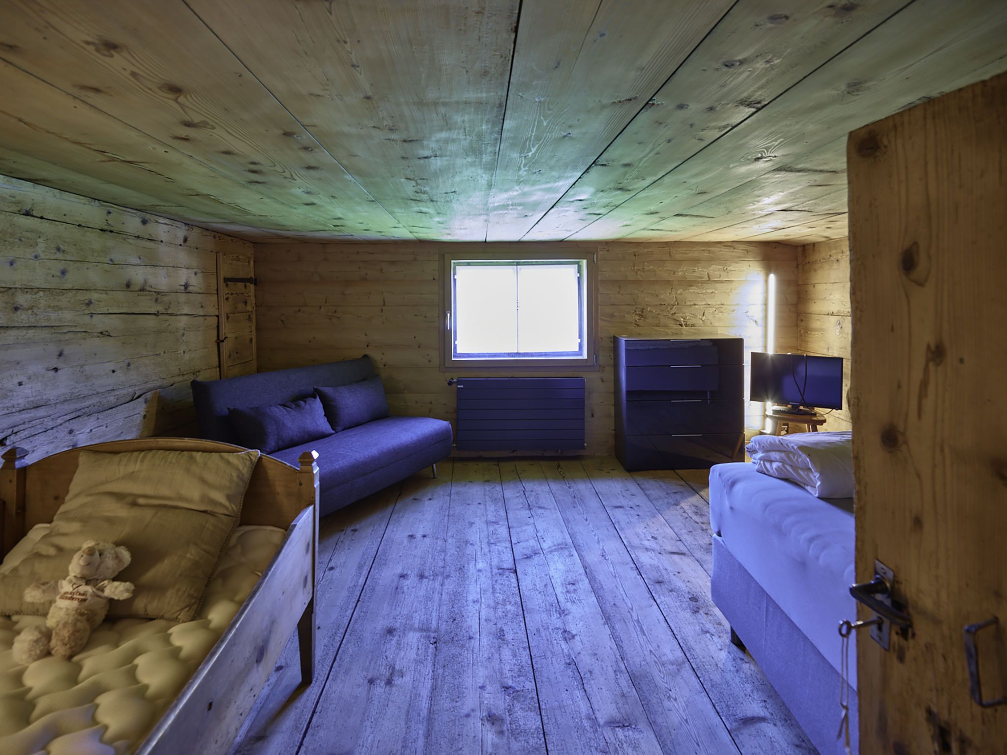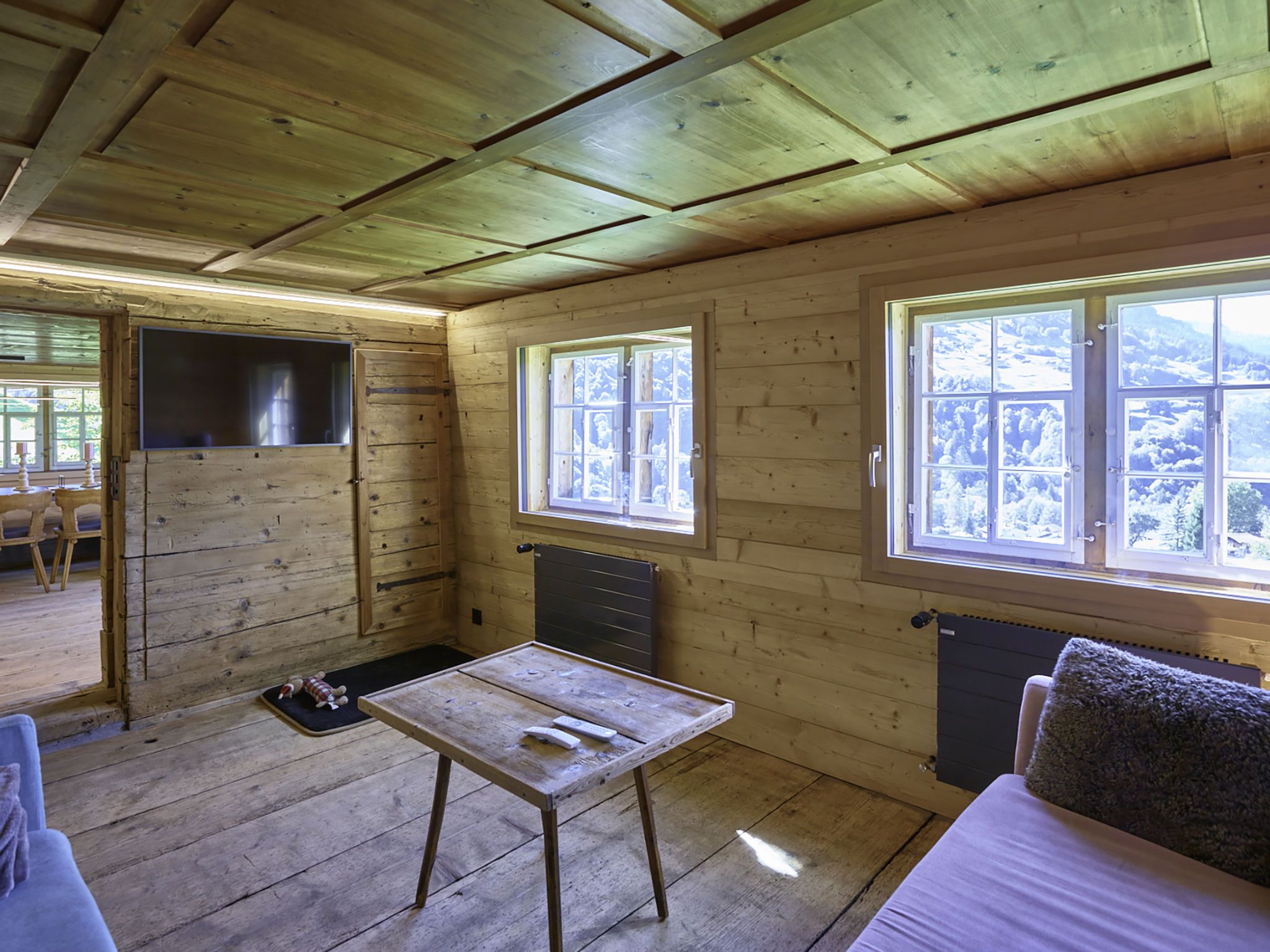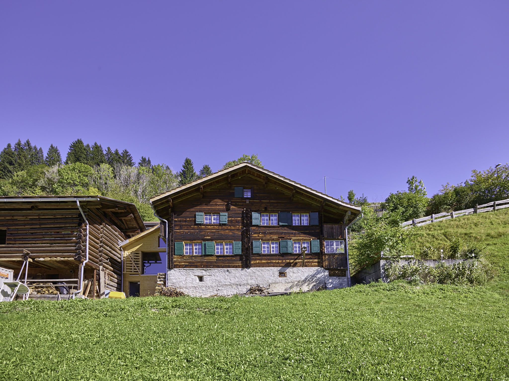 7-Zimmer-Haus 160 m2 auf 3 Stockwerken. Komfortabel und rustikal eingerichtet: Wohnzimmer, Deckenhöhe 180 - 200 cm, niedrige Türrahmen, Höhe 170 cm mit Kabel-TV (Flachbildschirm). Ausgang zum Gartensitzplatz. Esszimmer. Offene Küche (Backofen, Geschirrspüler, 4 Glaskeramikplatten, Toaster, Wasserkocher, Mikrowelle, Tiefkühler, elektrische Kaffeemaschine, Racletteofen, Fondue Set (Käse)). Dusche/WC. Obergeschoss: 2 Doppelzimmer, jedes Zimmer mit Kabel-TV (Flachbildschirm). 1 Zimmer mit 1 Diwanbett, 1 franz. Bett und Kabel-TV (Flachbildschirm). Bad/Dusche/WC. 2. Obergeschoss: (steile Treppe) 1 Zimmer mit 1 Diwanbett. Spielzimmer. Holzdielenboden. Gartensitzplatz 30 m2. Terrassenmöbel, Gartengrill, Liegestühle (3), Loggia, Abstellkammer. Schöne Sicht auf die Berge, die Landschaft und die Ortschaft. Zur Verfügung: Waschmaschine, Wäschetrockner, Babybett. Internet (Wireless LAN, gratis). Parkplatz, Garage beim Haus. Bitte beachten: Nichtraucher-Unterkunft.